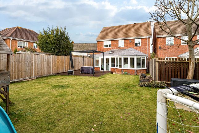This modern detached family home features a double garage, ample driveway parking and an electric vehicle charging point. With four good-sized bedrooms and four receptions, the well-proportioned accommodation includes a bay fronted living room with feature fireplace and double doors to dining room, useful study (ideal for those working from home or would make a cosy snug) and conservatory style sun room with solid roof, making it ideal for year-round use and a great additional entertaining space. The fitted kitchen incorporates a breakfast bar for informal dining, there is a ground floor cloakroom/WC and first floor family bathroom, in addition to an en-suite shower room to the principal bedroom. Mainly laid to lawn, the enclosed rear garden enjoys a south-westerly aspect and includes a decked seating area with pergola over. Proximity to the town centre amenities makes the property a great choice for families and commuters, with the mainline rail station, large supermarket and both the lower and middle school all within just 0.3 miles. EPC Rating: C.Entrance HallAccessed via front entrance door with opaque double glazed inserts, sidelights and toplight. Radiator. Wood effect flooring. Stairs to first floor landing. Doors to kitchen, study, cloakroom/WC and to:Living RoomWalk-in bay with double glazed windows to front aspect. Feature fireplace surround housing electric fire. Radiator. Double doors to:Dining RoomRadiator. Door to kitchen. Double doors to:Sun RoomOf part brick construction with double glazed windows and French doors to rear garden. Two skylights. Two wall mounted electric heaters. Recessed spotlighting to ceiling. Door to:KitchenOpaque double glazed door and window to rear aspect/sun room. A range of base and wall mounted units with work surface areas incorporating sink and drainer with mixer tap, and five ring gas hob with extractor over. Tiled splashbacks. Built-in double oven. Space for fridge/freezer and washing machine. Breakfast bar. Wood effect flooring. Recessed spotlighting to ceiling. Built-in under stairs storage cupboard.StudyDouble glazed window to front aspect. Radiator. Wood effect flooring.Cloakroom/WCOpaque double glazed window to side aspect. Two piece suite comprising: Close coupled WC and wash hand basin with mixer tap and storage beneath. Tiled splashbacks. Heated towel rail. Floor tiling.LandingDoors to all bedrooms and family bathroom.Bedroom 1Double glazed window to front aspect. Built-in triple wardrobe. Radiator. Door to:En-Suite Shower RoomOpaque double glazed window to side aspect. Three piece suite comprising: Shower cubicle with wall mounted shower unit and rainfall style showerhead, WC with concealed cistern and wash hand basin with mixer tap and storage beneath. Wall tiling. Extractor. Heated towel rail. Wood effect flooring.Bedroom 2Double glazed window to front aspect. Radiator. Built-in triple wardrobe.Bedroom 3Double glazed window to rear aspect. Radiator.Bedroom 4Double glazed window to rear aspect. Radiator.Family BathroomOpaque double glazed window to rear aspect. Three piece suite comprising: Bath with mixer tap/shower attachment, close coupled WC and pedestal wash hand basin with mixer tap. Wall tiling. Heated towel rail. Extractor. Recessed spotlighting to ceiling. Wood effect flooring.Front GardenLawn area with central pathway leading to front entrance door. Gated side access.Rear Garden48' x 37' (14.63m x 11.28m) approx. Mainly laid to lawn. Raised decked seating area with pergola over. Paved area. Shrub borders. Enclosed by timber fencing and brick walling with gated side access.Double GarageDetached brick-built garage with pitched, tiled roof. Twin metal up and over doors. Power and light.Off Road ParkingDriveway providing off road parking and access to double garage. Electric vehicle charging point.Council Tax Band: F.