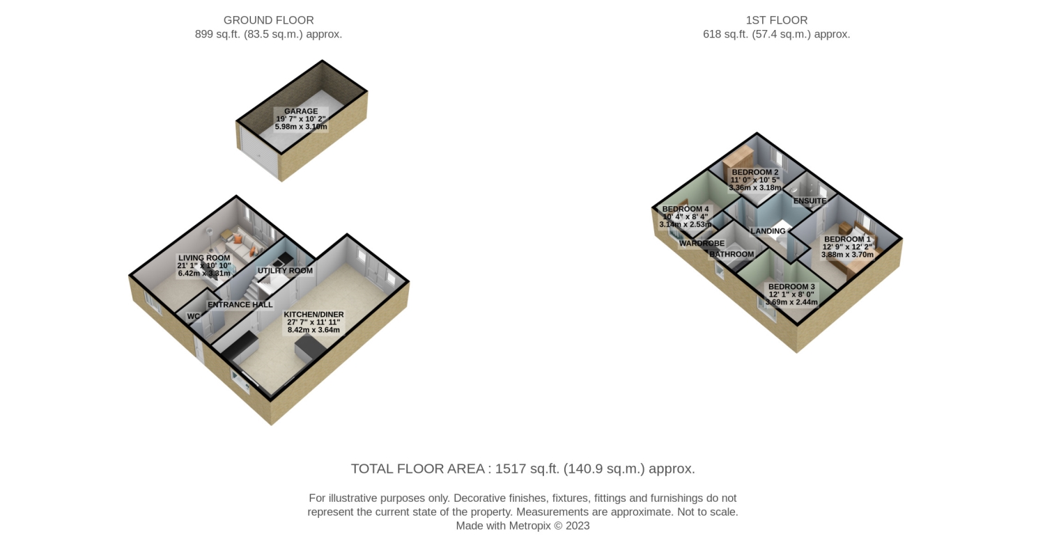 Imagine you could wind the clock back and bag one of the best plots in this new development... Well now you can... Situated on a private, block paved road set back from the main road and with a lovely private rear garden is this 4 bedroom detached family house in nearly new condition.This is a premium house, from a premium builder in a premium location on a premium plot! Yes, that's a lot of premium! Set back from the road the private block paved road leads to the driveway which sits in front of the detached garage.Downstairs, a central entrance hallway has a downstairs WC and a large kitchen diner/family room to the right and a living room to the left. Both rooms have french doors that lead onto the garden and there's also a utility room off the dining room, also with garden access.So let's talk about the garden. It's a really great size and you'll wake up to the sun peaking over the fence at the back. It's mainly lawned but there's also a patio area so plenty of room to kick a ball or two.Upstairs the home has 4 spacious double bedrooms. The master bedroom has an ensuite shower room and there's also a family bathroom off the landing.The location provides excellent access to the main commuter links, especially the M1 link road as well as the mainline train station to London Euston. Access to local schools is excellent.Please take time to study our 2D and 3D landscape floor plans and browse our photographs. This virtually new family home is sure to gain a lot of interest so to secure your viewing please contact EweMove Leighton Buzzard 24/7 by telephone or online.This property includes:01 - Entrance Hall02 - Living Room6.42m x 3.31m (21.2 sqm) - 21' x 10' 10” (228 sqft)03 - Kitchen / Dining Room8.42m x 3.64m (30.6 sqm) - 27' 7” x 11' 11” (329 sqft)04 - Utility Room05 - Downstairs Cloakroom06 - Bedroom 13.88m x 3.7m (14.3 sqm) - 12' 8” x 12' 1” (154 sqft)07 - Ensuite08 - Bedroom 23.36m x 3.18m (10.6 sqm) - 11' x 10' 5” (115 sqft)09 - Bedroom 33.69m x 2.44m (9 sqm) - 12' 1” x 8' (96 sqft)10 - Bedroom 43.14m x 2.52m (7.9 sqm) - 10' 3” x 8' 3” (85 sqft)11 - Family Bathroom2.2m x 2.04m (4.5 sqm) - 7' 2” x 6' 8” (48 sqft)12 - Rear Garden13 - Driveway14 - GaragePlease note, all dimensions are approximate / maximums and should not be relied upon for the purposes of floor coverings.