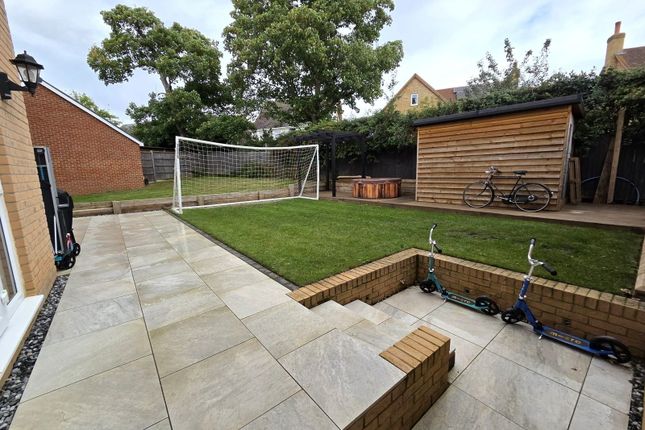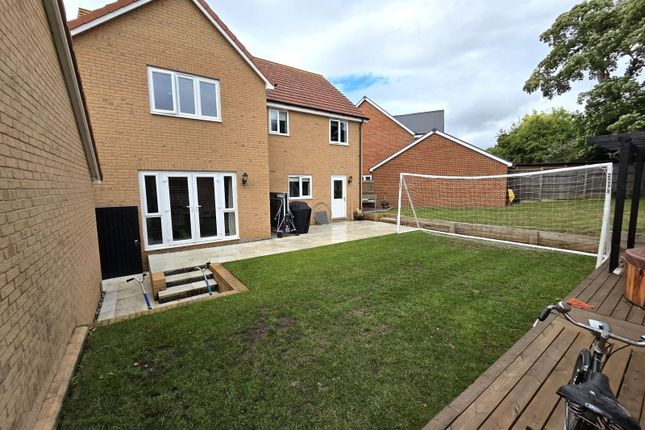 Detached family home, located on the popular 'Tall Trees development', within walking distance of all local shops & school. Offered for sale in excellent decorative order & benefitting for a large 65ft x 40ft approx, double width enclosed rear garden, which is predominantly laid to lawn with various patio & seating areas. There are three reception rooms & a beautifully fitted kitchen with separate utility room. To the first floor are four double bedrooms, with master en-suite & family bathroom. Externally there is a side driveway providing off road parking for two vehicles, which gives access to the part converted oversized single garage, with workshop / storage area & gym set to the rear.Built by Messrs 'Kier Homes' in 2019, the children's play area, community orchard & 'Peagnut Woods' being just a short distance away.Situated in the bustling market town of Potton, this family home provides the perfect blend of rural charm and contemporary amenities. Scenic countryside walks and an array of unique shops, pubs and eateries are all just a leisurely walk away.There are good road links into Cambridge and London with the nearby towns of Biggleswade and Sandy also offering a wider range of national stores, easy access to the A1 and railway links into London Kings Cross St Pancras.Composite entrance door with glazed panel opening into:Spacious Reception HallwayDog leg staircase rising to the first floor, large understairs storage cupboard, laminate flooring, radiator, cloaks cupboard, white panel doors off to all rooms.Sitting Room - 4.75m x 4.19m (15'7" x 13'9")Upvc double glazed windows to both the front & side aspects, with fitted shutters, engineered 'Oak' flooring, twin radiators, feature media wall with built in display shelving & storage cupboards.Kitchen - 3.86m x 3.35m (12'8" x 11'0" max)Upvc double glazed window to the rear aspect, fitted with a range of gloss base & matching eye level units, wood effect worksurfaces & upstands, inset 11/2 bowl sink unit, integral dishwasher & fridge / freezer, built in double oven, inset 5 ring gas hob with stainless steel extractor hood over, radiator, hi gloss floor tiling, recessed ceiling lighting, walk through to dining room, white panel door through to:Utility Room - 2.77m x 1.65m (9'1" x 5'5")Upvc double glazed window to the side aspect, 1/2 double glazed composite door opening to the rear garden, range of base units, wood effect worksurfaces & upstands, inset single bowl sink unit, wall mounted cupboard housing gas fired combi boiler, airing cupboard, hi gloss floor tiling, radiator, recessed ceiling lighting.Dining Room - 3.96m x 3.45m (13'0" x 11'4")Upvc double glazed French doors with full height windows to sides to the rear aspect, radiator, hi gloss floor tiling.CloakroomUpvc double glazed window to the side aspect, fitted two piece suite comprising low level Wc & pedestal wash hand basin, radiator, laminate flooring.Study / Boot Room - 2.18m x 2.06m (7'2" x 6'9")Upvc double glazed window to the front aspect, with fitted shutters, built in storage cupboards & hanging rails for coats & shoes etc.Galleried First Floor LandingUpvc double glazed window at 1/2 landing to the front aspect, radiator, double storage cupboard, white panel doors off to all rooms.Master Bedroom - 5.21m x 3.78m (17'1" max x 12'5" exc wardrobes )Upvc double glazed window to the rear aspect, twin built in double wardrobes, radiator, laminate flooring, white panel door through to:En-Suite Shower Room Upvc double glazed window to the rear aspect, fitted three piece suite comprising low level Wc, pedestal wash hand basin & enclosed fully tiled shower cubicle, tiling to all splash area & floor, heated towel rail.Bedroom Two - 3.84m x 3.12m (12'7" x 10'3")Upvc double glazed window to the front aspect, loft access, radiator, laminate flooring.Family BathroomUpvc double glazed window to the front aspect, fitted four piece suite comprising low level Wc, pedestal wash hand basin, bath with shower attachment & enclosed fully tiled shower cubicle, tiling to all splash area & floor, recessed ceiling lighting, heated towel rail.Bedroom Three - 3.4m x 3.25m (11'2" x 10'8")Upvc double glazed window to the rear aspect, laminate flooring, radiator.Bedroom Four - 3.3m x 2.26m (10'10" x 7'5")Upvc double glazed window to the front aspect, radiator.Rear Garden - 19.81m x 12.19m (65'0" x 40'0" approx)Enclosed rear garden being of an excellent size 65ft x 40ft approximately, predominantly laid to lawn with separate patio areas ideal for outside entertaining, wooden pergola with storage shed to side, further garden shed, tap, gated side access to driveway.DrivewaySet to the side of the property, providing off road parking for 2 vehicles, leading to:Oversized Single GaragePart converted into 2 rooms, the front part is currently used as a workshop & storage area, a door through to the rear room which is currently set up as a gym.