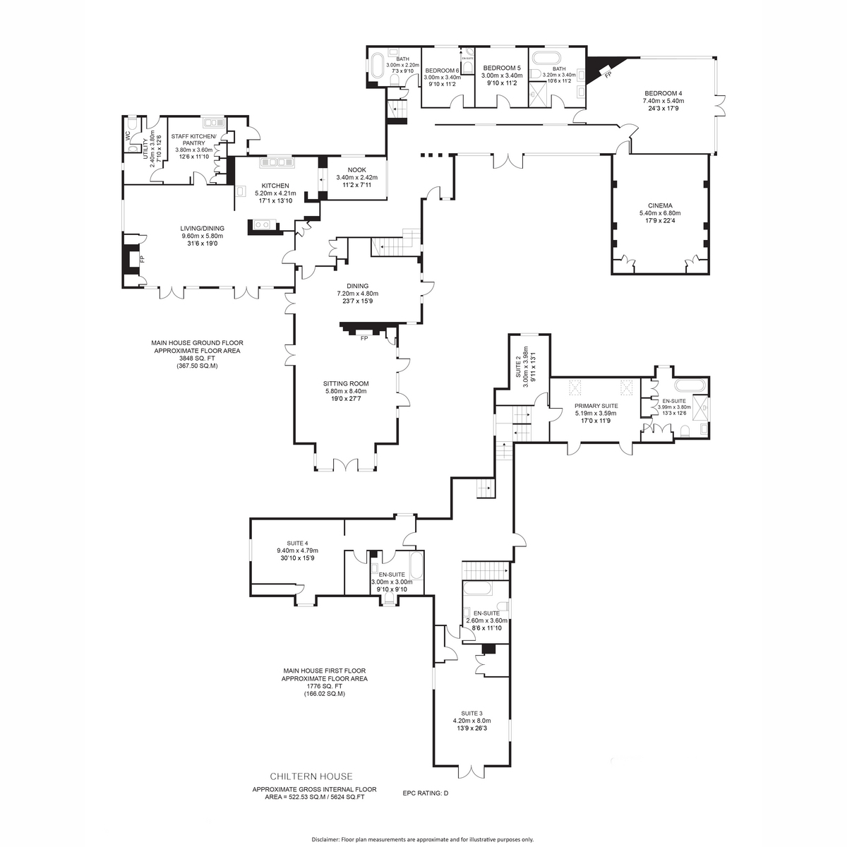 The Chiltern Hills Estate spans 22.8 acres with unrivalled privacy and far-reaching views, featuring two architect-designed cedar-clad homes. Chiltern House offers seven bedrooms, cinema, arctic cabin, pond and entertainment barn; Holly Farm has vaulted interiors and equestrian facilities.The Chiltern Hills Estate – A Private Sanctuary of DistinctionSet at the head of its only valley and amidst 22.8 acres of sweeping countryside, Chiltern Hills Estate offers unparalleled privacy and uninterrupted far-reaching views, combining sophisticated contemporary living with the timeless charm of the Chilterns. A rare opportunity to acquire a truly exceptional private country retreat.Chiltern House, the principal residence, with oak beams and cedar cladding was redesigned by the renowned architect Roderick James of Carpenter Oak, is an expansive seven-bedroom home featuring a bespoke cinema, an arctic cabin, and a striking feature pond and has featured in magazines, newspapers and on televison. Holly Farm, a large three-bedroom detached property with a stunning loft style principal bedroom and vaulted interiors and a basement studio.The detached Chiltern Barn has been designed as an entertainment space with bar area, mirrored walls, sound ceiling, and has a one-bedroom apartment above. The estate is exceptionally well appointed for equestrian enthusiasts, Holly Stables has three stables and a large hay barn / feed store, three gated paddocks, a Martin Collins manège and a shelter.Chiltern House has a proven track record as an exclusive furnished holiday let, attracting celebrity a-listers, musicians and international sports personalities. In the future it will benefit from its proximity to Shinfield Studios in Reading and its ability to host cast and crew.Offering a lifestyle of absolute seclusion, unrivalled versatility, and exquisite design, the Chiltern Hills Estate is a sanctuary where entertainment, relaxation, and countryside grandeur converge. Yet the estate sits alongside top tier schools, world class restaurants and shopping and offers fast access to London and Oxford.Chiltern HouseSet behind high electric gates and approached via a granite driveway the main house is hidden from public view, with a western red cedar cladding that has gracefully silvered over time sits proudly above its valley setting. The parking area leads to a pair of large heavy wooden gates lead to an entrance courtyard.Inside, light-filled spaces combine elegance with comfort: A triple-aspect sitting room with open fire and balcony connects to a dining hall seating any number of guests, creating a superb setting for entertaining.At the heart of the home, the kitchen and family room form the “day space, ” complete with island, Aga, feature fireplace and direct access to the terraces. A storage kitchen and utility room discreetly support larger gatherings.The ground-floor guest wing provides versatility, opening onto a secret garden, two further bedrooms and bathrooms, and potential to reconfigure as a self-contained annexe. A luxurious tiered cinema completes the ground floor. Upstairs provides four beautifully appointed bedrooms, three with en-suites. Two of the bedrooms overlooking the pond and valley have balconies for admiring the views.Outside the landscaped gardens wrap around all four sides of the property with a feature pond, various terraces and entertainment spaces including a bar area, hot tub and an artic cabin that is illuminated at night with chandeliers hanging from the trees. The gardens have been planted over the last twenty five years for year round interest and are meticulously maintained as a delight for any garden lover.Holly FarmApproached from the gated private gravel driveway, this unique residence is filled with natural light and framed by glorious views across open fields. From the moment you enter, the sense of space and calm is unmistakable. The entrance hall opens into a stunning vaulted, triple-aspect living room - a serene daytime retreat that transforms into a cosy haven in the evenings, with a wood-burning stove as its centrepiece.The open-plan kitchen and dining room is designed for both family living and entertaining, with space to seat ten guests, a relaxed seating area, and an office corner overlooking the fields. Upstairs, three vaulted ceiling double bedrooms enjoy garden views, the principal suite with views across the valley and a private en-suite shower roomThe family bathroom offers 200 sq. Ft sanctuary with a central bathtub, double shower, twin sinks, and tropical-inspired design touches that bring a spa-like feel. The lower ground floor studio with a mirrored wall offers nearly 500 sq ft of adaptable space including a WC. Alternatively, this could be incorporated as part of the equestrian facilities to form a tack room.Outside the gardens are to three sides of the property and provide private areas and stunning views across the paddocks and beyond along with a meadow field dining area at the lower end of the garden that is surrounded by a variety of specimen trees. These trees are majestic and were chosen for their glorious autumn colour.Chiltern BarnThe Barn is a striking and versatile building, designed to adapt seamlessly to a variety of uses and includes heating and air conditioning. The ground floor offers an expansive open-plan layout, enhanced by a mirrored wall, perfect for a gym or studio, alongside ample space for a home office.A bespoke, ceiling-mounted directional sound system with 36 concealed speakers makes this an exceptional venue for entertaining, with the added benefit of keeping sound contained and cannot be heard from inside the house.A stylish partitioned bar area opens onto a covered porch with views across the secret garden, while two W.C.s make the space ideal for gatherings and events. Behind the barn there is additional storage space for garden furniture. Above, a self-contained apartment provides a living room, bedroom, and shower room-idea