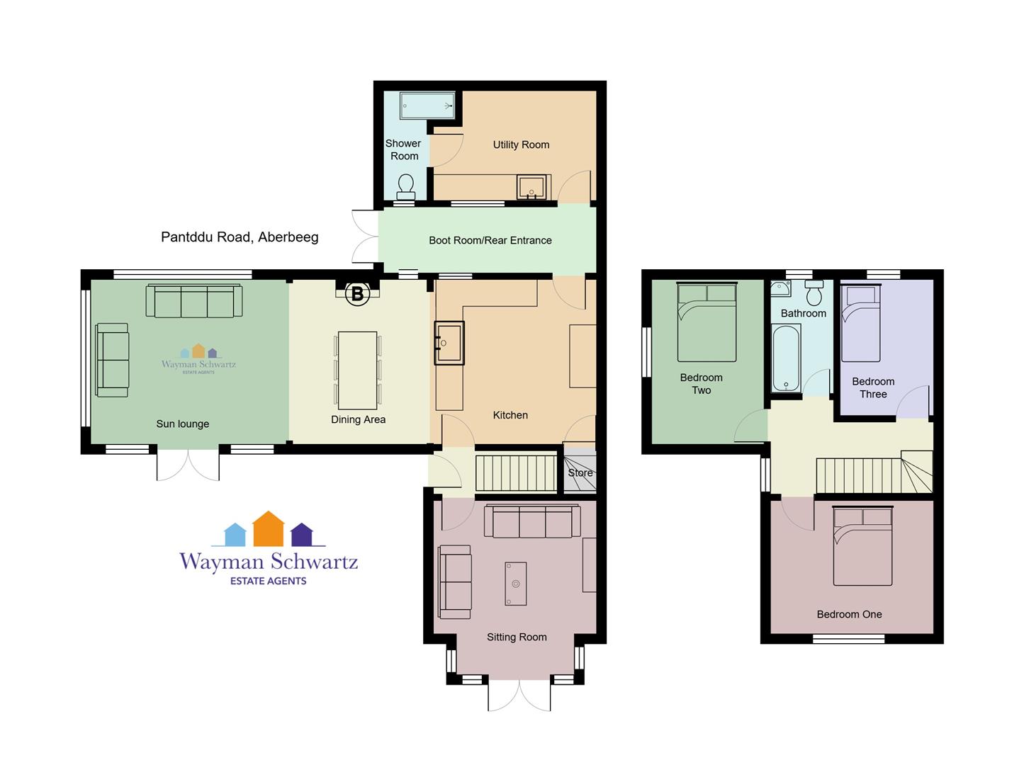 Located in a tranquil cul-de-sac on Pantddu Road, Aberbeeg, this charming extended semi-detached house built cira 1895 offers a delightful blend of comfort and modern living. With three spacious reception rooms, this property is perfect for families or those who enjoy entertaining guests. The open-plan kitchen, dining room, and sun lounge create a warm and inviting atmosphere, ideal for both casual meals and formal gatherings. The separate sitting room has French doors giving access to the wonderful views. The house boasts three well-proportioned bedrooms, providing ample space for relaxation and privacy. Additionally, there is a first floor bathroom and ground floor shower room, ensuring convenience for all residents. The ground floor features a utility room and boot room/side entrance. One of the standout features of this property is its wonderful gardens, which offer a serene outdoor space for gardening, play, or simply enjoying the picturesque views that surround the area. The house has two log burners, one that runs the central heating, the other is located in the sun-room. The location provides a peaceful retreat while still being within easy reach of local amenities and transport links. This semi-detached house is not just a home; it is a lifestyle choice, offering a perfect balance of indoor and outdoor living in a beautiful setting. Whether you are looking to settle down or seeking a family-friendly environment, this property is sure to impress.Entrance HallDouble glazed coloured composite entrance door, painted finish to ceiling, papered finish to walls, stairs leading to first floor accommodation.Sitting Room (3.72 x 3.04 4.04 inc bay (12'2" x 9'11" 13'3" inc)Double glazed square bay to front aspect with French doors and wonderful views, painted finish to ceiling, ceiling rose, papered finish to walls with picture rail, feature fireplace, radiators.Kitchen (3.82 x 3.77 (12'6" x 12'4"))Double glazed window to rear aspect (boot room/rear entrance entrance) painted finish to ceiling, base units, doble Belfast style sink, chimney breast alcove, flagstone style flooring, under-stairs storage, door leading to boot room/side entrance, open plan to dining area.Dining Area (3.04 x 3.28 (9'11" x 10'9"))Painted finish to walls and ceiling, double glazed window to rear aspect (boot room/entrance), flagstone style flooring, multi fuel burner with back boiler for the central heating system.Sun Lounge (4.46 x 3.64 (14'7" x 11'11"))Double glazed windows to side and rear, painted finish to walls and ceiling, flagstone style flooring, log burner, double glazed french doors leading to front garden.Boot Room/Rear EntranceDouble glazed French doors leading to courtyard and log store, tiled flooring.Utility Room (2.48 x 3.50 (8'1" x 11'5"))Double glazed window, textured finish to ceiling, painted finish to walls, sink, plumbing for washing machine, tiled flooring, radiator.Ground Floor Shower Room/WcObscured window, low level WC, tiled shower area with electric shower, heated towel rail.LandingDouble glazed window to side aspect, painted finish to ceiling, roof access hatch, papered finish to walls, radiator.Bedroom One (3.47 x 2.95 (11'4" x 9'8"))Double glazed slide and sash style window to front aspect with views, painted finish to walls and ceiling, radiator.Bedroom Two (2.56 x 3.59 (8'4" x 11'9"))Double glazed slide and sash style window, painted finish to walls and ceiling, radiator.Bedroom Three (2.38 x 2.99 (7'9" x 9'9"))Double glazed slide and sash style window to rear aspect, painted finish to walls and ceiling, radiator.Bathroom/WcDouble glazed window to rear aspect, painted finish to ceiling, painted and painted wood finish to walls, bath, wash hand basin, low level WC, heated towel railOutsideFront GardenWall boundaries, gated steps leading to garden with mature shrubs, lawn, large storm canopy above seating area, further gravelled seating area, wonderful views.Rear GardenGravelled pathway leading to rear garden with gravelled area, mature shrubs, gateway leading to paved courtyard with log store, steps leading to further garden with greenhouse, rear pedestrian access.