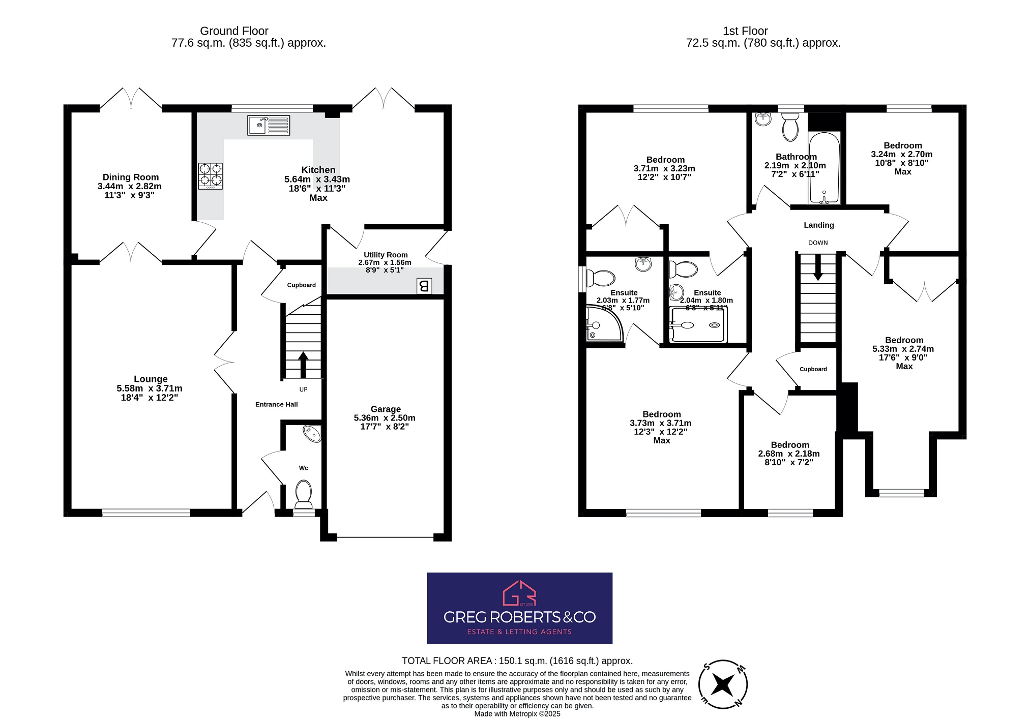 This impressive five-bedroom, three-bathroom detached house features a garage and driveway, situated in a highly desirable area that offers stunning views of the surrounding countryside from the southwest-facing garden.Constructed in 2013, this exceptional family home boasts over 1,610 square feet of versatile and contemporary living space in a peaceful yet convenient location of Bedwellty Gardens.The ground floor welcomes you with a hallway leading to all principal rooms. The large sitting room at the front of the property features double doors that open onto the dining room. At the rear, the bright and airy kitchen/breakfast room stands out with its sleek gloss cabinetry, integrated appliances, ample storage, and generous worktop space. French doors from the kitchen open onto the sunny rear garden, seamlessly blending indoor and outdoor living. It also provides direct access to a practical utility room with an external entry. Adjacent to the kitchen, the separate dining room is filled with natural light thanks to its own patio doors, making it an ideal setting for entertaining. For added convenience, there is a ground floor cloakroom.Upstairs, the first floor accommodates five well-appointed bedrooms that offer ample space and comfort. Two generously sized ensuite bedrooms are equipped with walk-in showers, while the three remaining bedrooms are served by a modern three-piece family bathroom. The property is in excellent condition throughout, providing versatile living opportunities due to its overall size.Externally, the home benefits from a private southwest-facing rear garden predominantly laid to lawn, accompanied by a sun patio that offers picturesque views over the surrounding hills and woodlands. At the front, a driveway provides ample off-road parking and access to the large integral garage, which offers plenty of storage.This beautiful home presents an unbeatable combination of size, location, and high-end finishes, making it perfect for growing families or those seeking a semi-rural lifestyle without sacrificing modern conveniences.SituationLocated in the desired area of Bedwellty Gardens at the Southern edge of the historic town of Tredegar towards Blackwood, this home is in close proximity to local schools, amenities and countryside walks. Within the town there is an array of local shops, restaurants, public houses, a post office and a Lidl supermarket.Tredegar is located in the Upper Sirhowy Valley in the heart of South East Wales and is not only steeped in natural history but also surrounded by natural beauty. It is conveniently situated just off the A465 Heads of the Valley link road, providing easy access to Cardiff (approx. 23 miles), Swansea (approx. 40 miles) and beyond. The nearest train stations are a short drive to nearby Ebbw Vale and Rhymney.Additional informationEPC Rating | CCouncil Tax Band | E (at the date the property was listed)Tenure | We are informed the property is Freehold. Intending purchasers should make their own enquiries via their solicitors.Local Authority | Blaenau Gwent County CouncilServices | We understand that the property is connected to mains gas, electricity, water and drainage.Agents noteConsumer Protection from Unfair Trading Regulations 2008Whilst every effort has been made to ensure to accuracy, these sales particulars must not be relied upon. Please note that we have not tested any apparatus, fixtures, fittings, or services. Interested parties must undertake their own investigation into the working order of these items. All measurements are approximate and photographs provided for guidance only and it must not be inferred that any item shown is included with the property.Viewing | Strictly by appointment with the agents - Greg Roberts and CoEntranceComposite and obscured double-glazed door into Entrance Hall.Entrance HallTiled flooring, smooth ceiling, radiator, white gloss door to WC, white gloss double doors to Lounge. Hard wood and glazed door to Kitchen, white gloss door to useful under stairs storage cupboard.Downstairs WCTiled flooring, smooth ceiling, wash hand basin with vanity unit beneath, WC, radiator, uPVC and obscured double glazed window to front.Kitchen-Breakfast Room (5.64m x 3.43m Max (18' 6" x 11' 3" Max))Tiled flooring, smooth ceiling with spotlights, range of base and eye level units with tiled splashbacks, stainless sink and drainer, integrated gas hob, electric oven with extractor fan over, space for fridge-freezer, radiator, uPVC and double glazed window to rear, uPVC and double glazed patio doors to rear, door to Utility Room, door to Dining Room.Utility Room (2.67m x 1.56m (8' 9" x 5' 1"))Tiled flooring, smooth ceiling with extractor fan, space for washing machine, space for dishwasher, space for tumble dryer, worktop with unit above, wall-mounted 'Worcester' combi-boiler, radiator, uPVC and obscured double glazed door to side.Dining Room (3.44m x 2.82m (11' 3" x 9' 3"))Laminated flooring, smooth ceiling, radiator, uPVC and double glazed patio doors to rear, white gloss and glazed doors to Lounge.Lounge (5.58m x 3.71m (18' 4" x 12' 2"))Laminated flooring, smooth ceiling, radiator, uPVC and double glazed window to front.LandingL-shaped: Carpet as laid, smooth ceiling, white gloss doors to Bedrooms, white gloss door to Bathroom, white gloss door to useful storage cupboard, loft access.Bedroom 1 (5.33m Max x 2.74m Max (17' 6" Max x 9' 0" Max))Laminated flooring, smooth ceiling, radiator, white gloss double doors to built-in wardrobe, uPVC and double glazed window to front.Bedroom 2 (3.24m Max x 2.70m Max (10' 8" Max x 8' 10" Max))L-shaped: Laminated flooring, smooth ceiling, radiator, uPVC and double glazed window to rear.Bedroom 3 (3.71m x 3.23m (12' 2" x 10' 7"))Laminated flooring, smooth ceiling, white gloss double doors to built-in wardrobe, white gloss doors to Ensuite, radiator, uPVC and double glazed windows to rear.En-Suite Shower Room (2.04m x 1.80m (6' 8" x 5' 11"))Tiled walls, tiled flooring, smooth c