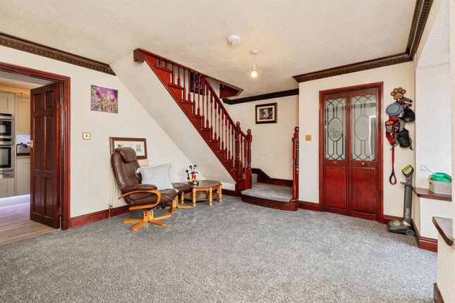 Summary** double garage ** Situated in a quiet backwater in Coalpit Heath this five bedroom detached home offers an astounding amount of space for a growing family! A large entrance hall, two reception rooms, kitchen, utility and cloakroom on the ground floor, five bedroom, family bathroom and ensuite!DescriptionEntrance Hall 11' 8" to under stairs x 10' 10" + stairs ( 3.56m to under stairs x 3.30m + stairs )Double glazed door to front, understairs storage, cloak cupboard, door to lounge diner and kitchen.Lounge / Diner 24' 11" x 14' 3" ( 7.59m x 4.34m )Two double glazed windows to front aspect, two radiators, feature wood burning stove with granite hearth, coved ceiling and two ceiling roses.Kitchen 14' 1" x 7' 3" ( 4.29m x 2.21m )A modern fitted kitchen with both wall and floor units with work surfaces over, tiled splashbacks & upstands, composite sink & drainer, high level double oven, electric hob and cooker hood over, double glazed window to rear and wood effect vinyl floor. Doors to utility room and reception room twoUtility RoomDouble glazed window to rear and door to side. Door to cloakroom, wall and floor units with work surfaces over and tiled splashbacks, wood effect vinyl flooring.Cloakroom Double glazed window to side, w/c, vanity wash hand basin, extractor fan, chrome effect towel radiator, wood effect vinyl flooring. Range of storage cupboards.Lounge 21' 4" x 9' 8" ( 6.50m x 2.95m )Double glazed window to front and side, radiator, gas feature fire place with stone surround, coved ceiling and doorway to kitchen.Landing Stairs to first floor, double glazed to front aspect, airing cupboard providing shelving and immersion tank, door to bathroom and all bedrooms.Bedroom One 24' 10" full length x 10' 6" max ( 7.57m full length x 3.20m max )Two separate areas providing a bedroom area and dressing area, two double glazed roof windows to rear aspect, two radiators, LED feature strip lighting inset to ceiling and door to ensuite.EnsuiteDouble glazed skylight to rear aspect, vanity wash hand basin, shower cubicle with thermostatically controlled shower, low level WC, tiled walls and floor. Chrome effect towel radiator and feature glass block wall.Bedroom Two 14' 1" x 11' 8" ( 4.29m x 3.56m )Double glazed window to front and side aspect, radiator.Bedroom Three 14' 9" x 7' 9" ( 4.50m x 2.36m )Double glazed window to side aspect, radiatorBedroom Four 14' 9" max x 7' 7" ( 4.50m max x 2.31m )Double glazed window to rear aspect, radiator and fitted cupboard.Bedroom Five 10' 6" x 5' 11" ( 3.20m x 1.80m )Double glazed window to front aspect, radiator and fitted cupboard.BathroomA four piece suite comprising corner bath with mixer taps, shower cubicle with thermostatically controlled shower, low level, WC, wash hand basin, coved ceiling and spotlights inset, tiled walls and vinyl floor.Garden A private garden fully enclosed by wall, fence and gate to front. Laid to patio and lawn, open to driveway.Double GarageUp and over double door to front driveway, double glazed patio doors to side. Power and light.1. Money laundering regulations: Intending purchasers will be asked to produce identification documentation at a later stage and we would ask for your co-operation in order that there will be no delay in agreeing the sale.
