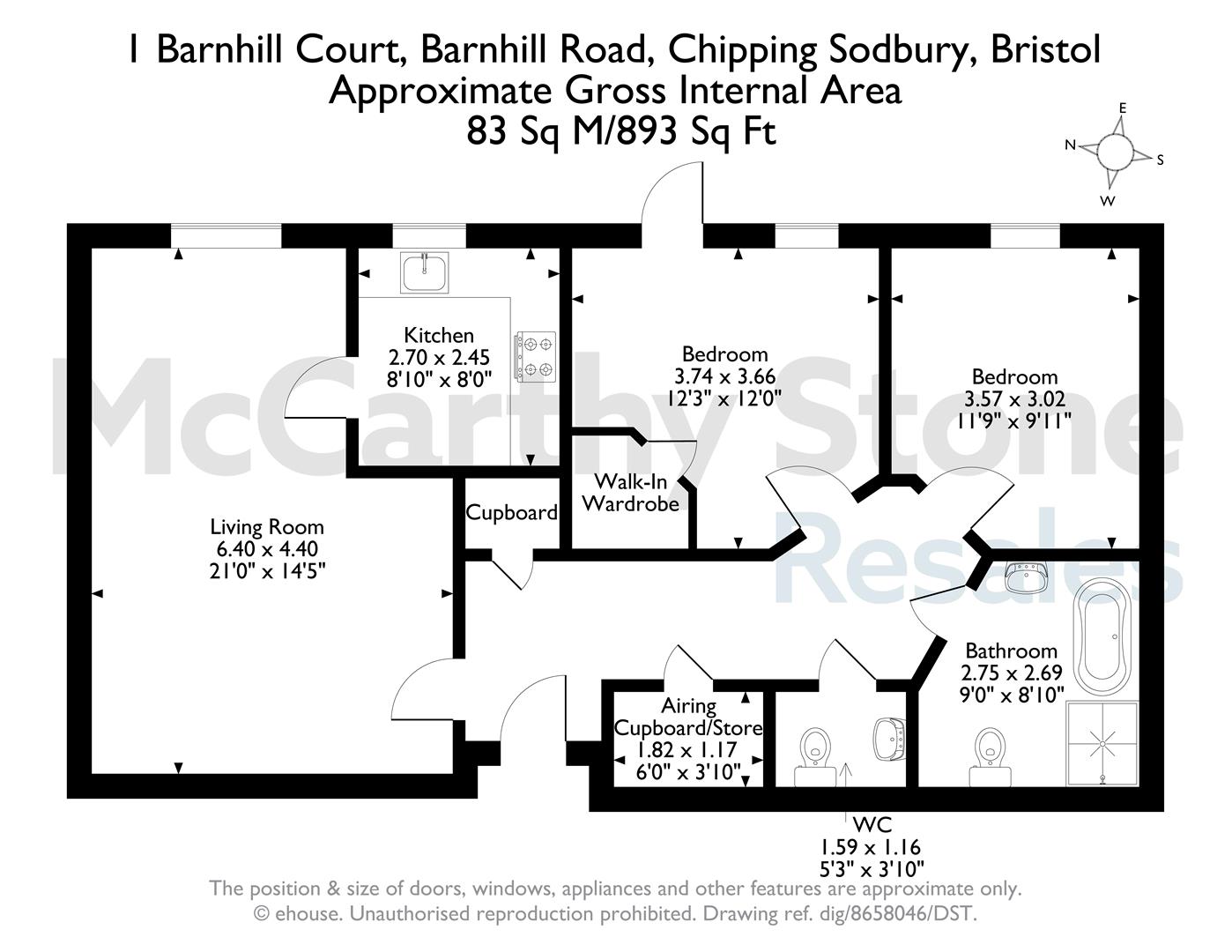 Very well presented ground floor, two bedroom apartment with a south easterly aspect and access out on to a pretty patio area.*Energy Efficient* *On Site Restaurant* *Pet Friendly*Barnhill CourtCompleted by award-winning developers McCarthy Stone in 2015, Barnhill Court is a ‘Retirement Living Plus’ development providing private apartments specifically for those over 70 years of age and is designed for independent living with the peace-of-mind provided by the day-to-day support of our excellent staff and Estate Manager who oversee the smooth running of the development.Homeowners benefit from one hour of domestic assistance each week and there are extensive domestic and care packages available to suit individual needs and budgets. All apartments are equipped with a 24-hour emergency call facility and sophisticated intercom system providing both a visual and verbal link to the main development entrance.The development boasts a host of facilities for the enjoyment of home owners, not least of which is the beautiful communal lounge which is the hub of social activities. There is also a restaurant with a fantastic, varied daily table-service lunch. In addition, there are lifts serving all floors, mobility scooter store, laundry room and a lovely landscaped garden.There is also the excellent guest suite widely used by visiting family and friends for which a small nightly charge applies. It’s so easy to make new friends and to lead a busy and fulfilled life at Barnhill Court - there are always plenty of regular activities to enjoy. These may include: Coffee mornings; art group; fitness classes; film night; games and quiz night;, seasonal and themed events and occasional organised trips. Whilst there is something for everyone there is certainly no obligation to participate and home owners ‘dip in and out’ of activities as they wish.The Local AreaChipping Sodbury a picturesque medieval market town situated in the South Cotswolds just minutes from the M4 and M5 motorways between Bath and Bristol, near Badminton and Tetbury. With 120 listed properties in the main streets, this Britain in Bloom Gold award winning town is an ideal place to visit at any time of the year. There are plenty of cafes, pubs and restaurants, independent shops, markets and plenty of free parkingBarnhill Court occupies an excellent position - an easy 10-minute level walk to the thriving and historic Chipping Sodbury High Street with its origins dating back to the 12th Century. In addition, a Waitrose supermarket is very close by with easy pedestrian access.No.1Located on the ground floor, this beautifully presented apartment has access out on to a pretty, south east facing patio area. The modern, well equipped kitchen incorporates integrated appliances and there is a spacious living room. Both bedrooms are of a double size and the master bedroom has a walk in wardrobe. The bathroom has both a separate bath along with a walk in shower.Entrance HallA spacious hallway having a solid Oak veneered entrance door with spy-hole. Emergency pull cord along with a security intercom system that provides both a visual (via the home-owners TV) and verbal link to the main development entrance door. Walk-in utility cupboard having light, shelving and housing the Gledhill water cylinder that supplies domestic hot water, along with the concealed ‘Vent Axia’ unit.CloakroomWith WC and wash hand basin with mirror above. Heated towel rail/radiator and emergency pull cord.Living/Dining RoomA generous size 'L' shaped room with panelled glazed door opening to the kitchen.KitchenAn excellent range of ‘Shaker styled’ cream-fronted fitted wall and base units with woodblock effect laminate worktops, matching upstands and incorporating a stainless steel inset sink unit. A range of integrated appliances include; a four-ringed halogen hob with glazed splash-back and stainless steel chimney extractor hood over, waist level built-in oven and concealed fridge and freezer. Plank styled flooring.Master BedroomAn excellent double bedroom with a triple-glazed picture window and hallf glazed door opening on to the patio area. Walk-in wardrobe with auto light, ample hanging space and shelving.Bedroom TwoA further double bedroom that could alternatively be used as a separate dining room or study.BathroomWhite suite comprising; Panelled bath, separate walk-in level access shower with a raindrop shower head and additional adjustable shower attachment, close-coupled WC, vanity wash-hand basin set into excellent bathroom furniture storage cupboards below and to one side, mirror and inset downlights. Fully tiled walls, vinyl flooring, electric heated towel rail/radiator and emergency pull cord.ParkingCar parking is available with a yearly permit at a charge of around £250 per annum (subject to availability).Additional Information & Services• Superfast Fibre Broadband available• Mains water and electricity• Electric room heating• Mains drainageService ChargeWhat your service charge pays for:• Estate Manager who ensures the development runs smoothly• cqc Registered care staff on-site 24/7 for your peace of mind• 1 hour cleaning / domestic assistance per week, per apartment• 24hr emergency call system• Monitored fire alarms and door camera entry security systems• Maintaining lifts• Heating and lighting in communal areas• The running costs of the onsite restaurant• Cleaning of communal areas daily• Cleaning of windows• Maintenance of the landscaped gardens and grounds• Repairs & maintenance to the interior communal areas• Contingency fund including internal and external redecoration of communal areas• Buildings insurance, water and sewerage ratesThe service charge does not cover external costs such as your Council Tax, electricity or TV. Find out more about service charges please contact your Property Consultant or Estate Manager.Annual service charge: £12,137.49 for financial year ending 30/09/202.Ask about our free ent