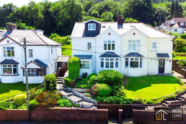 Grand Four-Bedroom Semi-Detached Home with Castle Views in Caerphilly’s Most Desirable LocationSet on one of Caerphilly’s most sought-after streets, this grand and characterful four-bedroom semi-detached family home offers elegant living, exceptional views, and unparalleled convenience. Located just a short walk from excellent schools, Caerphilly train station, and the town’s shops, pubs, and restaurants, this impressive property boasts panoramic vistas over the historic Caerphilly Castle and surrounding townscape.Approached via a charming stone staircase framed by manicured flower gardens, the home welcomes you into a bright glass entry porch with ample space for coats, shoes, and bags. This leads into a spacious main hallway featuring under-stair storage and beautiful wooden parquet flooring, which flows throughout the ground floor living spaces.To the front, the principal living room is light-filled and generous, enhanced by high ceilings and a large bay window with stunning front-facing views. A second reception room offers equal elegance, featuring a cosy log burner and views to the rear, making it an ideal family lounge or formal dining area.The modern kitchen is well-equipped with matte grey cabinetry, generous counter top space, and integrated appliances including a fridge/freezer and double oven. Adjacent is a highly practical utility room with space for a stacked washer and dryer, additional storage, and pantry shelving. Completing the ground floor is a cloakroom with WC and access to the rear garden.Upstairs, the first floor reveals three beautifully appointed double bedrooms. Bedroom two captures striking views over Caerphilly town and castle, while bedrooms three and four enjoy peaceful outlooks toward Caerphilly Mountain and the surrounding woodlands. Two of the bedrooms benefit from built-in wardrobes. The family bathroom is bright, modern, and stylishly finished with a full-size bath and separate walk-in shower.The top floor is dedicated to the stunning master suite, offering a tranquil retreat with skylight and rear-facing window capturing far-reaching views over the treetops. This spacious room also features a walk-in closet on the landing and a generous en-suite with both a bath and walk-in shower.The rear garden is thoughtfully tiered to create separate zones: A paved seating area, a lush lawn surrounded by mature trees and shrubs, a gravelled section, and a purpose-built home gym complete with an outdoor weights zone and indoor cardio space. A private gate offers direct access to Caerphilly Mountain’s scenic walking trails—ideal for outdoor enthusiasts.To the front, the raised mature garden is filled with colourful shrubs and flowers, while ample on-street parking is available for residents and guests alike.This exceptional family home blends timeless charm with contemporary comforts in an unbeatable location—perfect for those seeking space, views, and convenience all in one. Early viewing is highly recommended.
