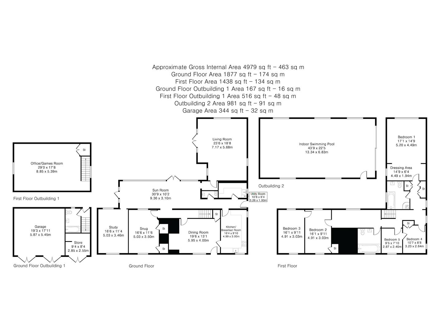 A handsome Grade ll Listed residence situated in an idyllic rural location with stunning views over adjoining countryside. The property offers a wealth of period charm, together with stunning grounds extending to 3 acres, triple garage, annexe and swimming pool.Front Entrance DoorDining RoomWindow to the front aspect, Inglenook fireplace and doors to adjoining rooms.KitchenWith base level units, butler sink, Aga, space and plumbing for a dishwasher, fitted pantry cupboard, window to the front and side aspect, understairs storage cupboard. Doorway leading into:Side Entrance HallWith external stable door to the side elevation, door into:Utility RoomWith base and eye level units, butler sink, space and plumbing for washing machine and tumble dryer, space for freestanding fridge/freezer and window to the side aspect.Downstairs WcWith ceramic wash hand basin, w.c.Sun RoomWith glazed windows to the rear and side elevations, French doors out to the rear and glazed door to the side. Doors to adjoining rooms.StudyWith glazed windows to the front and rear aspects, feature cast iron fireplace, fitted storage cupboard.Living RoomWith glazed windows to the side and rear aspects, French doors to the side, feature fireplace with woodburning stove.On The First FloorLandingWith doors to adjoining rooms, glazed window to the side aspect.Bedroom 1With dressing area, opening into Bedroom with fitted wardrobes, vanity unit with drawers and dressing table, glazed windows to the side and rear aspects, leading into:EnsuiteWith pedestal wash hand basin, low level w.c., freestanding rolltop bath with shower unit, glazed window to the side aspect.Bedroom 2With glazed windows to the front and rear aspects, feature hand painted restored Tudor pattern on the wall.Bedroom 3With glazed windows to the front and rear aspects, feature cast iron fireplace, fitted storage cupboard.BathroomWith pedestal wash hand basin, low level w.c., rolltop bath with shower attachment, glazed window to the front aspect.Bedroom 4With glazed window to the side aspect, fitted wardrobe and doorway leading into:Bedroom 5With glazed window to the front aspect.OutsideThe property is accessed via a timber 5-bar gate, gravelled driveway providing off-street parking for several vehicles leading up to the triple bay garage with set of timber doors, power and lighting and an adjoining annexe. Adjacent to the utility room is a boiler room housing the oil fired boiler and a water softener.AnnexeComprising:Entrance HallWith doorway to:BathroomPedestal wash hand basin, low level w.c., panelled bath and over shower, window to the rear aspect.Stairs Rising Up Into:Open Plan AccommodationWhich is a vaulted space with exposed timbers, windows to both side elevations and fitted storage cupboards.Detached Swimming Pool ComplexWith glazed windows to the front and rear aspects, glazed sliding doors to the side elevation. The flooring is paved around the swimming pool, steps and handrail leading down into the pool.GardensThe gardens extend to approximately 3 acres. 2 acres to the rear of the property which are beautifully landscaped with established planting and attractive box hedging, stunning views over the adjoining countryside and a paved terrace area for alfresco entertaining. Further acre across the lane which is left to a wild meadow.Agent's NotesFor more information on this property, please refer to the Material Information brochure that can be found on our website.ViewingsBy appointment through the Agents.