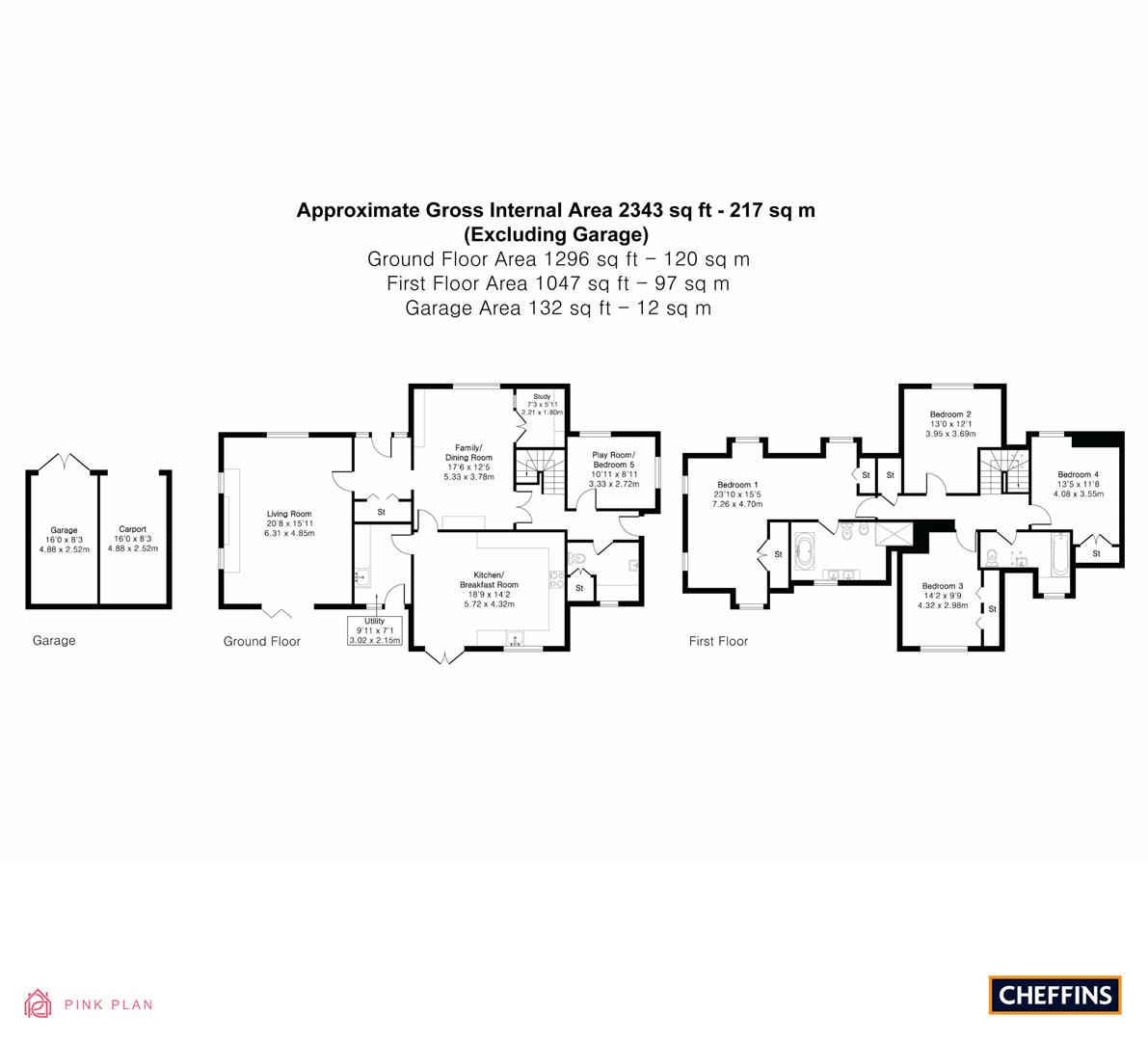 A highly attractive and substantial detached residence, extending to approximately 2,343 sq ft, which has been thoughtfully improved and updated by the current owners. The property offers beautifully presented and versatile accommodation, ideal for modern family living. Set within mature, well-established grounds of around 0.43 of an acre, the home enjoys a desirable position on the outskirts of this thriving and sought-after village, nestled on the edge of the historic former land settlement.Covered EntranceWith outside light, timber entrance door with leaded and frosted glazed panel leading into:|Reception HallwayCoved ceiling with inset downlighters, double coats cupboard with shelving and hanging rail, radiator, double glazed and frosted windows to the front.Living RoomCoved ceiling with inset downlighters, feature fireplace with log burning stove, natural brick chimney breast, raised tiled hearth, double panelled radiator, provision for panelled radiators, provision for wall mounted television and double glazed windows to two aspects and double glazed bi-fold doors leading out to the rear garden.Sitting RoomCoved ceiling with inset downlighters, feature open fireplace, natural brick chimney breast, tiled hearth and wooden bressumer, fitted adjustable bookshelving from Neptune, double panelled radiator, radiator, double glazed window to the front.StudyApproached via twin glazed doors from sitting room with fitted Neptune furniture incorporating desk, adjustable shelving, wall shelving and storage drawers, coved ceiling with inset downlighters.Kitchen/Dining RoomKitchen has been recently refitted with a generous range of storage cupboards and drawers to base and eye level with stone working surfaces with butler style sink unit with mixer tap, fitted Miele appliances including electric fan oven, microwave combination oven, induction hob with extractor hood above, fitted and concealed AEG tall refrigerator, fitted and concealed AEG dishwasher, wall shelving with recess lighting, coving, downlighters, tiled floor with underfloor heating, double glazed windows and twin double glazed doors to the rear leading out to the garden.Utility RoomRange of storage cupboards with square edge working surfaces, inset single drainer sink unit with mixer tap, space for freezer, Worcester oil fired boiler providing domestic hot water and central heating system, plumbing and space for automatic washing machine and space for tumble dryer, tiled floor, double glazed window to the rear, panelled and glazed door leading out to the rear garden.Rear HallWith twin glazed doors from sitting room, staircase rising to the first floor with natural timber handrail, newel posts and painted spindles, understairs storage cupboard, radiator, coved ceiling with inset downlighters, panelled and double glazed door leading to outside.CloakroomFitted with white suite comprising low level dual flush w.c., pedestal wash hand basin with mixer tap, range of storage cupboards with rolltop working surfaces above, further large shelved storage cupboard, ceramic tiling to walls, wall shelving, double glazed and frosted window to the rear, heated towel rail/radiator.Family Room/Bedroom 5Coved ceiling with inset downlighters, double glazed windows to the front and side.On The First FloorLandingCeiling with inset downlighters, access to loft space, radiator, double glazed Velux rooflight, cupboard housing pressurised hot water cylinder.Bedroom 1With a pair of fitted wardrobes, a pair of radiators, ceiling with inset downlighters, double glazed windows to three aspects.Ensuite Bath/Shower RoomWith six piece suite comprising freestanding bath with floor mounted mixer with handheld rose, walk-in shower with glazed sliding shower screen, drencher shower head and handheld rose, a pair of wash hand basins with mixer taps sitting on marble top with storage drawers below, bidet, low level dual flush w.c., tiled floor, part tiled walls, heated towel rail/radiator, ceiling with downlighters and extractor fan, double glazed and frosted window to the rear.Bedroom 2Ceiling with inset downlighters, radiator, fitted wardrobe cupboard, double glazed window to the rear.Bedroom 3Fitted wardrobe cupboard, ceiling with inset downlighters, double panelled radiator, double glazed Velux rooflight, double glazed window.Family BathroomWhite three piece suite comprising panelled shower bath with mixer tap, shower unit above with drencher shower head and handheld rose, glazed shower screen, wash hand basin with mixer tap and storage drawers below, low level dual flush w.c., heated towel rail/radiator, attractive tiling to walls, double glazed rooflight, double glazed and frosted window to the rear, ceiling with inset downlighters, extractor fan.Bedroom 4Ceiling with inset downlighters, radiator, double glazed window to the front.OutsideElectric 5-bar gate with access to gravelled driveway with turning area, mature hedgerow, mature trees and lawned area, detached garage with pitched tiled roof underneath weatherboarded elevations with adjoining covered store, open parking area and garage, power and light connected and storage to eaves.Rear garden which is principally laid to lawn with hedging, close boarded fencing, post and rail fencing, patio area, timber decking with views to the rear over the adjoining paddock land.