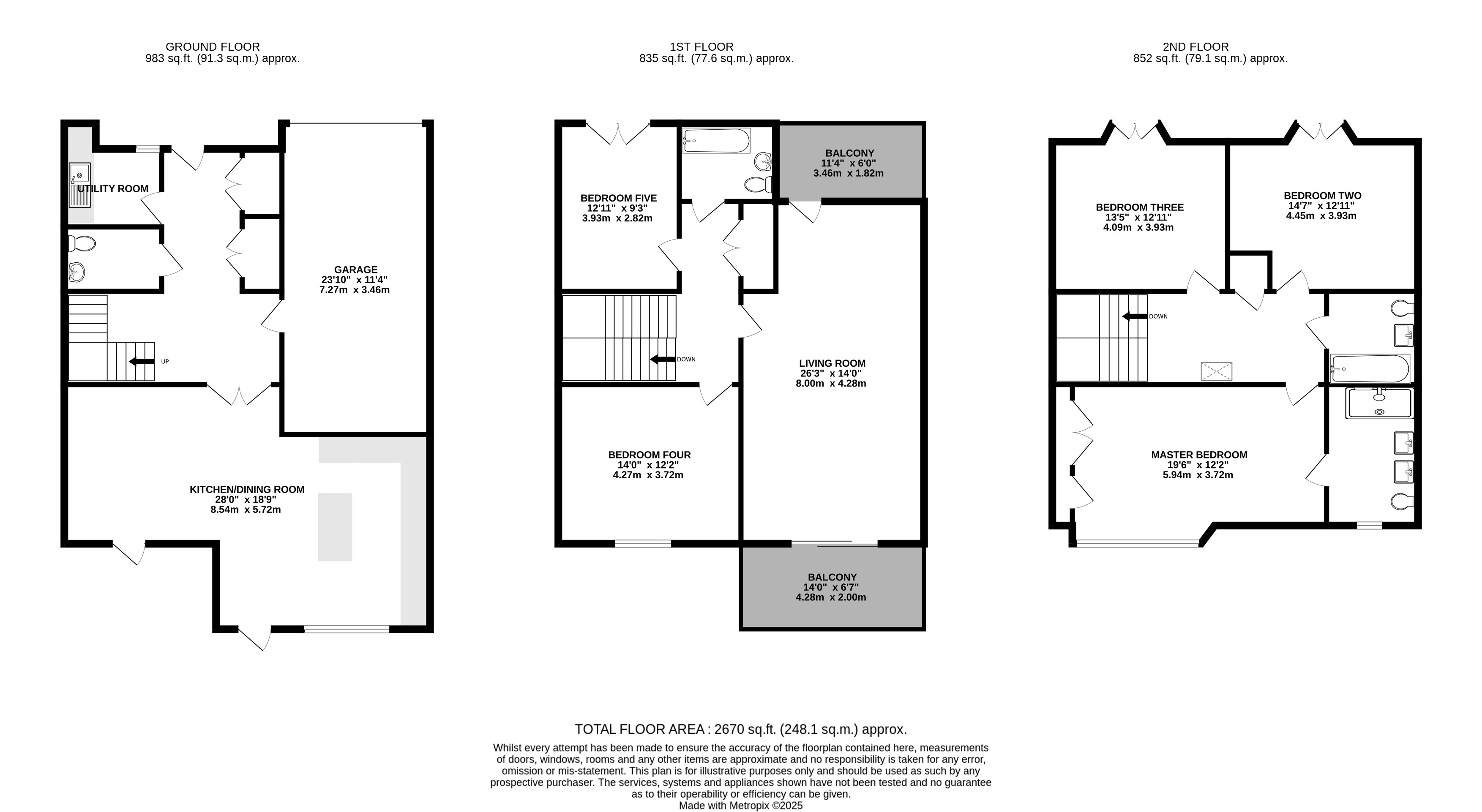 This stunning five bedroom home is set over three storeys in the prestigious Knights Park development in Eddington. Providing 2400 sq ft of stylish newly built family living space, it is close to the university primary school, shops and bars as well as convenient for access to the A14 / M11.Full description A rare chance to acquire this stunning five bedroom residence, over three storeys, perfectly positioned in the prestigious Knights Park development. Providing 2400 sq ft of family living, this contemporary property is part of a growing community, complete with primary school, shops and bars as well as convenient for access to the A14 / M11.On the ground floor, there is a spacious kitchen/dining area with a separate utility room and wc, and access to private garage. On the first floor, a spacious living area with access to two spacious terraces at either end of the room, plus two bedrooms and a contemporary family bathroom. Lastly, on the second floor, there are three large double bedrooms with an elegant ensuite and fitted wardrobe to the master bedroom and a second family bathroom. Outside there is a private garage with cycle parking.The development is ideally positioned in between the Madingley and Huntingdon Roads. Access into central Cambridge is convenient by bike, car, bus or foot. There are ample cycle ways around the city. The west of Cambridge also provides easy access via the M11 straight to Junction 11 and into the south of the city - either for Addenbrookes Hospital / Biomedical Campus or for many of the city schools. The u-Bus also provides a convenient shuttle service between many of the research parks and picks up from Eddington.Kitchen/diner Triple glazed sliding door, range of base and wall mounted units with granite work surfaces over, integrated Siemans oven and grill, integrated Bosch freezer and fridge, stainless steel sink with mixer tap over, inset into granite and drainer, integrated Bosch, dishwasher, wine cooler, breakfast island with integrated Siemans 5 ring induction hob, inbuilt drawer and shelving, extractor fan and downlights above, inset spotlights, wooden flooring, full height trip glazed window to rear.Utility room Double glazed window to front aspect, base unit with granite work surface over, stainless steel sink with mixer tap over, washing machine and tumble drier, wooden flooring, inset spotlights.Cloakroom Low level wc, wash hand basin wooden flooring.Hallway Wooden flooring, stairs to first floor, under stairs storage cupboard, coat cupboard, cupboard housing mvhr unit.First floor first floor landing Stairs to second floor, storage cupboard.Living room Triple glazed sliding doors to balconies at both front and rear, wooden flooring.First floor bathroom Obscured double glazed window to front aspect, heated towel rail, side panelled bath with shower above and glazed screen, wash hand basin, low level wc, fully tiled walls and floor, inset spotlights.Bedroom five Double doors to Juliet balcony.Bedroom four Full height triple glazed window to rear aspect.Second floor second floor landing Skylight, storage cupboard.Master bedroom Full height triple glazed window to rear aspect, door to rear, build in wardrobes.Ensuite Triple glazed Velux window to rear aspect, double width shower cubicle with glazed shower screen, two wall mounted wash hand basins, low level wc, porcelain tiling to floor and walls, inset spotlights.Bedroom two Triple glazed double doors to Juliet balcony.Bedroom three Triple glazed double doors to Juliet balcony.Bathroom Side panelled bath with under panel lighting, shower cubicle and glazed shower screen, low level wc, wash hand basin, heated towel rail, porcelain tiled floor, wall inset spotlights, heated towel rail.Rear garden Patio area, lawn with shrub border enclosed brick wall, gated pedestrian access to rear.Garage Electric remote control up and over garage door, power and lighting connected, door to side aspect.