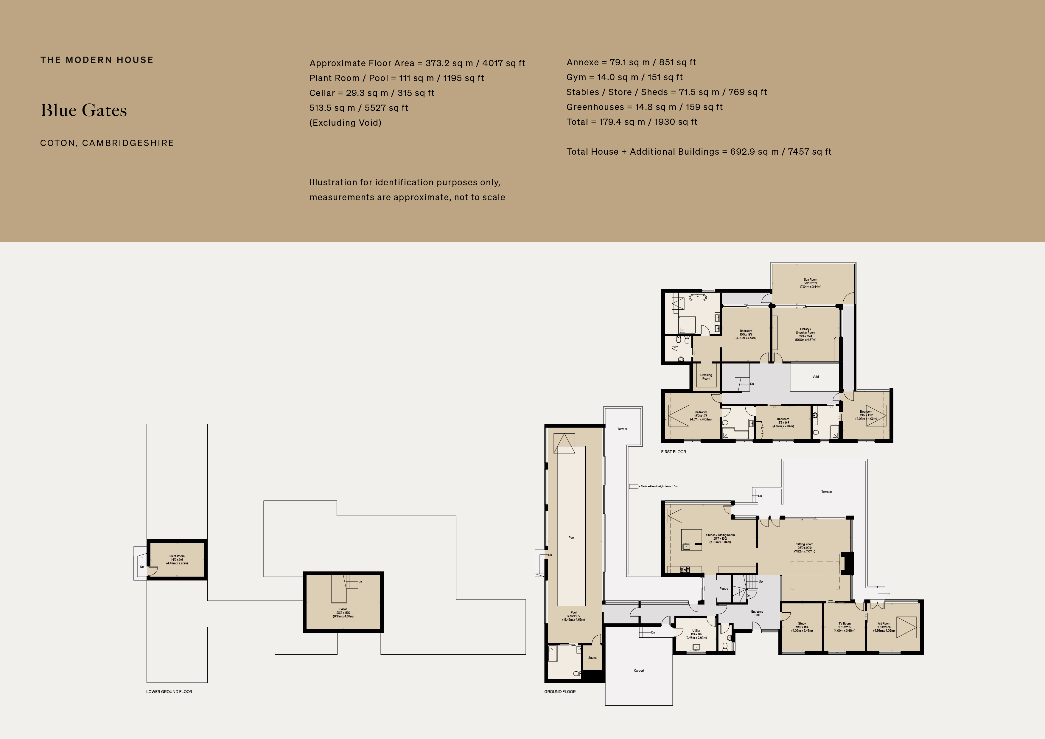 Blue Gates is a remarkably unique home on the fringes of Coton, a peaceful village four miles from Cambridge. Completed in 2009, its post-and-beam timber frame formation was conceived by Pagano and has a mid-century appeal in its use of warm-toned Austrian pinewood and relaxed indoor-outdoor flow. Unfolding over around 5,500 sq ft, the home has four bedrooms, open-plan living areas set beneath towering ceilings and beautiful southern aspects. It has an indoor pool, as well as beautiful grounds of around 1.6 acres and a detached two-bedroom annexe. A 15-minute bike ride, along footpaths and cycle tracks, leads straight to the city centre.The DesignerPagano is a family-run Italian company that has been building prefabricated luxury houses since 1959. It makes masterful use of environmentally friendly, fsc-certified wood to realise beautiful environments that prioritise light and comfort. Blue Gates is thought to be their only home in the UK.The TourThe house is approached via two sets of electric gates; a driveway with hedging on both sides leads to the main entrance and a roofed carport. The gravelled forecourt has well-tended leafy borders with an array of mature trees providing exceptional privacy.Arranged around a precise 2.5m x 2.5m modular grid, the house hovers above the ground, its exposed timber structure complemented by a combination of full-height glazing, sliding screens, pocket doors, and panelled infills. South-facing wraparound covered balconies on both floors form an integral part of the house’s character and layout.Underfloor heating, powered by an air source heat pump, runs throughout most of the ground floor. There is a Bticino light and security system, automated blinds, and photovoltaic solar panels.Past a short flight of steps, the recessed entrance opens to the airy hall. Within, the serene, restrained palette continues to enhance a connection with the lush external greenery, visible throughout the house.Ahead lie the main living rooms. Abundant natural light streams in from east, south, and west-facing glazing, illuminating the interiors from dawn to dusk. An open-plan configuration, subtly delineated by a series of wide pocket screens, affords a series of versatile spaces.Partially fitted beneath a dramatic double-height atrium, the generous sitting area is orientated towards a wood-burning fireplace and has sliding doors opening to the expansive roofed terrace and dining area with compelling open countryside views. A snug and a generous art studio with access to the garden sit alongside.The kitchen and dining room is also adjacent. A large island sits surrounded by generous runs of base cupboards and a wall of pressed bamboo-fronted tall units. A red Richmond range cooker adds colour, and the nearby walk-in pantry provides additional storage.The study, positioned off the entrance hall, is a quiet retreat. There is also a well-positioned utility room, accessible from the carport.An inner hall leads to an impressive indoor leisure wing, home to a 15-metre Indian-tiled pool (heated mainly by solar panels), a sauna, a hot tub, and a changing room. Floor-to-ceiling glass doors open to a southern sun deck, cantilevered above the pond.Light from above bathes the centrally positioned staircase. This ascends to a galleried landing, set beneath a vaulted, lanterned ceiling.The spacious principal bedroom is a bright space with views across the garden. It has a balcony, a walk-in dressing room, a separate WC and an en suite bathroom with a freestanding tub, a shower, and a double vanity set in marble.There are three additional double bedrooms at the front of the plan. Two share a Jack-and-Jill bathroom with a shower, while the third has an en suite. A library completes the first floor and has sliding doors to a sunroom.Outside is a serene two-bedroom annexe, with an open-plan living space, two shower rooms, a study and a generous south-facing balcony.Outdoor SpaceA tranquil rural backdrop complements the house’s striking profile, softened by beautifully maintained gardens with mature trees that provide exceptional privacy.Large, roofed terraces are found on both levels of the house, allowing for use year-round. On the ground floor, the kitchen opens to an outdoor dining area, and to the side, a cantilevered sun terrace runs along the swimming pool wing.Stretches of grassy lawn extend outward, punctuated by graceful willow trees and seasonal plantings. The grounds include productive vegetable patches and a thriving orchard bearing apples, plums, and pears.A versatile garden room, currently used a gym, sits alongside several outbuildings, including sheds and stables, complete with a dedicated tack room and hay store. To the front of the house are also a designated dressage menage and a covered carport, completing the house’s impressive outdoor amenities.At the end of the garden is a lockable gate that leads to a footpath and onto Coton village, around five minutes' walk away.The AreaBlue Gates lies on the outskirts of Coton, a pretty village on the edge of Cambridge. It has convenient everyday amenities, including a garden centre and farm shop, a primary school, and a telephone box library. Local pub The Plough is a brilliant spot for a Sunday lunch after a walk in the nearby Coton Countryside Reserve, where kestrels, redwings and woodcocks can be spotted.Cambridge is a 12-minute drive away from the house, or a 15-minute cycle via a tree-lined path towards Trinity Lane. Its striking historic architecture and world-class university might have established the city's international reputation, but newer additions have proven it to be a city perfectly tuned for modern living.Local food favourites include Fitzbillies, The Garden Kitchen, and Fancett’s, while the exceptional house-gallery Kettle’s Yard is always worth a visit. We've written more about our recommendations in Cambridge in our residents' guide.The area is known for its excellent schooling options. The Universit