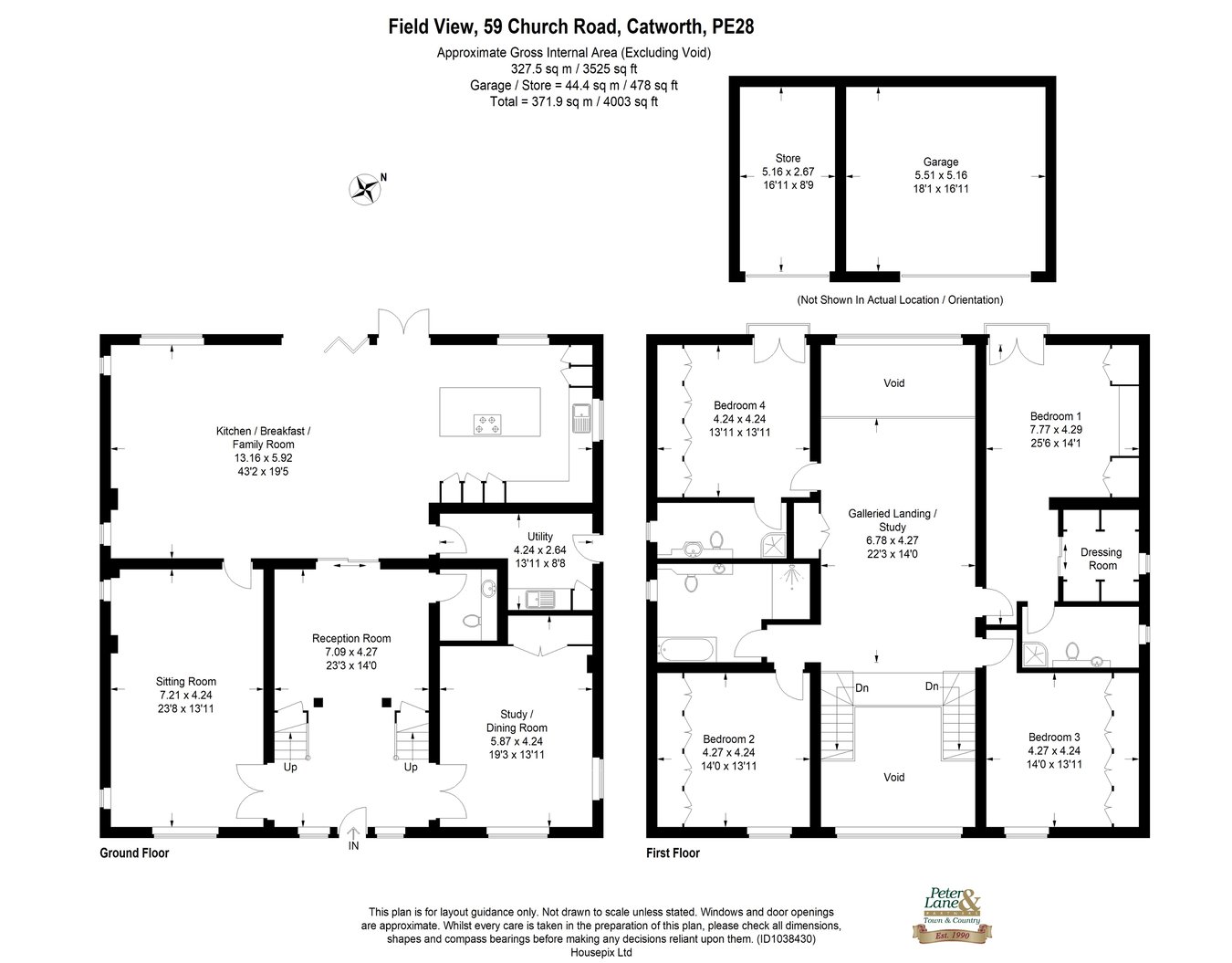 Generously proportioned barn conversion offering high quality, bespoke accommodation with a wonderfully spacious and light interior that would equally suit the growing or extended family and those looking for a comfortable, contemporary home with wonderful entertaining space and excellent facilities for home working.Completed around five years ago, the present and original owners have carefully upgraded and refreshed this fine village residence to create a bespoke family home of undoubted quality with a wonderfully spacious and light interior which takes full advantage of its delightful semi-rural location and uninterrupted countryside views.The well-planned layout extends to around 3,500 square feet and is entered via a welcoming reception hall, which features a guest cloakroom, full height glazing and fabulous twin staircases providing access to stunning galleried landing which forms an ideal study/reading area and enjoys outstanding views to the horizon.Occupying an enviable plot approaching an acre and accessed via electric gates and a sweeping private drive, the property offers, in brief, two dual-aspect reception rooms, a truly stunning kitchen/breakfast/family room, useful utility, guest cloakroom, four double bedrooms and three bath/shower rooms, plus a double garage and additional workshop/storage barn.Ground FloorThe majority of the ground floor features engineered oak flooring, with underfloor heating throughout. The front door opens into the superb reception hall with full-height glazing, guest cloakroom and twin oak staircases with glass balustrade rising to the first-floor gallery, both with useful storage cupboards below. There are two generous, dual-aspect reception rooms to the front of the property accessed from the hall via glazed double doors; the dining room/study features a large and practical cupboard providing excellent storage space.Cont'dSituated to the rear to take full advantage of the magnificent views is the stunning kitchen/breakfast/family room, extending some 43 feet and with a wonderful, vaulted ceiling and full height glazing including bi-fold and French doors opening onto the garden terrace.The family area features a wood burning stove for cosy evenings, and the beautifully crafted kitchen area is fitted with white granite counters and upstands, a comprehensive range of lacquered cabinets and quality appliances to include Miele steam oven, pyrolytic oven with warming drawer, combi oven/microwave and coffee maker, plus fridge/freezer, dishwasher and under counter sink with boiling/chilled water tap. The central island incorporates a breakfast bar and also houses a wine cooler and an induction hob with ceiling- mounted extractor.(Cont'd)Polished porcelain tiles extend into an adjacent utility room which has been fitted to complement the kitchen with white granite countertop, lacquered cabinets, sink and mixer tap, plumbing for washing machine, space for additional appliances and a glazed door to the side garden.First FloorThe delightful galleried landing provides ample space and opportunity for a study/reading area and, with extensive glazing to both front and rear, offers outstanding views of the surrounding rural landscape.There are four double bedrooms, two with en suite facilities and all with extensive fitted wardrobes; the principal bedroom also features a splendid dressing room with glazed oak sliding doors and extensive hanging rails and shelving.The well-appointed family bathroom features both a double-ended bath with free-standing mixer tap and shower attachment, and a large walk-in ‘wet room’ style shower enclosure with ‘monsoon’ and hand-shower fittings.OutsideApproached via double electrically operated gates and a sweeping gravelled drive, the property occupies a superior plot close to one acre, with attractive minimalist landscaping, wrap-around paved terrace and fine expanse of lawn, interspersed with young trees with hedgerow and post and rail fencing. There is extensive parking/turning space for numerous vehicles, with both external security and amenity lighting.Double Garage5.51m x 5.16m (18’ 1” x 16’ 11”)Electric roller door, light and power.Workshop/Store5.16m x 2.67m (18’ 1” x 8’ 9”)Electric roller door, light and power.Agents Note:The property was built in 2020 and features a naturally weathering Siberian larch exterior and durable standing seam roof with integrated solar panels to the south-facing area.Air-source central heating, with underfloor heating throughout the ground floor and radiators to the first floor.CatworthThe small rural farming village of Catworth is situated one mile south of the recently upgraded A14 giving excellent access to the A1, M1 and M6. It benefits from a mobile post-office service, Church, service station/garage, large playing field/pavilion with club house, football pitch, cricket pitch, Astroturf, play area, tennis and basketball court and a thriving village hall with many active community groups such as the Catworth Amateur Theatrical Society, Art Club, Cinema Club, monthly indoor Market, Pop-Up Pub and the Indoor Bowling Group.Kimbolton, 3 miles to the south provides a variety of shops, eateries and recreational facilities and one of the area's leading public schools. Both Huntingdon and St. Neots have mainline train stations to London’s Kings Cross. Oundle, Cambridge, Peterborough and Northampton are within easy commuting distance.Buyers InformationTo comply with government Money Laundering Regulations 2019, we are required to confirm the identity of all prospective buyers at the point of agreeing a sale. We use the services of a third party and there is a nominal charge for this service. Please note that we are unable to issue a Memorandum of Agreed Sale until the checks are complete.