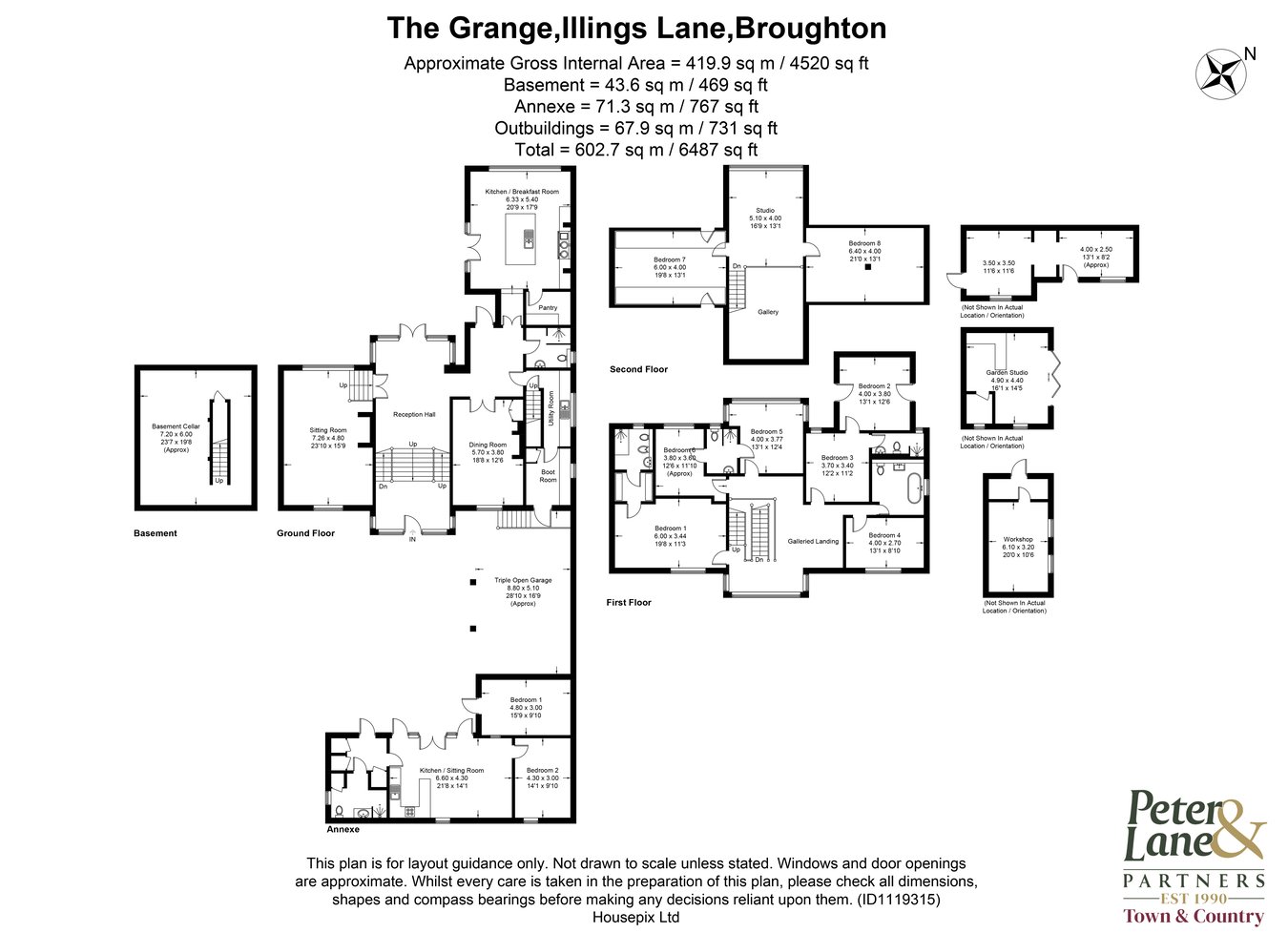 The Grange is an exceptional, individual and substantial family residence offering versatile and impressive accommodation in excess of 6500sq ft. The house offers superb space full of natural light, arranged over four floors with both basement and second floor rooms.The house is centred around an impressive open plan reception hall with bespoke Oak and glass staircase with architectural picture windows to two aspects. Thoughtful design elements throughout ensure the house is flooded in natural light creating a very pleasant ambience to the reception rooms and bedrooms.The bedroom accommodation is flexible in use and could extend to up to eight bedrooms in the main house and two further rooms within the barn conversion. The house could suit a multi generational buyer as there is more than ample space to accommodate a large family or indeed to incorporate some business use too.Outside the overall plot extends close to half an acre and there is a fabulous range of outbuildings and barns with a contemporary garden room fronting the hot tub deck.In addition to the main house there's the added dimension of the annexe and barn conversion which offers an excellent additional income via relatively low frequency Air B&B holiday lets or indeed could provide self contained accommodation for a family member or conventional tenancy.The house must be viewed to fully appreciate the scale and tone of the accommodation. The house is being offered with No forward chain.Heavy Panel Glazed Sealed Unit Front DoorGlazed side panels and full height picture windows toReception HallAn impressive, open plan space with central bespoke staircase with glass balustrade extending to first floor, recessed lighting, coving to ceiling, ceramic tiled flooring, French doors and full height panel windows to garden terrace, twin sets of double doors accessDrawing Room16' 11" x 14' 7" (5.16m x 4.45m)A light double aspect room, arranged over two levels with sealed unit double glazed window to front aspect and picture window to garden aspect, an interestingly arranged split-level accommodation, central brickwork chimney feature with Oak bressumer, tiled hearth with fully functional fireplace, coving to ceiling.Dining Room18' 8" x 12' 4" (5.69m x 3.76m)Sealed unit picture window to front aspect, central brickwork chimney feature with tiled hearth, wall light points, coving to ceiling, drinks cabinet with shelf space, ceramic tiled flooring.Inner Hall13' 2" x 13' 1" (4.01m x 3.99m)Heavy panel Oak door to garden aspect, recessed lighting, coving to ceiling, ceramic tiled flooring, double glazed internal doors acccessKitchen/Breakfast Room26' 7" x 18' 4" (8.10m x 5.59m)11'10" (3.6m) ceiling height, A fabulously proportioned room with vaulted ceiling and exposed 'A' frame timberwork, architectural window and French doors accessing garden terrace, a bespoke range of Shaker style base and wall mounted cabinets with complementing granite work surfaces, central four oven Aga with twin hot plates, integral electric ceramic black hob, a selection of integrated appliances incorporating AEG combination microwave, integrated automatic dishwasher, drawer units, pan drawers, central island work station incorporating one and a half bowl sink unit with mono bloc mixer tap, water softener and filter, integral wine rack, recessed lighting, ceramic tiled flooring.Walk In Pantry8' 0" x 5' 3" (2.44m x 1.60m)Fitted in a range of base and wall mounted units, fixed display shelving, appliance spaces, extractor unit, coving to ceiling, ceramic tiled flooring.Utility Room13' 4" x 8' 2" (4.06m x 2.49m)Fitted in a range of base units with work surfaces and tiling, extractor, recessed lighting, coving to ceiling, double glazed window to garden aspect, drawer units, larder unit, single drainer one and a half bowl stainless steel sink unit with mixer tap, appliance spaces, ceramic tiled flooring.Boot Room10' 2" x 7' 10" (3.10m x 2.39m)Fitted in a bespoke range of base storage, double glazed window to garden aspect, recessed lighting, ceramic tiled flooring, heavy panel Oak door to External Staircase accessing Cart Barn, shelved storage cupboard housing fuse box and master switch.Cellar24' 6" x 19' 8" (7.47m x 5.99m)A versatile space with understairs storage cupboard with lighting, ceramic tiled flooring.Shower Room8' 2" x 7' 1" (2.49m x 2.16m)Fitted in a three piece contemporary white suite comprising low level WC with concealed cistern, wall mounted wash hand basin with mono bloc mixer tap, oversized screened shower enclosure with multi head shower unit fitted over, heated towel rail, full ceramic tiling, recessed lighting, double glazed window to garden aspect, extractor, ceramic tiled flooring.First Floor Landing20' 8" x 19' 3" (6.30m x 5.87m)Glass and Oak balustrade, an impressive landing space with gallery above, full height picture windows to front aspect, stairs extending to second floor, coving to ceiling, recessed lighting.Principal Bedroom19' 5" x 12' 8" (5.92m x 3.86m)Full height sealed unit picture window to front aspect enjoying open field views, recessed lighting, coving to ceiling, wall light points, ceramic tiled flooring.Dressing Room8' 2" x 5' 7" (2.49m x 1.70m)Hanging, storage, shelf unit, ceramic tiled flooring, inner access toPrincipal En Suite Shower Room7' 9" x 6' 6" (2.36m x 1.98m)Fitted in a four piece white suite comprising low level WC with concealed cistern, bidet, vanity wash hand basin with mono bloc mixer tap, cabinet storage, oversized screened shower enclosure with independent shower unit fitted over, picture window to garden aspect, heated towel rail, full ceramic tiling with contour border tiling, ceramic tiled flooring.Guest Bedroom12' 2" x 11' 2" (3.71m x 3.40m)Architectural picture window to garden aspect, coving to ceiling, inner access toGuest En Suite Shower Room9' 9" x 5' 3" (2.97m x 1.60m)Fitted in a three piece range of white sanitaryware comprising low level WC, pedestal wash hand basin with mono bloc mixer tap, shav
