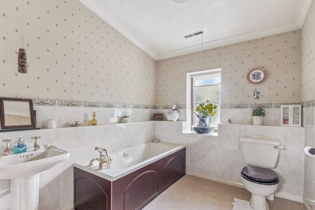 Built by the present owners, this fine village residence has been carefully and sympathetically extended and remodelled over the years to create an imposingly attractive, bespoke family home with a wonderfully spacious and characterful interior, occupying a delightfully secluded position in one of the area’s most sought-after locations.The property provides exceptionally versatile accommodation of undoubted quality that will satisfy the most demanding and discerning home buyer, whether searching for accommodation for their extended family, wonderful entertaining space and facilities for frequent guests, along with ample provision for hobbies and homeworking.The well-planned layout extends to over 5,450 square feet and is appealingly arranged around the welcoming reception hall which features a commanding central hardwood staircase providing access to the basement rooms and first floor galleried landing.Conceived and designed with family in mind, the property features both indoor and outdoor leisure facilities including a snooker room and pool house with heated pool, sauna and shower room.In brief, the supremely adaptable accommodation offers four reception rooms, five bedrooms and five bath/shower rooms, including the generous principal suite with dressing room and full bathroom. The layout also allows for the provision of a separately configured annexe or suite of rooms for a dependent relative with integrated lift access to the first floor.Set back from the road and approached via electric gates, the delightful gardens and grounds extend to around two and a half acres, with extensive garaging and office complex and a variety of useful outbuildings.Ground FloorA glazed entrance vestibule with tiled floor opens onto the generous, welcoming reception hall which reflects the attractive symmetry of the property and provide access to the main areas of accommodation. There are seating areas and a bar, and a superb hardwood central staircase which provides access to the basement office/wine store with tiled floor, boiler house, snooker room with attractive panelled walls, and to the first-floor galleried landing which overlooks the sitting room.Steps lead up from both ends of the hall to the split-level main reception area; the drawing room features brick faced and panelled walls and a feature fireplace with marbled hearth and surround.Ground Floor (Cont'd)Situated to the rear of the property and taking full advantage of the south-facing garden views, the triple-aspect sitting room has a wonderful, vaulted ceiling and a raised fireplace with marble surround and multi-fuel stove, with two sets of bi-folding doors providing access onto the full-width veranda and gardens beyond.Glazed double doors lead from the hall to the spacious formal dining room, and there is a useful study/office, ideal for homeworking, which may be accessed from either the entrance vestibule or the drawing room.A rear hall has a door to the garden and a useful shower room/WC, ideal for when working or entertaining in the garden.(Cont'd)The well-crafted kitchen area with tiled floor features granite counters with a comprehensive range of quality cabinets including dresser-style unit, under-counter mounted sink with mixer tap, combi oven/microwave, granite topped central island with storage cabinets, wine rack and gas (Calor) hob with extractor hood. Recess housing Rayburn stove with pelmet lighting and display shelf and recessed ceiling downlighters. (The Rayburn also serves some radiators on the first floor). An adjacent nook has a hardwood floor and ample space for a breakfast table.From the kitchen, the rear lobby also has a door to the garden and to a useful and practical laundry/utility room.Finally on the ground floor, there is a second entrance vestibule/boot room with tiled floor which would be an ideal separate entrance for the annexe, if required. This gives access to the utility room and also an internal lobby housing the electrically operated lift.First FloorThe galleried landing overlooks the sitting room and has excellent seating/reading space and provides access to the properties five bedrooms, along with the library with its wealth of book shelving and enclosed sunroom.The generously proportioned principal bedroom features a separate bathroom and dressing area with a range of fitted furniture, corner bath, twin washbasins, WC and bidet. There is also walk-in wardrobe.All the four remaining bedrooms are excellent doubles, and two feature either bathroom or shower room en suite. The well-appointed family bathroom provides both bath and separate shower enclosure, washbasin and WC.The passageway between bedroom three and the library houses the lift.Gardens, Grounds, Leisure Facilities And OutbuildingsApproached via electrically operated gates and a sweeping driveway, the property occupies a superior and beautifully private plot approaching two and a half acres with delightfully managed gardens and grounds, extensive parking/turning space, garaging, office and workshop facilities.The gardens are well established and offer extensive areas of lawn bordered by and interspersed with a wealth of mature trees and specimen shrubs, with a fine choice of patios and seating areas, vegetable cultivation and soft fruit areas and wild garden.Four Car Garage Complex And Office/GymGaraging: 11.90m x 6.60m (39’ 1” x 21’ 8”)Electrically operated doors, light and power, cloakroom/WC.Office/Gym: 6.60m x 2.90m (21’ 8” x 9’ 6”)Insulated, light and power, storage cupboard, door to WC and door to outside.Pool House14.00m x 7.80m (45’ 11” X 25’ 7”)With three sets of French doors opening onto the garden.Housing heated and filtered pool and incorporating shower room, sauna and pump room.Outbuildings Etc.Additional Double Garage6.0m x 4.68m (19’ 8” x 14’ 1”)Garden Store4.68m x 4.30m (15’ 4” x 14’ 1 “)Workshop8.30m x 5.60m (27’ 3” x 18’ 4”)Greenhouse5.30m x 2.70m (17’ 5” x 8’ 10”)Sta