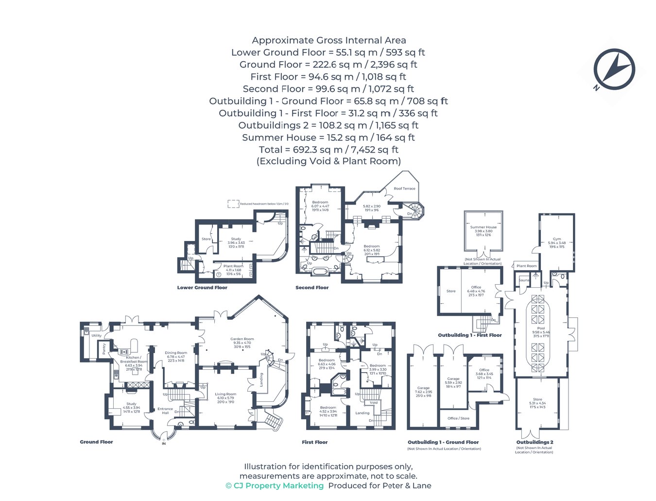One of Brampton's most notable family residences this impressively scaled and beautifully re-configured Victorian home offers an impressive 7000 sq ft of individual and versatile accommodation set within wonderfully private and mature grounds extending to approximately two acres (stms).The property offers five double bedrooms (four en suites) with a boutique principal suite covering the entire upper floor. There is a lovely roof terrace enjoying views across the gardens and numerous other notable elements throughout this wonderful home. The ground floor accommodation is beautifully arranged with generous reception space, study, garden room and interesting additional sub floor accommodation. The kitchen is well appointed with natural stone work surfaces and integrated quality appliances, pantry and adjoining utility room.The house stands in stunning grounds of approximately two acres in all with generous driveways and a lovely selection of outbuildings. There is a fabulous leisure complex with indoor heated pool, gym and sauna. The detached two storey barn offers an amazing office suite with masses of versatile uses. The gardens back onto Brampton Park golf course and offer a great deal of seclusion and privacy.Overall a magnificent Victorian home positioned within one of our most popular local villages. Viewing is essential and by appointment only.Reception HallA beautifully designed open plan space with stairs extending to the first floor, recessed lighting, natural stone tiled flooring, double panel radiator, coving to ceiling, stairs extending to the sub-floor level, wall light points.CloakroomFitted in a two piece white suite comprising low level WC with concealed cistern, vanity wash hand basin with double panel radiator, shelved display recess, port hole window to front aspect, recessed lighting.Study13' 3" x 13' 2" (4.04m x 4.01m)Picture window to front aspect, free standing cast iron radiator, central feature fireplace with tiled hearth and moulded timber surround, a bespoke range of office furniture incorporating desk unit, cabinet storage, fixed display shelving, port hole window to side aspect.Dining Room21' 2" x 14' 5" (6.45m x 4.39m)Full height sealed unit picture window to rear aspect, natural stone tiling, double panel radiator, central marble fireplace with tiled hearth, cabinet storage, glass fronted display cabinets, recessed lighting, open access toKitchen/Breakfast Room22' 5" x 13' 6" (6.83m x 4.11m)Fitted in a range of Cherry wood base and wall mounted Shaker style cabinets with complementing black granite work surfaces and up-stands, marble tiled surrounds, a selection of integrated appliances incorporating both Bosch double and single Bosch ovens, central island work station with granite work surface, corner shelf display unit, space and plumbing for American style fridge freezer, central dividing peninsular unit incorporating four/five stool breakfast bar, drawer units, pan drawers, central five ring hob with integral Wok burner and suspended stainless steel extractor fitted above, walk in shelved pantry, over-lit pelmet, single drainer one and a half bowl stainless steel sink unit with reverse osmosis water filter tap, picture window to side aspect, marble floor tiling, two vertical contemporary radiators, French doors accessing garden terrace to the rear.Laundry Room11' 4" x 9' 5" (3.45m x 2.87m)A triple aspect room with windows to front, side and rear aspects, fitted in a range of base and wall mounted cabinets with work surfaces and marble tiling, single drainer stainless steel sink unit with mixer tap, marble floor tiling, radiator, glazed door to rear garden.Garden Room38' 9" x 31' 0" (11.81m x 9.45m)Part of the architect designed extension, vaulted ceiling, UPVC windows to rear and side aspects, natural stone floor tiling with underfloor heating, wall light points, stone and brushed stainless steel staircase extends to upper floors, central fireplace with inset fully functional fire basket, French doors access garden terrace, electrically operated roof lights, stairs extend down to the sub floor rooms, door to side aspect.Sub Floor Area24' 1" x 13' 1" (7.34m x 3.99m)A light and airy space offering beautifully finished Snug/Office, tiled in natural stone, power, lighting, fireplace recess, leading through toStore/Cellar10' 4" x 6' 7" (3.15m x 2.01m)Double storage cupboards, tiled in natural stone, glazed door through to Reception HallInner HallShelved storage cupboard, coats hanging area.Plant RoomFuse box, master switch, hot water cylinder, finished in natural stone tiling.Sitting Room20' 1" x 17' 9" (6.12m x 5.41m)A triple aspect room with picture windows to front aspect retaining the original window shutters, French doors leading to the external staircase accessing the side garden, internal windows to Garden Room, two radiators, central feature non functional fireplace with moulded timber surround, exposed brick work, cornicing to ceiling with recessed lighting, 3m ceiling height.First Floor LandingWall light points, two picture windows to front aspect, shelved airing cupboard, stairs to second floor, access toBedroom 514' 10" x 11' 11" (4.52m x 3.63m)Picture window to front aspect, double panel radiator, a selection of bedroom furniture incorporating wardrobe range, dressing table, fixed display shelving, cabinet storage, dado rail, wall light points.Family Bathroom11' 11" x 5' 3" (3.63m x 1.60m)Fitted in a three piece white suite comprising low level WC with concealed cistern, vanity wash hand basin with cabinet storage, display shelving, shaver point, recessed lighting, panel bath with hand mixer shower, full natural stone tiling, extractor unit.Bedroom 420' 7" x 13' 2" (6.27m x 4.01m)Picture window to side aspect, sealed unit picture windows to rear aspect and port hole picture window to side, arranged over two levels, storage range with wall mounted cabinets, wardrobe with hanging and storage, underlit display shelving, inner access toEn Suite Shower