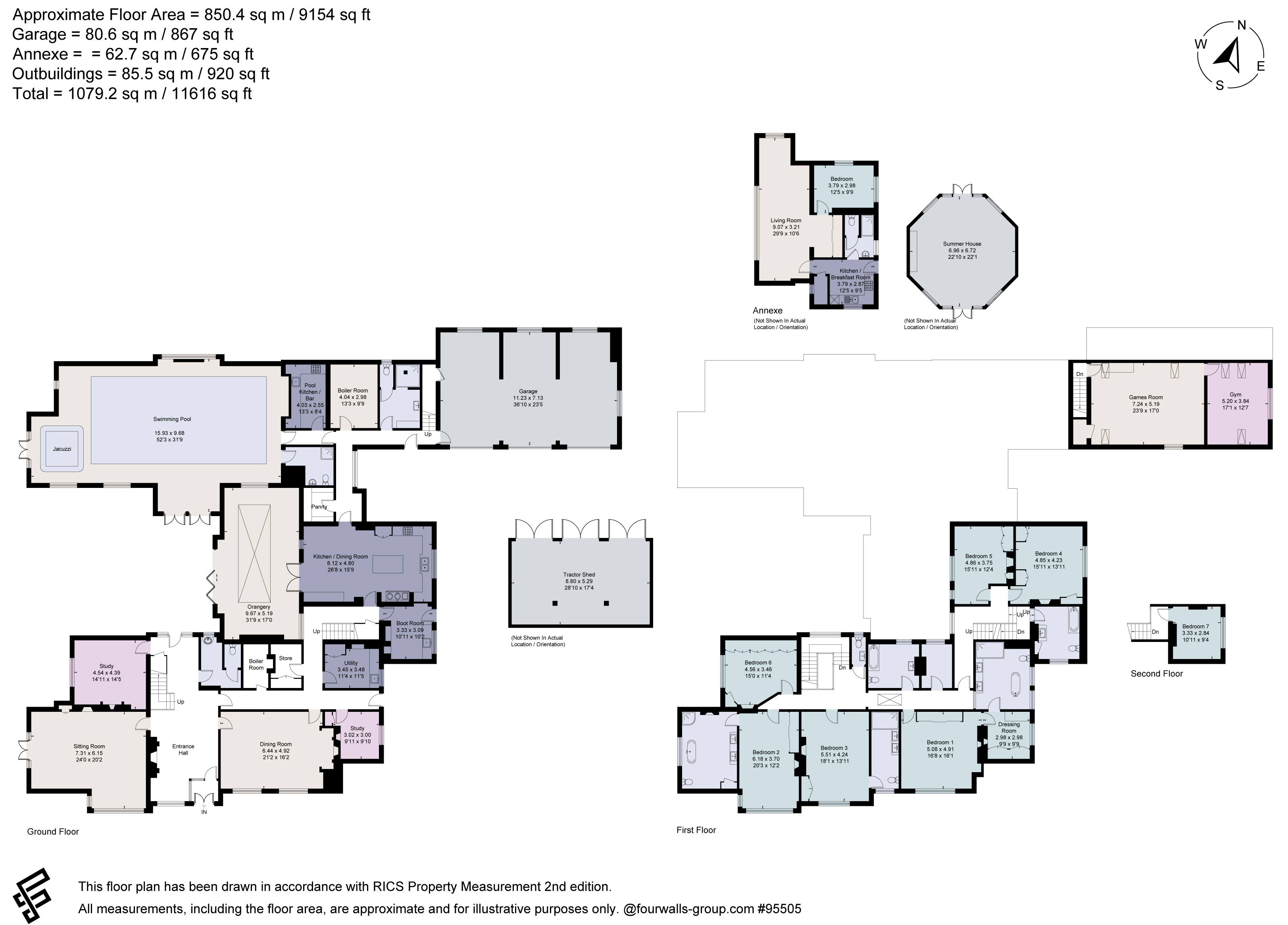 An incredible Edwardian house with indoor swimming pool complex and all weather tennis court.DescriptionSet in a beautifully elevated position in rolling countryside, Offord Hill House is an exceptional Edwardian country residence which offers extensive, versatile living space and a wealth of lifestyle amenities and is situated just under two miles from Godmanchester and twenty miles from Cambridge.This is only the second time that Offord Hill House has been marketed since it was built in 1908, the previous incumbents having undertaken a full refurbishment of the house including reinstalling the chamber bells throughout. The current owners have subsequently further extended and improved both the house and grounds.Set behind electric gates with a winding driveway though a large copse, this handsome property is a gorgeous mix of stone and red brick beneath a peg tiled roof with a castellated tower and has high quality doors and windows throughout. The main house is arranged over three floors, beginning with an elegant reception hall setting the tone for the rest of the home, with a beautiful feature fireplace. To the left of the hall is a formal sitting room with fireplace and access to the outside via French doors. Opposite is a generous, bright and airy dining room also featuring a large fireplace. The kitchen is fitted with an extensive range of wall and floor mounted units, with integrated appliances including an oil fired aga with a central island and a further breakfast area. The kitchen leads through to an impressive orangery which benefits from a large skylight allowing an abundance of light into the room as well as large doors out to the grounds and gardens. From the kitchen there is also access through to the incredible swimming pool room which also features a jacuzzi, a kitchen/bar area and a shower room. Beyond the hall leads round past a high quality plant room to a three door garage with large electric doors.A staircase accesses the first floor to a games room and gym area. The ground floor is completed by two useful studies, a utility room, boot room, and a cloakroom.Upstairs, there is substantial accommodation including six generously sized double bedrooms, including the principal suite which has the added benefit of a dressing room and large en suite bathroom, equipped with twin sinks, a freestanding roll-top bath and a large shower cubicle. Bedroom two and three also benefit from en suites and built in storage. There are a further two bathrooms serving this floor for the remaining bedrooms. The seventh and final bedroom is situated on the second floor.The grounds are a major highlight, extending to 6.5 acres, with beautifully maintained lawns, mature trees and hedging offering a high degree of privacy. A large terrace extends from the house and offers a great space for outdoor dining and entertaining. There is a separate annexe which includes a large living room, kitchenette, shower room and a bedroom, which could be used as a home office or further accommodation if required. Within the grounds there is a modern, beautiful summer house with far reaching views which offers a great entertaining space all year round and sits perfectly next to the astro turf weather tennis court.LocationOfford Hill House is situated just under two miles from Godmanchester and 20 miles from the historic University city of Cambridge. Godmanchester offers a variety of amenities including shops, various pubs and restaurants, and the great River Ouse running alongside it. There is also a recreation ground and football club providing space for outdoor activities.For schooling, the property is in catchment for Godmanchester Bridge Academy and St Anne’s CofE primary school, and Hinchingbrooke School. There are also further reputable independent schools in the area including Kimbolton School, and a variety in Cambridge including The Perse, The Leys to name a few.Huntingdon Railway station is 4.1 miles away from the property and provides regular services into London Kings Cross. Huntingdon itself also has further shopping and recreational facilities on offer.Godmanchester is well placed for the A14 which in turn grants access to the A1 and the M11 to the south towards London and Stansted Airport.All distances and times are approximate.Square Footage: 9,154 sq ft