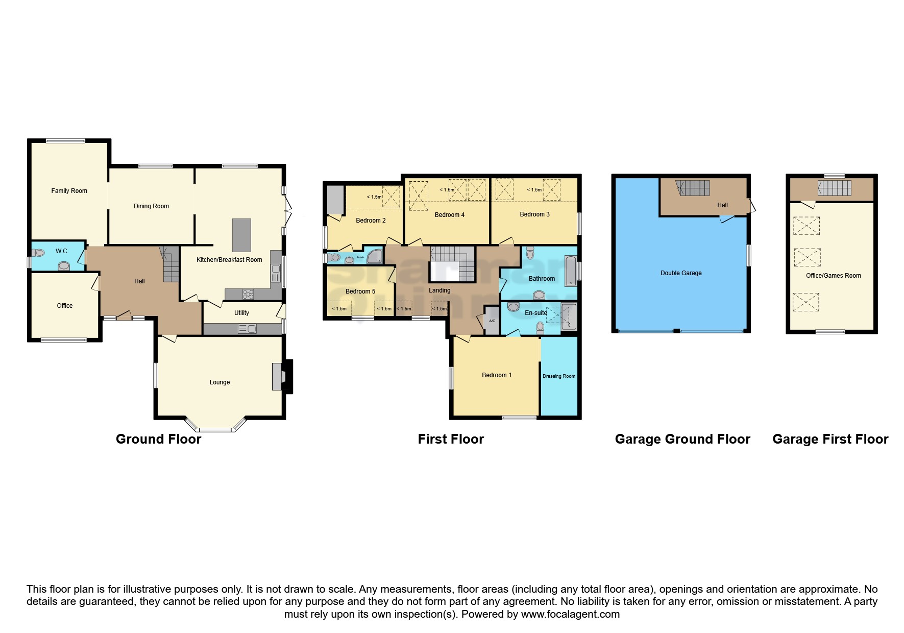 SummaryGuide Price £550,000 - £575,000. This gorgeous family home is situated behind a private gated driveway in a peaceful village. Offering plenty of accommodation including a 22ft kitchen, perfect for entertaining, as well as a master bedroom with ensuite and dressing room! And a room above the garage!DescriptionPorchBrick built with canopy and light.Entrance HallLaminate floor. Radiator. Stairs leading off.W. CWindow to side. Low level wc. Tiled floor. Heated towel rail. Wash hand basin.Lounge 21' 5" x 13' 7" ( 6.53m x 4.14m )Bay window to front. Window to side. TV point. Telephone point. Laminate flooring. Wood burner with wood mantel, brick surround and tiled hearth.Dining Room 16' 1" x 12' 11" ( 4.90m x 3.94m )Window to rear. Radiator. Laminate flooring.Family Room 14' 6" x 12' 11" ( 4.42m x 3.94m )Window to rear. Radiator. Laminate flooring.Office 11' 7" x 11' 4" ( 3.53m x 3.45m )Window to front. Radiator. TV point.Kitchen / Breakfast Room 22' 9" into recess x 17' 5" ( 6.93m into recess x 5.31m )Windows to rear and side. Patio doors to side. Tiled flooring. Range of wall and base units. Electric RangeMaster oven with grill and cooker hood above. Singe drainer sink with mixer taps. Two radiators. Kitchen island with integrated wine cooler and storage. Integrated dishwasher.Utility Room 14' 3" x 5' 8" ( 4.34m x 1.73m )Tiled floor. Single drainer sink with mixer taps. Space for appliances. Boiler.Stairs To First Floor LandingSpacious landing with dormer window to front. Radiator. Telephone point. Airing cupboard housing hot water tank.Bedroom One 14' 11" x 13' 7" ( 4.55m x 4.14m )Dormer window to side. Window to front. Laminate floor. TV point. Radiator.Walk in wardrobe (13ft 8ins x 6ft3ins) Laminate floor. Radiator. Spotlights.En SuiteSkylight window. Tiled floor. Double shower cubicle with mixer taps. Heated towel rail. Low level wc. Shaver point. Extractor fan. Wash hand basin.Bedroom Two 14' 7" x 11' 5" ( 4.45m x 3.48m )Three skylights windows. Laminate floor. Loft access. Radiator. (sloped ceilings)En SuiteWindow to side. Low level wc. Pedestal wash hand basin. Tiled floor. Shower cubicle. Shaver point.Bedroom Three 12' 11" x 10' 5" ( 3.94m x 3.17m )Skylight window. Window to side. Laminate floor. Wardrobes. (sloped ceilings)Bedroom Four 15' x 11' 4" ( 4.57m x 3.45m )Two skylight windows to rear. Window to side. Radiator. Laminate floor.Bedroom Five 11' 8" x 8' 11" ( 3.56m x 2.72m )Window to front. Radiator. Laminate floor (sloped ceiling)BathroomWindow to side. Tiled floor. Low level wc. Heated towel rail. Ceramic free standing bath with mixer taps. Vanity wash hand basin. Shaver point. Extractor fan.OutsideTo the front of the property you will find private gates into drive for off road parking and leading to double garage. Oil tank.Rear garden has side access. Patio area. Mainly laid to grass with trees bordering. Canopy seating area. Outside lighting. Outside tap. Chicken coop to rear.Double Garage 26' 4" x 22' 11" ( 8.03m x 6.99m )Double up and over door shutter doors. Power and lighting.Lobby to rear (11ft 7ins x 6ft 9ins) Stair to upper floor.Upstairs Room (21ft 8ins x 14ft 3ins) Window to front. Three skylights to side. Power and lighting.1. Money laundering regulations: Intending purchasers will be asked to produce identification documentation at a later stage and we would ask for your co-operation in order that there will be no delay in agreeing the sale.