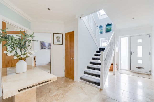 SummaryA magnificent five bedroom county house set within the heart of Old Lisvane within a select and exclusive gated close of just three houses and providing 3540 square feet with stunning totally private and very tranquil gardens and parking for five cars. Two generation living options, no chain!DescriptionA truly unique capacious detached five bedroom double fronted family residence, built in 1986, extensively modernised and improved in 2021, and occupying a magnificent position, fronting a private and gated close, comprising just three detached houses, tucked away in the corner, yet well placed conveniently off a private road approached from Mill Road Lisvane. This very impressive family home provides comfortable living space for a large growing family, with the options for second generation living needs, providing a powerful 3540 square feet of very versatile accommodation. The truly beautiful, manicured surrounding gardens enjoy a rare sense of both peace and privacy, and the large generous private parking provides space for four-five card plus a detached garage. This stunning modern home, is constructed with brilliant white alpine rendered external elevations, inset with white PVC double glazed windows, all beneath a new slate pitched roof, completed in 2021. The stylish and contemporary living space comprises two exceptional open plan living areas, including a Lounge/Dining Room/Family Room 34' 8" x 26' 4", a Games Room 19' 7" x 18', a Snug 12' 8" x 11', a down stairs cloak room with a stylish modern suite, a super-sized utility room 16' 7" x 7' 3", a generous boot room 22' 4" x 6' 6", a stunning well fitted modern contemporary fully fitted kitchen and breakfast room 18' 2" x 14', and a magnificent Entrance Reception Hall 16' x 13'.The PropertyThe property includes gas heating with a modern gas boiler 2019, impressive solid oaks floors, stylish internal doors, high gloss units within the kitchen breakfast room, and within the lounge, dining room and family room there is versatile modern living space, perfect for a contemporary family with departmentalised living areas for both a large dining table and eight chairs, a further lounge with space for multiple sofas, and an additional family area with space for full size three seater sofas and a contemporary log burner with stone fireplace. Sliding PVC double glazed patio doors open on to a very private and beautifully landscaped sun terrace with stylish patio and under cover outdoor kitchen with split faced stone borders and granite worktops and space for a barbecue. Throughout this living area there are elegant cornice ceilings, six velux double glazed windows providing an abundance of natural light, further matching PVC double glazed sliding patio doors with side screen windows that overlook and open on to the very private rear gardens, a further PVC double glazed window with a rear garden outlook, and four large double radiators. The flooring is partly carpeted within the family area the remaining is finished in stunning solid oak and this amazing open plan living space has independent access to both the kitchen and the entrance hall via contemporary pine panel doors.The first floor comprises a bright and airy central landing with access to five generous double sized bedrooms, and two superb bathrooms are finished to a high specification (Roca and Villeroy Boch) fittings, one being en-suite to the master bedroom.A superb residence is an exceptional location. Must be seen!Entrance Reception Hall 16' x 13' ( 4.88m x 3.96m )Approached via a composite double glazed contemporary style front entrance door with an obscure glass PVC double glazed side screen window with an additional clear glass matching window to front, limestone tiled flooring throughout, high cornice ceiling with spotlights, wide carpeted open tread spindle balustrade returning staircase with half landing, main landing and large velux double glazed window providing an abundance of natural light, radiator. Under stair cloaks hanging cupboard.Downstairs CloakroomModern Roca suite in white comprising shaped mounted wash hand basin with chrome mixer taps, pop-up waste and granite surround with splashback, full height mirrors, vanity unit, horizontal contemporary radiator, slim line W.C., limestone tiled floor, porcelain tiled walls, PVC double glazed obscure glass window with granite window sill, high ceiling with spotlights.Snug 12' 8" x 11' ( 3.86m x 3.35m )Approached from the entrance hall via a glass panelled pine panel door leading to a very versatile reception room perfect as a snug or home office, with stylish flooring, double radiator, high coved ceiling and a large box bay window with PVC double glazed units with outlooks on to the private frontage gardens.Lounge/Dining Room/Family Room 34' 8" x 26' 4" ( 10.57m x 8.03m )A truly capacious and versatile modern living space perfect for a contemporary family with departmentalised living spaces for both a large dining table and eight chairs, a further lounge with space for multiple sofas, and an additional family area with space for full size three seater sofas and a contemporary log burner with stone fireplace. Sliding PVC double glazed patio doors open on to a very private and beautifully landscaped sun terrace with stylish patio and under cover outdoor kitchen with split faced stone borders and granite worktops and space for a barbecue. Throughout this living area there are elegant cornice ceilings, six velux double glazed windows providing an abundance of natural light, further matching PVC double glazed sliding patio doors with side screen windows that overlook and open on to the very private rear gardens, a further PVC double glazed window with a rear garden outlook, and four large double radiators. The flooring is partly carpeted within the family area the remaining is finished in stunning solid oak and this amazing open plan living space has independent access to both the kitchen and the entrance hall via cont