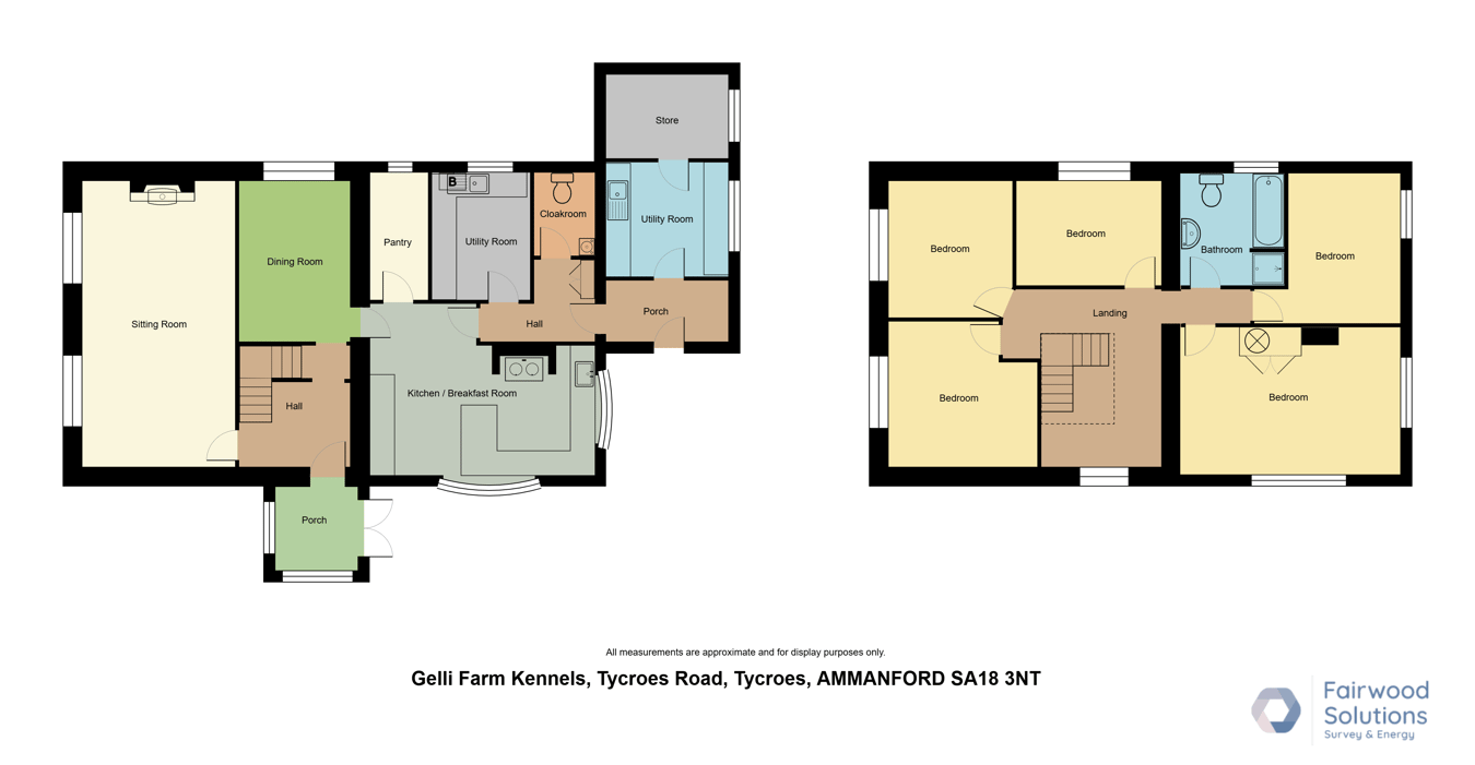 A successful kennels and cattery business with an excellent range of accommodation buildings and main house, which has been operating over the last 40 year situated on the periphery of the village of Tycroes, Carmarthenshire, within 4 miles of the M4 at Junction 49 (Pont Abraham).OverviewAn excellent opportunity to acquire a well-maintained 10.26 acre (approx.) smallholding set in a private, yet convenient location, with the added benefit of a successful turn-key dog kennels and cattery business generating strong and consistent monthly revenues, providing reliable income potential, with scope to further expand the business and diversify.Gelli Farm Kennels and Cattery was established over 40 years ago and has grown and developed since the current owners took over the business some 4 years ago. The business enjoys a loyal client base and an enviable reputation for high standards of care, whilst being set in a pleasant accessible rural location, providing both a comfortable home and a successful business with scope for further growth.The vendors are now looking to sell due to a changes in lifestyle and offers an excellent opportunity for a new incomer to take over the business to continue its success and strong reputation.SituationGelli lies in a semi-rural setting on the periphery of the village of Tycroes, Carmarthenshire, with commanding views over the surrounding countryside and Betws mountain. The village of Tycroes offers a range of local amenities and services to include primary school, Post Office, convenience store, florist, takeaway outlets, medical centre, pharmacy and regular bus services.The town of Ammanford lies 2 miles to the east providing a further comprehensive range of services and national retailers plus a train station on the Heart of Wales line. The M4 at Junction 49 can be reached within 3.5 miles to the south, providing excellent links along the M4 corridor with Swansea City Centre being within 15 miles (25 minutes) and the capital city of Cardiff within approx. 55 miles (1 hour).FarmhouseThe 5-bedroom detached farmhouse dates back to the 1800’s retains many original character features and has been tastefully decorated in recent years, offering flexible living accommodation on both the ground and first floor. There is further potential to convert the attic space into further accommodation, subject to obtaining the necessary planning consents. Accommodation is as follows:Front Porch2.33m x 2.08m (7' 8" x 6' 10")Entrance Hallway3.36m x 2.89m (11' 0" x 9' 6")Living Room6.83m x 3.64m (22' 5" x 11' 11")Dining Room3.66m x 2.87m (12' 0" x 9' 5")Pantry1.21m x 2.83m (4' 0" x 9' 3")Kitchen - Breakfast Room5.14m x 4.64m (16' 10" x 15' 3")Utility Room2.38m x 2.84m (7' 10" x 9' 4")Downstairs WC1.89m x 2.39m (6' 2" x 7' 10")Side Entrance1.36m x 2.92m (4' 6" x 9' 7")Dog Room2.84m x 2.91m (9' 4" x 9' 7")Dog Kennel2.94m x 1.99m (9' 8" x 6' 6")Bedroom 13.59m x 3.59m (11' 9" x 11' 9")Bedroom 23.44m x 3.27m (11' 3" x 10' 9")Bedroom 32.54m x 3.29m (8' 4" x 10' 10")Family Bathroom2.21m x 2.77m (7' 3" x 9' 1")Bedroom 43.82m x 2.76m (12' 6" x 9' 1")Bedroom 5 (Principal / Master)5.21m x 3.58m (17' 1" x 11' 9")Grounds & GardensThe property is approached via Gelli Lane, a shared single track lane into the homestead via a gated entrances with ample parking area for multiple vehicles on gravel and concreted areas, whilst the access lane continues through to the traditional stone outbuildings, stable block and land to the front.The farmhouse itself benefits from landscaped grounds which surround on the front, side and rear, with several patio / seating areas, ideal for socialising and entertaining space overlooking the grounds, surrounding farmland and far distance views. The grounds are landscaped with a range of flower beds, shrubs and bushes, bordered by hedgerows and timber fencing.Kennel And Cattery BuildingsThe property benefits from an extensive range of outbuildings which have been renovated and modernised over the years to include a purpose-built kennels housing 34 kennels and runs in two separate buildings, and cattery facilities with 25 pens, also in two separate buildings, with isolation buildings.The site is fully licensed for boarding of up to 66 dogs and 55 cats and the buildings have been finished to the highest of standard in compliance with latest regulations.Dog KennelsBuilt of a concrete block construction under a mono pitched box profile sheeted roof with PVC walled runs under a sheeted roof. Detailed measurements available by request.CatteryBuilt of a concrete block construction under a mono pitched box profile sheeted roof with PVC walled enclosures under a PVC sheeted roof. Detailed measurements available by request.Cattery Kitchen 3.98m x 4.34m (13' 1" x 14' 3")Gelli Reception2.82m x 4.16m (9' 3" x 13' 8")Former Groom Room / Store4.13m x 3.94m (13' 7" x 12' 11")OutbuildingsA further range of outbuildings include an isolation pen for both kennel and cattery, a reception office and storage buildings. A two-storey traditional stone former cowshed currently used for storage / office area, and a former cart house utilised as an isolation kennels and attached garage / wood store benefit from conversion potential, subject to obtaining the necessary planning consents. A modern stable block consisting of two loose boxes (stables) is also finished to a very high standard.Traditional Stone Outbuilding - Former Cowshed (Storage)Built of a traditional stone construction under a pitched slate roofFormer Cowshed / Dairy: 4.75m x 3.67m (15' 7" x 12' 0") & 4.75m x 5.36m (15' 7" x 17' 7")Office / Store: 4.76m x 4.11m (15' 7" x 13' 6")Store: 4.41m x 5.67m (14' 6" x 18' 7")Store: 5.0m x 4.4m (16' 5" x 14' 5")Workshop: 4.32m x 7.29m (14' 2" x 23' 11")Former hayloft above (Man cave): 4.43m x 10.67m (14' 6" x 35' 0")Rear store: 3m x 6.65m (9' 10" x 21' 10") restricted head height.StablesBuilt of a concrete block and brick construction under a pitched slate roof.Stables measuring 4.94m x 3.69