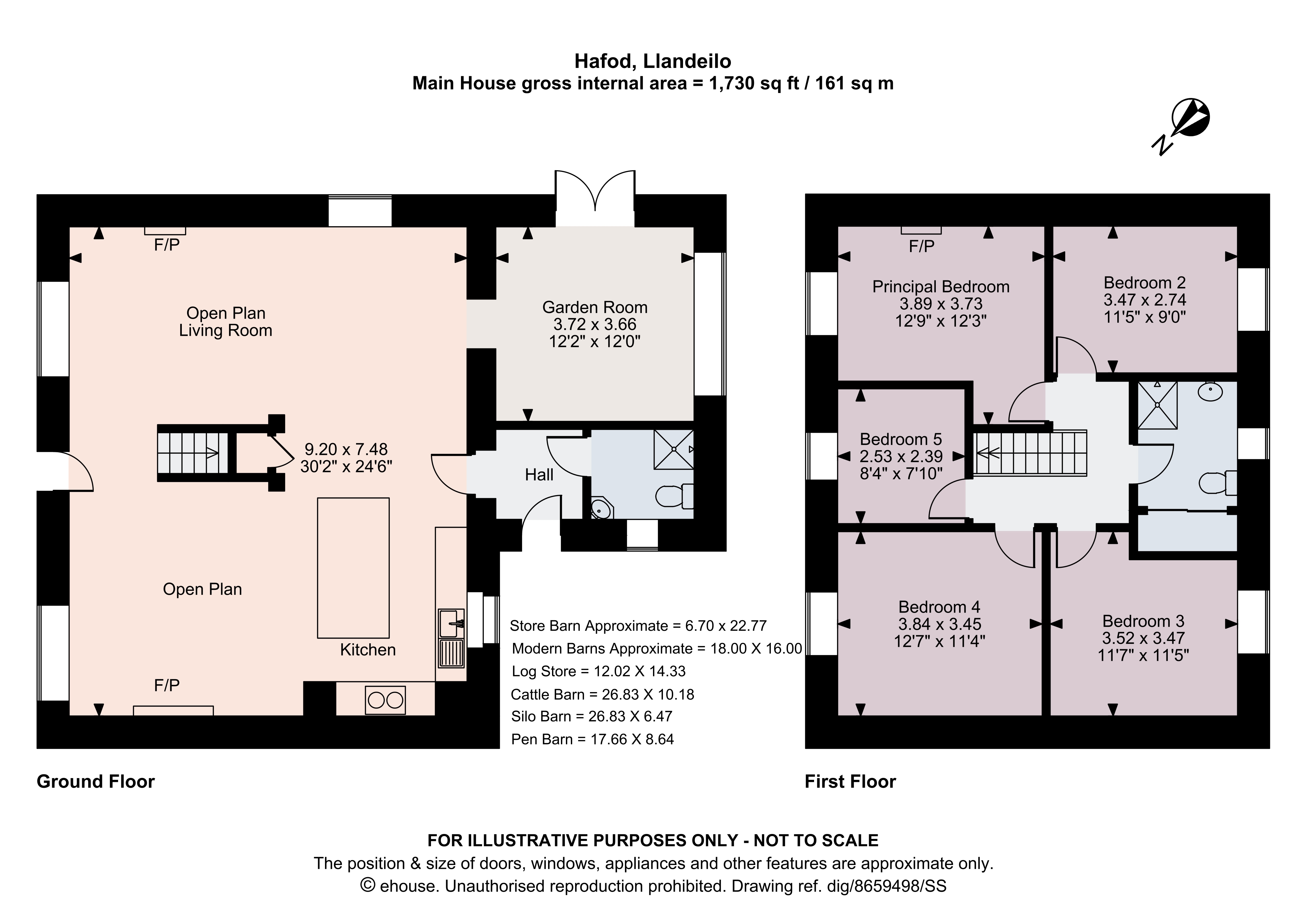 Idyllic farm with a strong residential appeal. Enjoying far reaching views over the stunning River Towy Valley and nearby Llandeilo. In all, extending to about 149 acres.DescriptionHafod is an attractive and traditional livestock farm set in an idyllic and elevated position overlooking the River Towy valley. The farm is within the famous Bannau Brycheiniog (Brecon Beacons) National Park but at the same time is very convenient to the popular shopping town of Llandeilo that is only about four miles to its centre. The farm has a strong residential appeal with an attractive farmhouse (thought to date c1850s) that has been completely renovated and refurbished to provide a comfortable family home combining character features with modern comforts. The farm is currently run as a livestock farm (beef and sheep) and offers new owners to carry on this vein while also possibly exploring other diversification avenues e.g. Holiday cottages, camping/glamping etc (stp – subject to planning). We have been informed by the owners that the coach house and adjoining stone barn have extant planning permission to convert into two, two bedroom holiday cottages for rental.Accommodation Ground FloorThe front entrance leads into a large open plan kitchen living dining room, that takes up the whole of the ground floor space. The room features stone fireplaces at either end of the room with wood burning stoves providing warm focal points, character exposed floorboards, oak beams and flagstone floors. These rooms provide two living areas that are divided by an impressive oak staircase. At the rear of the room is the kitchen dining room with a smart fitted kitchen, worktops, breakfast bar, integrated appliances and a smart red Rayburn cooking range. A door leads off to a rear hall with door to outside and a shower room off. Another door leads to a new garden room/study extension that provides a peaceful room to retreat to overlooking the gardens and grounds.First FloorThe fine oak staircase rises up from the ground floor open plan room to the first floor accommodation. The first floor includes five bedrooms, (four large rooms and one smaller). Three rooms overlook the front of the house and valley while the remaining two overlook the rear gardens and beyond. Thes bedrooms share the use of a shower room.ExternallyThe farmhouse enjoys a pretty walled garden patio area to the front, perfect for alfresco dining while enjoying the views. To the rear if the house are landscaped gardens with lawned areas. The farm is approached by a smart tarmacadam drive that leads down to the traditional farm courtyard.The OutbuildingsAround the farm courtyard are a collection of barns comprising a striking stone barn range with an old double coach house. We have been informed by the owners that the coach house and adjoining stone barn have extant planning permission to convert into two, two bedroom holiday cottages for holiday rental. In addition, there are three large modern outbuildings that were constructed for the keeping of livestock, storage of feed and machinery but serve a variety of useful purposes including workshops etc.The LandThe farm extends to about 149 acres (about 148.90 acres) that circles around the farmstead. The land is divided up into manageable enclosures for livestock and machinery and comprises productive farmland for grazing and silage/hay making, parcels of amenity land and pockets of mature woodland. Parts of the woodland are designated ancient woodland.LocationThe farm enjoys an idyllic rural location in the famous Bannau Brycheiniog (Brecon Beacons) National Park but at the same time is very convenient to the popular shopping town of Llandeilo that is only about four miles to its centre with shops, restaurants, pubs, schools and train station.For those that enjoy the outdoors, the National Park provides the perfect backdrop while the dramatic Towy valley with the river and castles, adding even further stunning visual landmarks.Good road connections provide quick access to neighbouring towns and south Wales (Llandovery about 13 miles, Carmarthen about 18 miles, Swansea about 24 miles and Cardiff about 67 miles) the Severn Bridge and into England (about 88 miles).Square Footage: 1,730 sq ftAcreage:149 AcresAdditional InfoGeneral Remarks and StipulationsMethod of SaleOffered for sale by private treaty as a whole. The vendors may consider selling the farm with less land by negotiation.Tenure and PossessionThe tenure of the property is freehold. About 120-130 acres are currently let out on an annual tenancy ending in March 2026.ServicesSpring water supply. Mains electricity. Private drainage (septic tank). Oil central heating.Local AuthorityCarmarthenshire. Council Tax Band D.DesignationsThe farm is set within the Bannau Brycheiniog (Brecon Beacons) National Park. There are some small areas that are designated Ancient Woodland.Energy Performance CertificateRating D.Basic Payment Scheme (bps)The land is registered for the Basic Payment Scheme and the Entitlements are included in the sale. The Vendor will make reasonable endeavours to transfer the relevant Entitlements to the Purchaser(s) after completion of the sale. Further details are available from the selling agents.Agri-Environment SchemesThe Farm is not entered into any Schemes.Sporting, mineral and timber rightsSporting, mineral and timber rights over the land, so far as they are owned are included in the freehold sale.Ingoing ValuationIf applicable, in addition to the purchase price the Purchaser(s) will take over and pay for all growing crops, cultivations and stocks and stores (e.g., feeding stuffs, hay, straw, fuels, oils etc) at valuation. Payment is to be made upon completion at the figure assessed by the Vendors’ value based upon caav rates or contractors’ rates where applicable and invoiced costs of stocks, stores, seed, fertiliser and sprays applied.Fittings & ContentsUnless specifically described in these particulars, all fittings and content