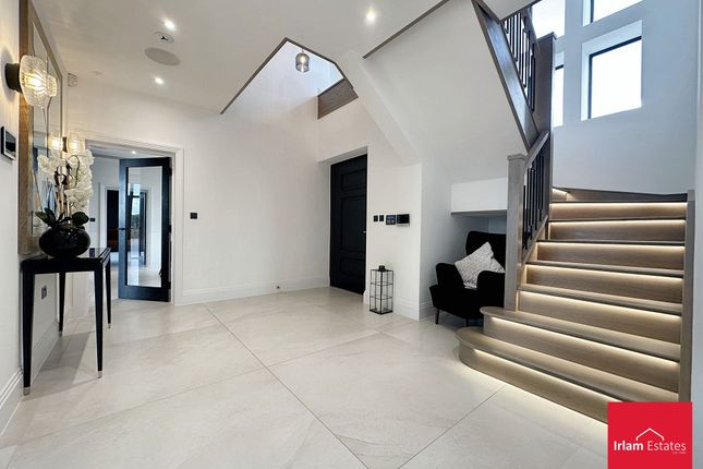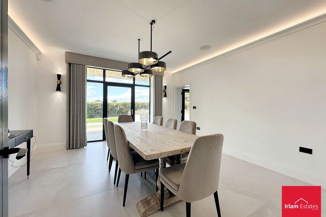 Occupying a privileged position in the Cheshire countryside, Cherry Nurseries House offers a rare blend of luxurious living, privacy, and convenience. Situated on Kay Lane, just moments from Lymm village and within easy reach of Altrincham, the property enjoys approximately 9 acres of grounds and includes a detached barn with full planning permission for conversion to a three-bedroom dwelling (circa 2,300 sq ft).From the moment you step through the grand entrance hall, it’s clear this is a home of scale and quality. Leading off the hallway is a study, a guest W.C., and access to the principal reception areas.The formal lounge is a welcoming space with a feature log burner, integrated media wall, and French doors opening directly to the garden, ideal for both quiet evenings and entertaining. Across the hallway, a dining room flows into the impressive kitchen/diner – the true heart of the home. Here you’ll find a Bora induction hob, two double ovens, Calacatta marble worktops, an integrated dishwasher, and a Quooker boiling water tapJust off the kitchen is the bar room, perfect for hosting, complete with a second media wall and dishwasher From here, a utility room houses integrated washer/dryer units and provides access to the garage Above the garage, accessed via an internal staircase, is a fully equipped gymUpstairs, the first floor features four double bedrooms:The main suite boasts fitted robes, a coffee station, dressing area, ensuite bathroom, and access to a private balcony overlooking the grounds.The second bedroom also benefits from an ensuite, fitted robes, and balcony access.Bedrooms four and five both include fitted wardrobes and share a well-appointed family bathroom.On the second floor, a large third bedroom includes a bespoke shoe wall, dressing room, and ensuite. Completing this level is a dedicated cinema room, which could equally serve as an additional bedroom or multi-purpose space.Additional features include:Underfloor heating throughout the ground floorA state-of-the-art AV system, enabling control of lighting, audio, and media via smartphoneExtensive gardens, lawns, and open land totaling approximately 9 acresAir Con units aslo fitted in the Cinema room, Gym and 3rd BedroomThe detached barn on the grounds already benefits from full planning permission for conversion into a three-bedroom, circa 2,300 sq ft home — perfect for multi-generational living, guest accommodation, or potential investment.Situated in a peaceful, semi-rural setting, the property is ideally located just a short drive from Lymm village and Altrincham, with easy access to motorway links and excellent local schooling. Nearby countryside walks and bridleways further enhance the lifestyle on offer.EPC Rating: CLounge (5.09m x 4.59m)Dining Room (4.46m x 4.12m)Study (4.46m x 3.29m)Kitchen/Dining Room (11.38m x 4.31m)Bar (6.25m x 4.60m)Utility Room (4.69m x 3.78m)Gym (6.07m x 5.03m)Bedroom 1/Dresser/Ensuite (5.38m x 4.32m)Bedroom 2 (6.00m x 4.24m)Bedroom 3 (9.99m x 3.97m)Bedroom 4 (4.46m x 3.00m)Bedroom 5 (3.82m x 3.75m)Cinema Room (9.30m x 3.97m)Bathroom (3.04m x 2.12m)Garage (8.90m x 5.45m)