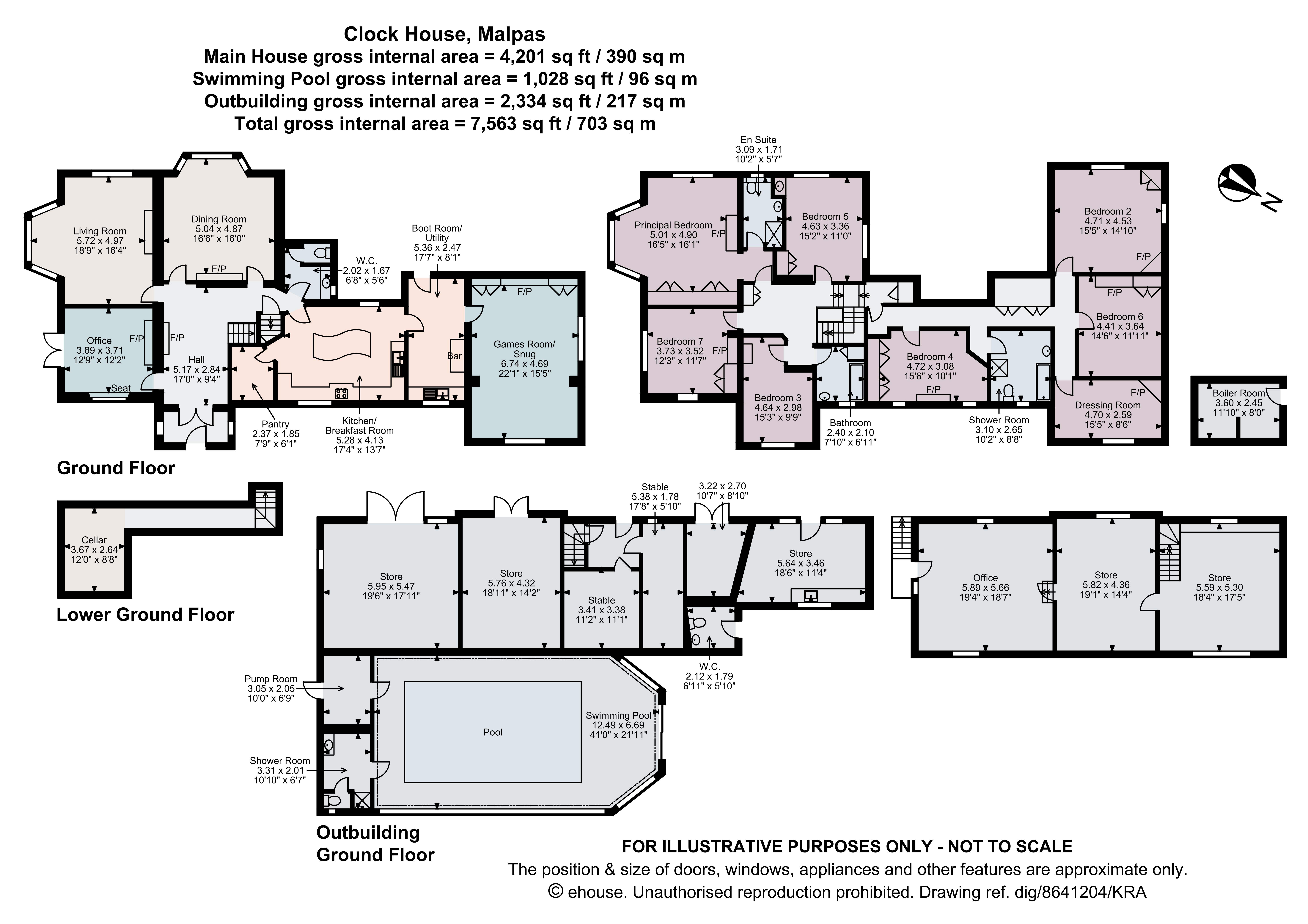An impressive Victorian house with adjoining early 19th Century carriage house in delightful gardens and grounds with the option of additional landDescriptionThe Clock House is a substantial and impressive family house which has been carefully maintained by the current owners. It stands in lovely, private gardens and grounds, with a pond as a centre piece and is accessed via two drives, with the long ‘Malpas’ drive bisecting open fields which are available in addition.The front door opens into a reception hall with ornamental part-stained glassed windows and door, a stone fireplace, part wood panelled walls and original wooden staircase. It serves the main reception rooms, being an elegant drawing room with a substantial bay window and views over the garden, a dining room and study with French doors opening onto the garden. The contemporary Mark Wilkinson family kitchen lies at the heart of the house and has an excellent range of storage units, integrated appliances and an island unit and links to a pantry and utility/boot room. Beyond is a games room/sitting room and a cloakroom completes the ground floor accommodation. On the first floor is an impressive principal bedroom with ensuite bathroom, a guest suite, five further bedrooms and a family bathroom. Overall, it is an excellent family house, brimming with charm and character.The beautiful 18th century Carriage House is Grade II Listed and is currently arranged as garaging, storage, stabling and a gardener’s WC with hobby and office space above. A roof turret sits on top of the structure housing a clock believed to have been manufactured by renowned clock makers jb Joyce. An application to Cheshire West and Chester Council was approved on 8 February 2017 under reference no. 16/02258/ful and consent exists for the Carriage House's conversion into a four-bedroom dwelling, offering a range of options for the purchaser. Attached at the rear is steel portal structure housing a swimming pool.The land (available in addition)Plot 1 at 2.32 acresPlot 2 at 8.61 acresThe land comprises two fields with a combined area of 10.93 acres with access from the start of the ‘Malpas’ drive. They offer level or gently undulating pasture for the grazing of livestock and are bounded by horse proof fencing. Each enclosure has a water supply and the larger field a recently constructed timber field shelter.LocationMalpas 2 milesChester 15 milesWrexham 13 milesCrewe Station 20 milesManchester Airport 44 milesLocationThe Clock House is situated in Hampton Heath just outside Malpas, a prominent south Cheshire village in some of the most attractive countryside in the region.Malpas offers an excellent range of day-to-day services and access via the A41 to Chester and the motorway network linking to the cities of Liverpool and Manchester. It is only 20 miles from Crewe and a regular rail service to London Euston (from 1 hour 34 minutes).Malpas is a picturesque English country village, recorded in the Doomsday Book, with a fine gothic church (St Oswalds) and buildings in a mixture of architectural styles. It has a good range of independent shops along with pubs (notably the recently refurbished Lion), restaurants, a coffee shop and anexcellent doctors surgery and pharmacy.Alport School is a Malpas based primary school and Heber High is a popular secondary school situated on the outskirts of the village. There are well-regarded independent schools within daily reach including King’s and Queen’s schools in Chester, Abbey Gate College, Ellesmere College, Moreton Hall and Packwood Haugh Preparatory School.The City of Chester (15 miles) is one of the north west’s leading retail and commercial centres serving a catchment area extending from Manchester to Shrewsbury and covering the whole of North Wales.The leisure opportunities are also excellent. Carden Park, about 6 miles away, has two championship golf courses (one designed by Jack Nicklaus) a golf academy, an hotel and an excellent health and fitness club. Malpas is also in the heart of Wynnstay hunting country and there are opportunities for shooting and game fishing in the locality. There are also numerous walks in the area and polo at the Cheshire Polo Ground.Square Footage: 4,201 sq ftAcreage:2.54 Acres