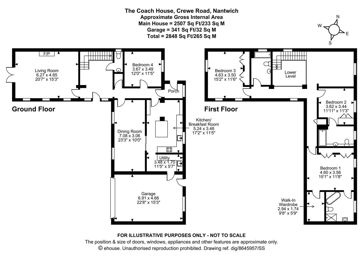A graceful georgian style detached house with A south west facing walled garden, .70 of A mile from nantwich town centre.A graceful georgian style detached house with A south west facing walled garden, .70 of A mile from nantwich town centre.SummaryReception Hall, Cloakroom, Drawing Room, Dining Room, Kitchen/Breakfast Room, Utility Room, Bedroom No. 4/Study, Rear Porch, Galleried Landing, Sitting Area, Principle Bedroom with Ensuite Bathroom and Dressing Room, Bedroom No. 2 with Ensuite Bathroom, Inner Landing, Bedroom No. 3, Bathroom, Integral Garage, Gas Underfloor Heating, Solar Panels, Double Glazed Windows, Car Parking Space, Gardens.DescriptionThe Coach House was built by Wilton Construction of brick under a slate roof and is approached over a sweeping shared (with Whitewell House) tarmacadam drive leading to its own York stone flagged entrance drive. The house was built in 1992 by our clients family for their own enjoyment and use. Accordingly, the house was designed, constructed and finished to a specification far beyond the norm and in addition, the landscaping works were completed with long term enjoyment in mind. The Coach House was built in the grounds of Whitewell House, an early 19th Century, grade II listed, building. Whitewell House, owned by our clients, has been used as offices since the 1970's.Internally the house has a stylish design that combines light and elegance with practicality and style. The house extends to about 2,500 square feet (gross internal) plus the integral garage (340 square feet). The amount of natural light, together with the direct access to the gardens from the house on the ground floor makes for a superb combination.The gardens enjoy privacy whilst minimising maintenance. There are York stone flagged seating areas to the West and East for alfresco dining.Location & AmenitiesThe Coach House lies on the Eastern confines of Nantwich about .70 of a mile from the town centre. Nantwich is a charming market town in Cheshire, set beside the river Weaver with a Medieval street pattern. The town, renowned for its history in the salt and tanning industry, today contains an excellent range of urban facilities which combine with a number of interesting buildings to provide a most pleasing living and working environment. Nantwich is a popular and prosperous town hosting a range of bars, restaurants and cafes with renowned delicatessens and butchers, all sitting comfortably along side national retail outlets.The A51 and Nantwich bypass provides swift access to the M6 North and South, whilst Chester and Stoke on Trent can be reached in just 30 minutes each, by car. Manchester airport is about a 45 minute drive.Approximate Distances:Crewe 4 milesM6 Motorway (junction 16) 11 milesThe Potteries 15 milesChester 24 milesDirectionsFrom our Nantwich office proceed along Beam Street, pass the bus station and at the traffic lights turn right onto Millstone Lane, at the mini roundabout turn left onto Crewe Road, proceed for 300 yards, turn left immediately after Whitewell Close (signed Whitewell House) continue over a sweeping tarmacadam drive and the entrance to The Coach House will be observed straight ahead.AccommodationWith approximate measurements comprises:Reception Hall (4.78m x 3.15m (15'8" x 10'4"))Gallery above, dado rail.Cloakroom (2.03m x 0.99m (6'8" x 3'3"))White suite comprising low flush W/C and vanity unit with inset hand basin, fully tiled walls.Drawing Room (6.27m x 4.65m (20'7" x 15'3"))Open fireplace with marble inset and hearth and Adams style surround, three full height South facing double glazed sash windows, double glazed French windows to terrace, ceiling cornices, dado rail.Dining Room (7.09m x 3.05m (23'3" x 10'0"))Two full height double glazed sash windows, picture lights, ceiling cornices, dado rail.Kitchen/Breakfast Room (5.26m x 3.40m (17'3" x 11'2"))Excellent range of oak Clive Christian fitted furniture comprising floor standing cupboard and drawer units with Corian worktops, wall cupboards, tall floor standing cupboard units, AEG integrated oven and four burner AEG induction hob unit with Bosch extractor hood above, Bosch integrated refrigerator/freezer, integrated Bosch dishwasher, island unit, two double glazed sash windows, Amtico floor.Utility Room (3.45m x 1.68m (11'4" x 5'6"))Stainless steel single drainer sink unit, cupboards under, floor standing cupboard and drawer unit with worktop, wall cupboards, tall fitted cupboard, plumbing for washing machine, access to loft, door to garage.Inner Hallway (4.93m x 0.97m (16'2" x 3'2"))Dado rail, ceiling cornices, inset ceiling lighting.Bedroom No. 4/Study (3.61m x 3.51m (11'10" x 11'6"))Fitted desk/dressing table, double glazed sash window, inset ceiling lighting, ceiling cornices.Rear Porch (1.73m x 1.42m (5'8" x 4'8"))Double glazed sash window. Access to courtyard garden at the side.Stairs To First Floor Galleried LandingSitting area 15'8" x 11'1"Two double glazed sash windows, double glazed arched window, dado rail.Inner LandingDouble glazed sash window, ceiling cornices, dado rail, inset ceiling lighting, built in linen cupboard.Principle Bedroom (4.62m x 4.17m (15'2" x 13'8"))Three fitted mahogany double wardrobes, three double glazed windows, (including a circular window), ceiling cornices, inset ceiling lighting, two bed lights.Ensuite Bathroom (2.95m x 2.77m (9'8" x 9'1"))White suite comprising corner bath, low flush W/C and vanity unit with inset hand basin, shower cubicle with shower and seat, fitted cupboards, mirror fitting with light above, fully tiled walls, radiator/towel rail.Dressing Room (2.95m x 1.68m (9'8" x 5'6"))Fitted shelving and hanging fittings, double glazed sash window. Double glazed sash window.Bedroom No. 2 (3.61m x 3.48m (11'10" x 11'5"))Fitted triple wardrobe, wall lights.Ensuite Bathroom (3.43m x 1.96m (11'3" x 6'5"))Cream coloured suite comprising panel bath with Mira shower over, low flush W/C and vanity unit with inset hand basin, tiled floor, access to 