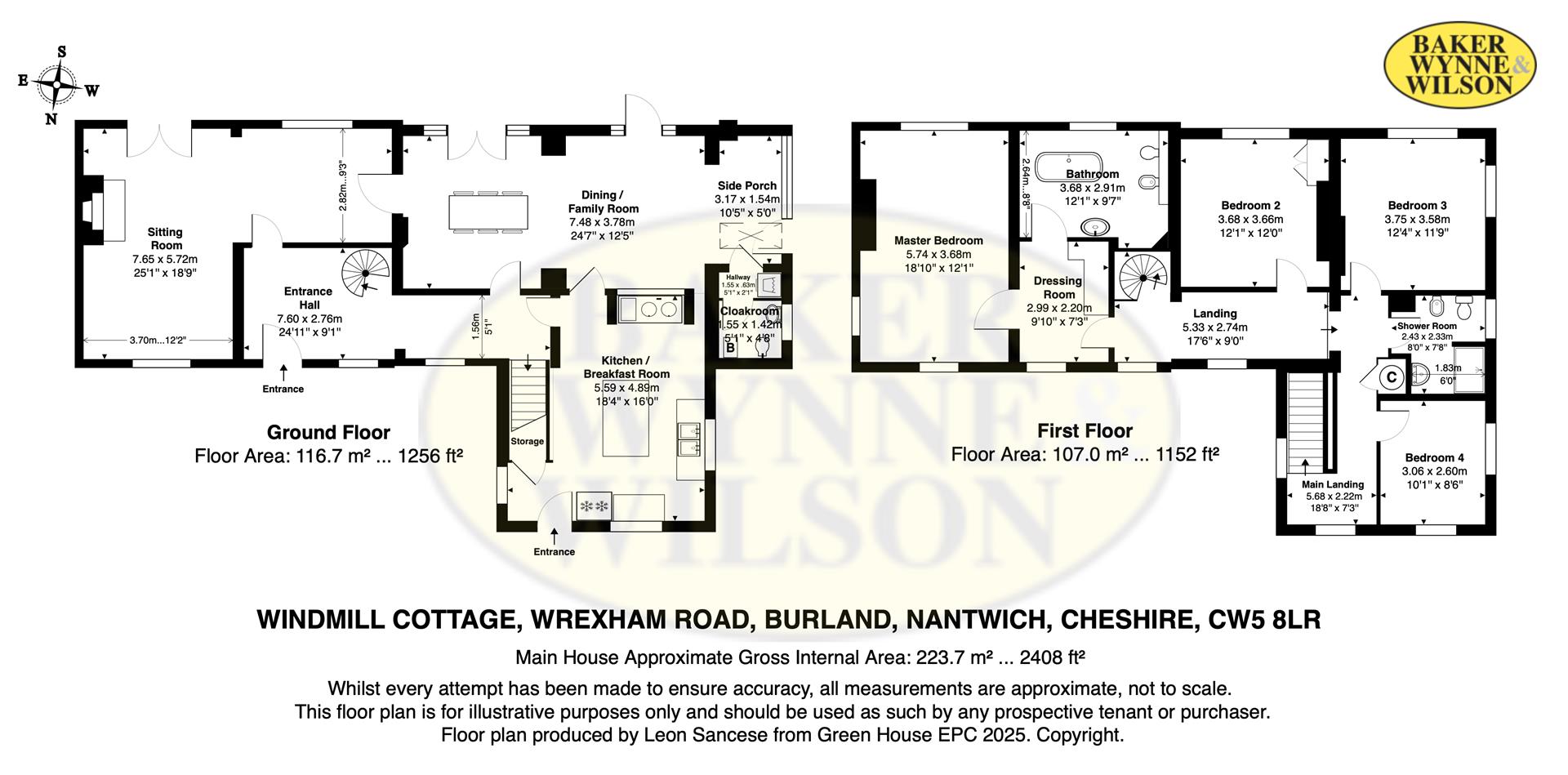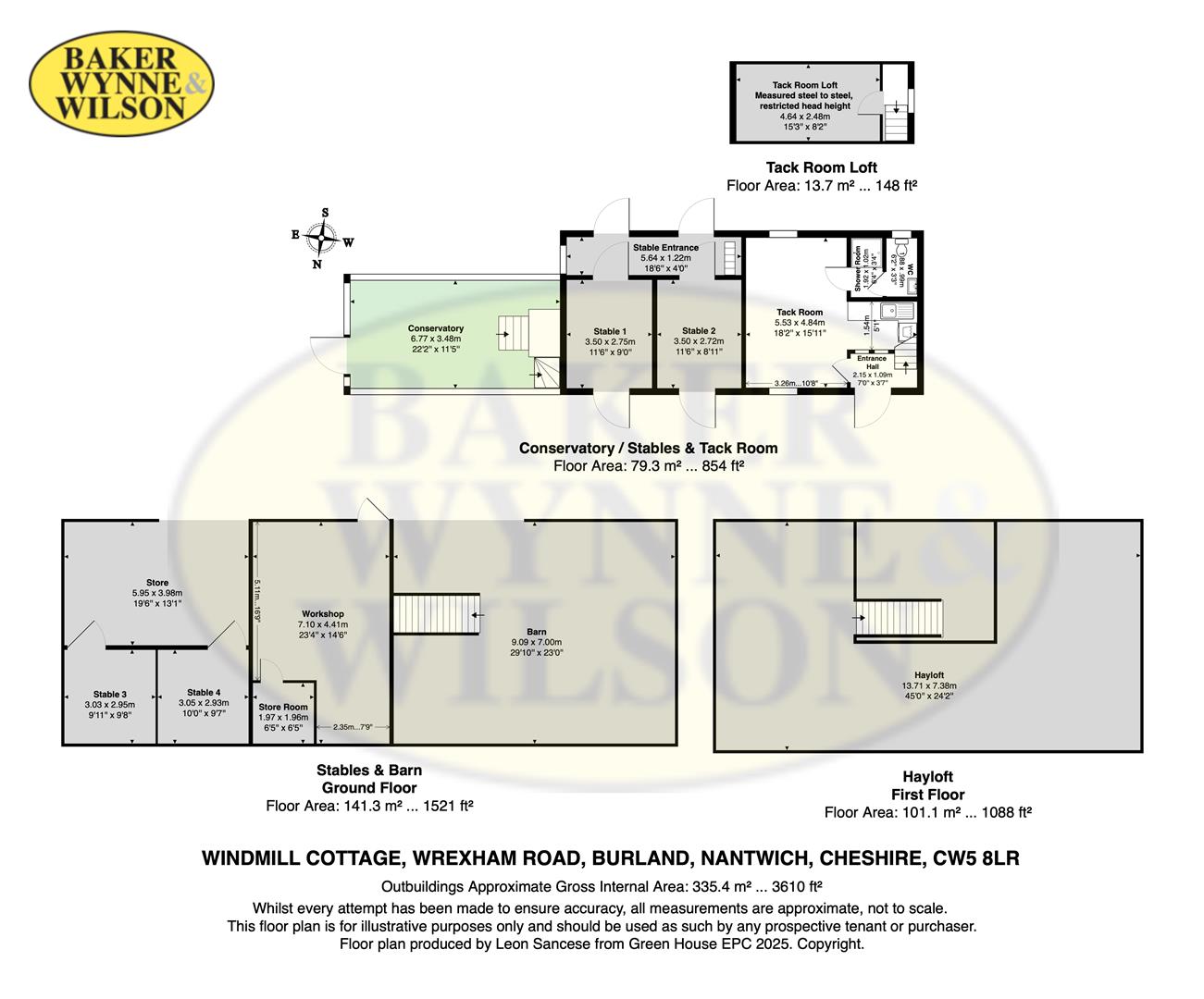 A distinctive detached four bedroom, two bathroom country house full of rural charm and character with an expansive range of equestrian/agricultural outbuildings, plus stunning south facing gardens and grounds to 9.1 acres. Overlooking the idyllic lake and open cheshire countryside. Positioned under two miles from nantwich town centre. Total 6689 FT2 house and buildings.A distinctive detached four bedroom, two bathroom country house full of rural charm and character with an expansive range of equestrian/agricultural outbuildings, plus stunning south facing gardens and grounds to 9 acres. Overlooking the idyllic lake and open cheshire countryside. Positioned under two miles from nantwich town centre. Total 6689 FT2 house and buildings.Directions To Cw5 8LrWhat3words /// began.coconuts.debatingFrom Nantwich take the A534 Chester Road as far as Acton, turn left by the Church onto Wrexham Road, continue for 0.75 of a mile and the property is located on the left-hand side.Approximate DistancesConnectivity & Convenience Effortless Commuting:Just 7 miles from Crewe Station (20- minute trains to Manchester, 1.5 hours to London) and M6 motorway (junction 16) 10 miles; Chester 20 miles; Stoke on Trent 20 miles; Manchester Airport is about a 45- minute driveGeneral RemarksComment by Mark Johnson frics @ Baker Wynne and WilsonThe Cottage interiors are filled with light and preserved original/reclaimed features, including the French spiral staircase, hand carved stand stone pillars, and the Portland stone fireplace. The property was thoughtfully renovated by its current owner to provide a space designed with blended rural charm and modern conveniences. Unfolding across circa 2400 sq. Ft of brilliantly crafted accommodation, it is a truly distinctive home in a small hamlet that once formed a farm. Approx 9 acres of organically maintained gardens surround the house, with a small natural lake, orchard, formal raises lawn with a Ha-Ha, and various paddocks, along with multiple outbuildings including a spectacular conservatory/ greenhouse, a large agricultural barn with potential, double garage, studio, and numerous stables.Out And AboutWindmill Cottage lies about 1.75 miles West of Nantwich. Burland is a small, loose knit settlement, set within open countryside, situated close to Ravensmoor Wharf on the Shropshire Union canal. Nearby Acton lies about 2 miles East on the outskirts of the historic market town of Nantwich. The village is centered around St Marys Church, the village hall, and Acton Church of England primary school. Nantwich is set beside the river Weaver with a rich history. In Cheshire, Nantwich is second only to Chester in its wealth of historic buildings. Four major motorways which cross Cheshire, ensure fast access to the key commercial centres of Britain and are linked to Nantwich by the A500 link road. Crewe railway station (London Euston 90 minutes, Manchester 40 minutes) 7 miles.Windmill Cottage provides a unique lifestyle opportunity overlooking open countryside yet under two miles from Nantwich town centre, which is to be enjoyed and treasuredBuyer's Wating To Hear About Your HomeIf you like these details why not request an consultation with a local expert Mark Johnson. Mark is a Chartered Estate agent and Valuer who will consider carefully the elements that make your home desirable and maximise its value by accentuating these in your listing. Listening to your goals our engagement with you will go far beyond simply selling your home. Mark is pleased to offer advice prior to the launching your home to the market and will keep you up to date with developing market news in the meantime.Interested - lets start the conversation with how much your property could be worth with the correct marketing.Why Live Within Close Proximity To Nantwich TownWhether you’re a history enthusiast, food lover, or outdoor adventurer, Nantwich delivers a rare blend of tranquillity and vibrancy. With its thriving community, rich heritage, and unbeatable location, it’s no wonder this town is consistently ranked among Cheshire’s most desirable places to live. Historic Heartbeat - Wander cobbled streets lined with timber-framed Tudor buildings, the iconic 12th-century St. Mary’s Church, and the striking Nantwich Market Hall, a testament to the town’s 400- year trading legacy. - Cultural Heritage: Dive into local history at Nantwich Museum or explore the Hack Green Secret Nuclear Bunker, a Cold War relic turned visitor attraction. Thriving Lifestyle - Boutique Shopping & Dining: Discover independent boutiques, artisan cafes, and award-winning restaurants. Don’t miss the monthly farmers' market for local produce. - Unique Leisure: Take a dip at Britain’s oldest outdoor saltwater pool, Brine Pool, or stroll along the River Weaver’s tranquil paths and the Shropshire Union Canal. - Highly Rated Education: Outstanding schools like Malbank School and Brine Leas Academy cater to families, while Reaseheath College offers vocational excellence. Festivals & Community Spirit - Savor gourmet delights at the Nantwich Food Festival or tap your feet at the Nantwich Jazz & Blues Festival. The Nantwich Show, a highlight of the agricultural calendar, draws crowds annually. – Year Round Vibrancy: From Cholmondeley Castle’s summer events to festive Christmas markets, there’s always something happeningThe TourGround Floor ( 116.7M2 1256 Ft2 )Main Reception Hall (7.59m x 2.77m reducing to 1.55m (24'11" x 9'1" red)Two staircases to first floor including the beautiful feature French 18th Century spiral staircase with stunning black walnut crafted handrail and elm treads, Yorkshire tiled floor in the style of the local church floor St Mary's, attractive sold oak exterior door, radiator.Sitting Room (L Shaped) (7.65m x 5.72m reducing to 2.82m (25'1" x 18'9" red)Original mid 19th century Portland stone fireplace with open grate, three radiators, beautiful reclaimed length and width traditionally laid oak floor plank