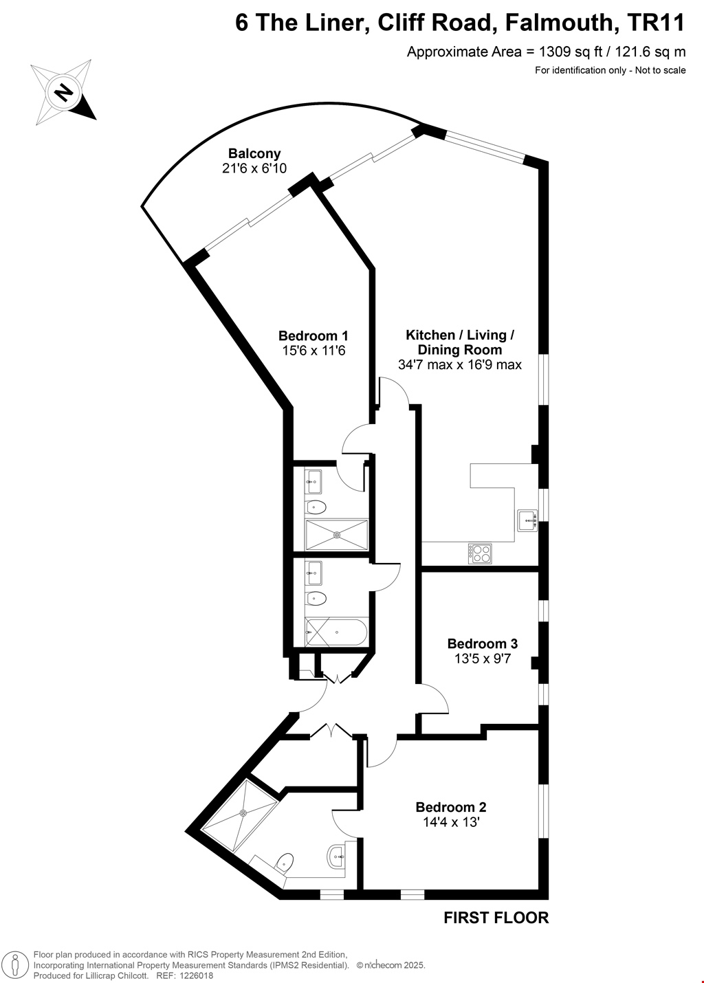 A spacious and beautifully appointed 3 bedroomed, 3 bath/shower roomed first floor apartment found within one of Falmouth’s most iconic seafront buildings. Luxuriously appointed, with a large open-plan living/dining room/kitchen, 3 bedrooms (2 of which en-suite), family bathroom and an allocated parking space – plus a broad glass fronted west facing balcony with some sea views.