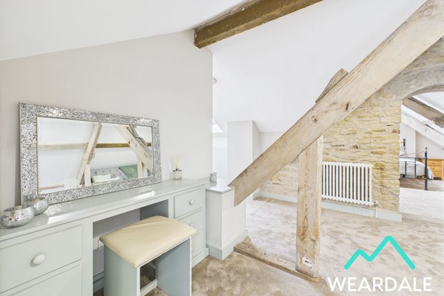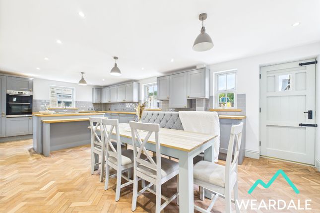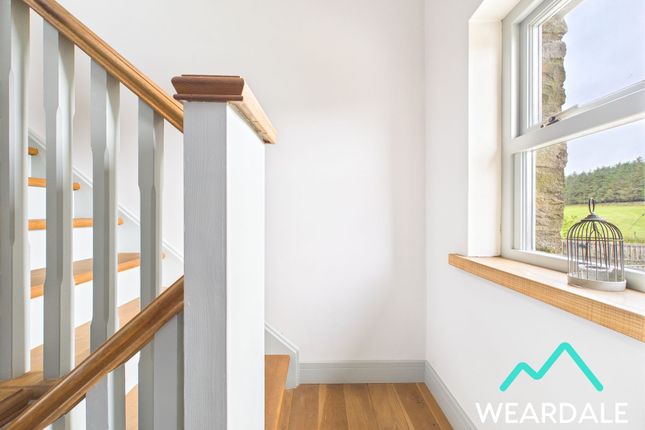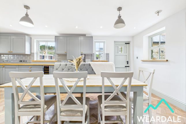 This impressive 4-bedroom detached farm house exudes style and traditional character. Coming to the market chain free, this premium home, was thoughtfully extended 12 years ago, showcasing high-quality materials and craftmanship throughout. Offering two reception rooms with multi-fuel burners set in feature fireplaces, exposed stone walls, and ceiling beams, a large triple aspect kitchen with a central island, along with, four generously sized bedrooms and three bathrooms, including a second floor private suite, the property is the epitome of rural living with modern comfort and convenience. Externally the attention to detail continues with the extensive outdoor spaces, including enclosed lawns, and a spacious patio area. All set in a picturesque backdrop with breathtaking views of the surrounding countryside creating a perfect retreat for relaxation or entertaining. A 30m x 10m block-built barn, complete with power and lighting, along with a newly constructed quadruple garage, further enhance the outdoor space. The property includes approximately 6 acres of flat grazing land, and comes with the option to acquire an additional adjoining 2.5 acres.The ground floor accommodation consists of two reception rooms with exposed stone walls and ceilings beams, extensive open-plan kitchen, with dining area and utility room. An oak staircase rises from the second living room to the first-floor landing, which provides onward access to three of the property’s bedrooms (one with En-suite), and the family bathroom. A further oak staircase rises to the second-floor landing, which provides access to the final bedroom and bathroom. This large landing area offers great potential for conversion into a dressing room, snug, or an additional sleeping area.Externally an inviting outdoor space awaits, with a rear enclosed garden, separated into a raised lawn and large sandstone patio, which provides access to the property via the kitchen and is surrounded by low level stone walls. To the front of the property is a South East facing garden area, also surrounded by low level stone walling and featuring a wood fired hot tub set on a sandstone patio. The newly built garage block has potential for conversion to a bungalow (subject to planning consent). The incredible outdoor spaces truly complement the beautiful indoor rooms, making this a perfect location, for living, relaxing and entertaining.Contact us today to ensure you don’t miss out on this exceptional opportunity.Agents NotesFuel: Lpg tankWater: Mains, meteredElectricity: MainsSewerage: Septic tank, shared with one neighbouring propertyLocationEliza farm is conveniently located close to the A68 providing access to Consett, Corbridge, Hexham and Newcastle. The property is located on the edge of the North Pennines National Landscape, and provides fantastic views of the surrounding hills. The area is hugely popular with walkers and cyclists, being positioned on the coast-to-coast route and provides the perfect balance of being within practical commuting distance to nearby towns and cities, whilst being positioned in a truly beautiful part of rural County Durham.Living Room 2 (4.52m x 5.57m)- External access to the front of the property is gained via a wooden door with frosted panes into living room 2, which provides onward internal access to the kitchen, living room 1, and a staircase that rises to the first-floor landing- Well-proportioned living room with wooden framed double-glazed sliding sash window with solid oak sill to the Southern aspect- Hardwood parquet flooring- Exposed wooden ceiling beams- Feature exposed stone wall to the staircase side- Large multi-fuel burner set in a brick and stone fireplace on a flagstone hearth- Central ceiling light fitting- Two traditional style column radiators- Under stairs storage cupboardKitchen (3.82m x 7.80m)- Positioned to the rear of the property being open-plan with the utility room, providing internal access to living room 1, living room 2, and providing external rear access via a wooden door with small clear pane to the Northern aspect- Large triple aspect kitchen with wooden framed double-glazed windows with solid oak sills to the Eastern, Northern and Western aspects- Hardwood parquet flooring- Huge range of over/under counter storage units- Central island with solid hardwood work surface and integrated five ring gas hob, with integrated storage below- Breakfast bar with solid hardwood top- Hardwood work surfaces with tiled splashbacks- Double Belfast sink- Integrated double electric oven- Two integrated dishwashers- Integrated freezer- Two integrated fridges- Integrated wine chiller- Ceiling light fittings- Additional ceiling spotlights- Traditional style column radiators- The property’s lpg fuelled Combi boiler is housed in a cupboard within this roomUtility Room (1.82m x 3.57m)- Positioned to the rear of the property and being open-plan with the kitchen whilst providing external access via a wooden door, with a small clear pane to the Eastern aspect- Small wooden framed double-glazed window to the Eastern aspect- Hardwood parquet flooring- Neutrally decorated- Solid wood worksurface with tiled splashback and integrated washing machine and tumble dryer below in addition to under counter storage cupboards- Additional whole height storage cupboards, one of which provides access to the property’s electrical consumer unit- Ceiling spotlights- Traditional style column radiatorLiving Room 1 (4.53m x 5.03m)- Positioned to the front of the property on the ground floor, accessed from living room 2, with onward access to the kitchen at the rear of the property- Well-proportioned living room with brick fireplace and multi-fuel burner- Wooden framed double-glazed sliding sash window with solid oak sill to the Southern aspect- Carpeted- Neutrally decorated- Exposed wooden ceiling beams- Feature exposed stone wall to one side- Central ceiling light fitting- Traditional style column radiator- Fantastic views over 