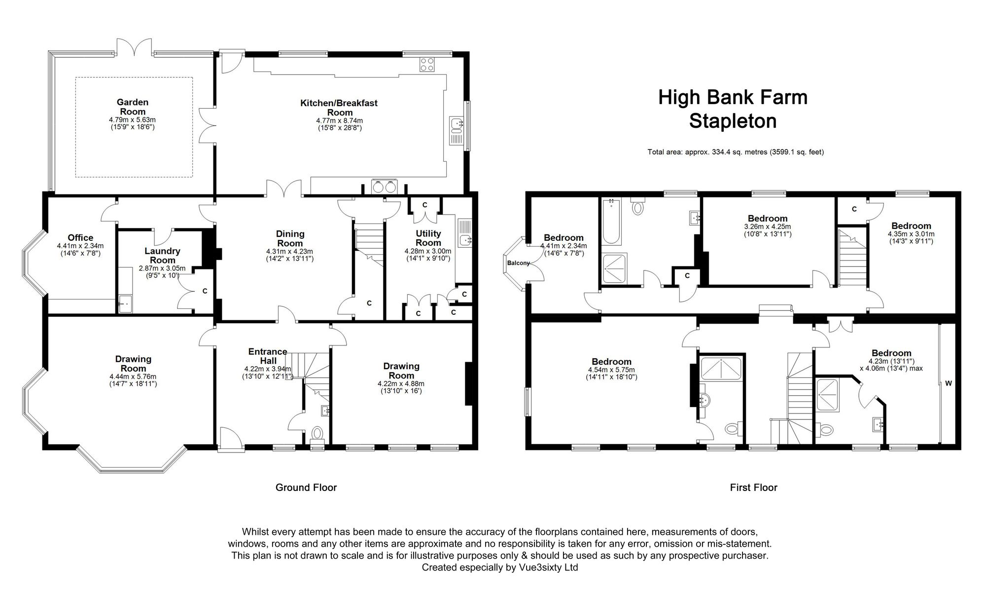 Accommodation in Brief Ground FloorEntrance Hall | Drawing Room | Sitting Room | Dining Room | Study | Office | Kitchen/Breakfast Room | Garden Room | Utility Room | Laundry Room | Cloakroom/WCFirst FloorPrincipal Bedroom with En-Suite Shower Room | Four Further Bedrooms with En-Suite | Family BathroomExternallyDetached Summerhouse | Range of Livestock Buildings & Stabling | Large Purpose Built Wooden/Brick GreenhouseThe PropertyHigh Bank Farm is an attractive country house in the rural hamlet of Stapleton. Set within extensive grounds that include stabling and paddock land, it is particularly well suited to buyers with equestrian interests. The property combines graceful period proportions with thoughtful modern additions, offering generous and versatile living space. Inside, traditional character pairs comfortably with modern convenience, with a sequence of well-proportioned reception rooms, a farmhouse kitchen and a striking garden room that frames views of the landscaped setting.The welcoming entrance hall sets a refined tone, with sightlines through to the principal reception rooms. To one side, a bay-fronted drawing room provides an elegant setting for entertaining, while a further drawing room offers a more relaxed atmosphere, complete with a feature fireplace and outlook over the gardens. A formal dining room sits at the heart of the house, well placed between the reception rooms and the kitchen, creating a natural flow for family life and entertaining. A study/office provides a quiet space for working from home, and a recently fitted utility and laundry room enhance practicality.The kitchen/breakfast room is a true centrepiece, fitted with bespoke cabinetry, granite and oak work surfaces, and a traditional Aga set beneath an oak beam. Designed for everyday living, the space accommodates a farmhouse table and connects directly to the David Salisbury garden room, an impressive addition crowned by a glazed roof lantern drawing in natural light and providing a striking architectural detail. Floor-to-ceiling windows frame far-reaching views, while French doors open onto the terrace, creating a seamless transition between the house and its outdoor entertaining areas.On the first floor, the five bedrooms are arranged with balance and privacy in mind. The principal bedroom is a generous suite with open views and an en-suite shower room. Four further bedrooms (one with an en-suite) are all light and spacious, and served by a well-appointed family bathroom with a freestanding bath and separate shower.ExternallyThe grounds of High Bank Farm are as impressive as the house itself, with broad lawns, established borders and an ornamental pond creating a calm focal point. A south-facing terrace provides space for al fresco dining, while an orchard of fruit trees adds both seasonal colour and productivity. A detached fully insulated summerhouse, fitted with power, heating and wifi provides an ideal garden office or studio retreat.Beyond the formal gardens, the land extends to approximately 9.12 acres in total. This includes around 4.00 acres of grazing land and a 1.87-acre shelter belt of amenity woodland, which creates privacy from the road and adds an attractive natural backdrop. A paddock provides scope for equestrian or smallholding use, while a range of traditional outbuildings and stabling enhance the versatility of the property.The farmstead also includes a collection of portal frame general-purpose livestock sheds, arranged around a largely concreted yard and offering extensive covered space for a variety of uses. Ample private parking and turning areas further contribute to the practicality of the setting, while the whole property is framed by a backdrop of open countryside.Agents Notes A right of way for all purposes and at all times will be reserved over the northern access to High Bank Farm (shown shaded purple on the site plan, available from the agent) for the benefit of the retained land. In addition, the purchaser of High Bank Farm will be granted a right of way over the southern access, leading into the yard and farm buildings (shaded yellow on the site plan, available from the agent). The new boundary dividing High Bank Farmhouse from the retained land is to be erected by the Buyer to a specification to be agreed between Buyer and Seller and within 3 months of the completion of the purchase.Local InformationStapleton retains a gentle rural charm, with a small number of local shops nearby, several traditional pubs and restaurants, and a children’s nursery. The village’s heart is the welcoming Bridge Inn, renowned for its real‐ale selection, roaring log fire, and a relaxed, dog friendly atmosphere. Despite its peaceful location, Stapleton remains well connected. Regular bus services link the village with Darlington and Richmond, offering ease of travel for shopping, schooling or commuting. Darlington’s wider range of shops, services and transport links including rail and road networks are just a short drive away, granting an ideal blend of rural tranquility and urban convenience.Approximate MileagesDarlington 3.0 miles | Darlington Station 3.5 miles | A1(M) Junction 58 4.0 miles | Durham Tees Valley Airport 8.0 miles | Richmond 11.8 miles | Durham City 20.0 miles | Newcastle City Centre 37.0 miles | Newcastle International Airport 41.0 miles | York 50.0 milesServicesThe property is connected to mains electricity and water.Drainage is to a gravity fed treatment plant, installed in 2024. The neighboring nursery retains access to a separate septic tank on the boundary of the front lawn, which is now used solely by them.Heating and hot water are provided by a biomass boiler which is located in Building C on the site plan (available from the agent). It supplies heating and hot water to High Bank Farmhouse as well as the adjacent commercial buildings. Usage by the neighboring property is separately metered and recharged on a quarterly basis at the prevailing market rate.TenureF