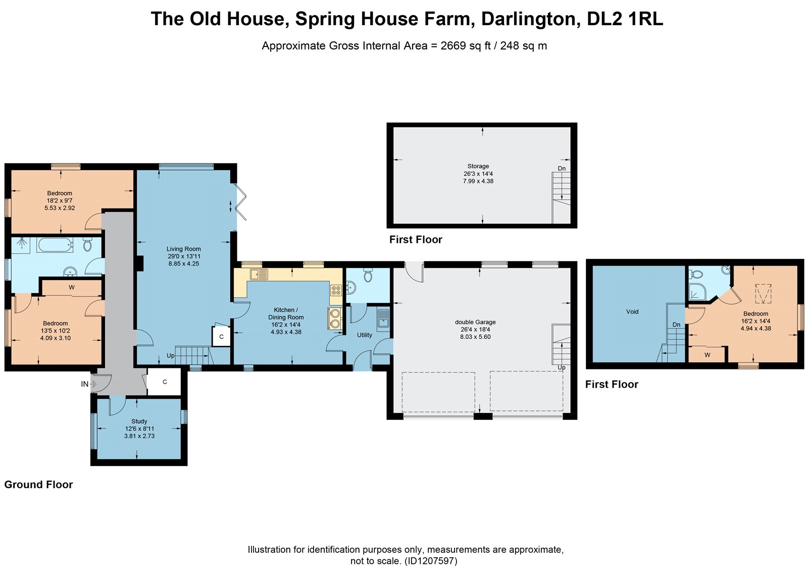 The propertyThe land extends to approximately 146 acres (59.28 ha) in total which includes about 28.88 (11.68 ha) acres of woodland. The potential land use is very versatile being available to both grass and arable production. Residential accommodation is well provided for in a most comfortable and spacious farmhouse and an attractive and compact detached cottage which is suited to additional family or rental accommodation. There are a very good and complete set of modern and traditional style farm buildings situated beside the farmhouse which provide everything that is needed for effective equine, livestock and arable production. There are a total of 29 stables, extensive yard areas and a floodlit outdoor all-weather arena.**Lot 1 The Steading (pink)**About 11.46 acres (4.63 hectares)FarmhouseThe spacious and attractive farmhouse is offered in very good decorative order throughout and was completely renovated in 2012 in the traditional style with brick under a pantile roof and benefits from an Esse wood burning cooker and a wood burner. Internally the accommodation comprises an entrance hall, kitchen/dining room, sitting room, utility room, study/bedroom, two further bedrooms and bathroom/cloakroom. On the first floor is found the principal bedroom with en-suite. Outside is a double garage with mezzanine storage floor over and well-maintained gardens with views over the surrounding farmland.The Farm BuildingsThere is an extensive collection of modern and traditional farm buildings and purpose-built equestrian facilities. The farm steading benefits from a water and electricity supply to every building and a substantial hardcore yard for parking and machinery storage. The yard and buildings were granted consent for equestrian use in 2000 (00/00124CU) and since then our clients have built up a successful livery enterprise. There are currently around 22 livery tenants who occupy on short-term agreements, with a waiting list of hopeful future tenants. Historically the livery enterprise has operated with a maximum capacity of 60 horses.The buildings and facilities comprise:A. A purpose-built Outdoor Arena with fibre-sand surface and flood lighting.B. ‘L’ shaped timber Stable Block with concrete floor for 7 Boxes.C. Steel portal frame General Purpose Shed with concrete floor and Yorkshire boarding.D. Concrete and wood frame Stable Block with concrete floor for 12 purpose-built boxes, 3 Integrated boxes, feed stores and tack room.E. Concrete block Stable Block under a profile sheet roof with a concrete floor for 3 boxes.F. Traditional brick-built Stable Block with steel profile sheet and concrete floor for 2 boxes and feed store.G. Steel portal frame General Purpose Shed with concrete floor.H. Traditional brick-built Stable Block with tile roof and concrete floor for 2 boxes. The field in front of the Farmhouse is currently sown with a crop of Wheat.**Lot 2 Spring House Cottage (blue)**About 35.32 acres (14.29 hectares)This charming and compact single storey cottage is situated a short distance from the main farm steading along an access track. It is of traditional brick construction under a slate roof and is offered in very good decorative order throughout. There is a wood burning stove for heating and hot water and a central heating backup system provided by an electric boiler. The accommodation comprises an entrance hall, sitting room, kitchen/dining room, two bedrooms and a bathroom.The field to the south of the cottage is currently sown with grass and there is a compartment of woodland to the Eastern boundary.The LandThe land is mostly flat with gentle undulations throughout and has been well farmed as part of a traditional rotational cereal system. The land has also been improved with drainage work, hedge planting and the application of organic matter manure. The land lies at around 50m above sea level and is classified as being of Grade 3 status and according to the Soil Survey of England and Wales the land is classified as being mostly of the Crewe series which is described as being ‘seasonally waterlogged slowly permeable soils formed at about 3m with permeable material starting within and extending below 1m of the surface. The soil is a reddish clayey stoneless drift. The field parcels are of good size and suited to modern machinery and all grass paddocks are fenced and have access to water troughs which are fed from a metered supply.**Lot 3 (purple)**About 39.15 (15.84 hectares)This land is currently a mixture of permanent pasture and rotational grass with a central belt of woodland and further woodland compartments on the Northern boundary and there are also a couple of ponds within the woodland.**Lot 4 (orange)**About 59.19 acres (23.95 hectares)This land is currently sown with a crop of Wheat and there is a compartment of woodland to the Northeastern corner.SituationThe farmstead at Spring House Farm is very well situated in open countryside and at the centre of its own land and all within a ring fence close to the village of Sadberge. Darlington is the closest large town in the area and has a wide range of shopping and leisure facilities, along with a mainline train service on the East Coast mainline connecting to National and international transport destinations and Teesside International Airport with flights to many European Cities and other international transport hubs is close by.
