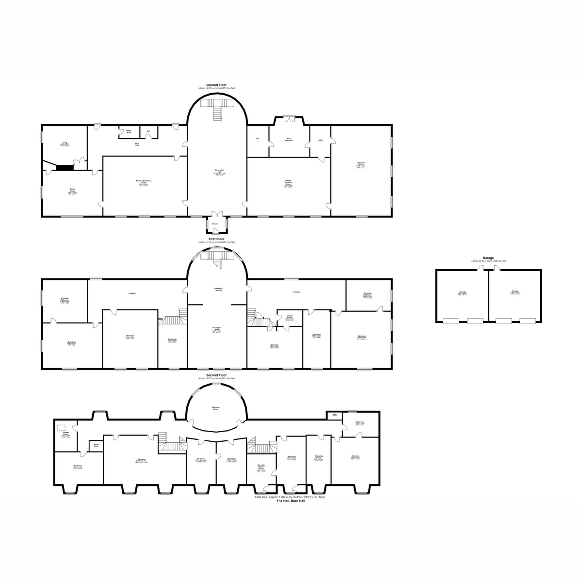 Burn Hall in Durham is a magnificent eleven-bedroom Grade II* listed sandstone mansion of enormous architectural and historical significance. It is a breath-takingly beautiful building of grand neo-classical design and incorporates some of the most exquisite external and internal detailing. Built in 1821 from the designs of renowned architect Ignatius Bonomi, who took influence from the original plans by Sir John Soane, it represents as being one of the finest period country homes in the north-east. In fact, Queen Victoria is quoted as declaring Burn Hall to be “the finest looking estate between the Humber and the Tweed”.Occupying a private position on the south-side of the historical city of Durham, it commands an impressive south-facing aspect with extensive far reaching views, across a stone ha-ha, towards the river Browney. The adjoining grounds of towards 17.14 acres are accessed via secure entry, up a long sweeping topiary drive through the Estate. The accommodation is highly versatile, offering undoubted scope for a variety of buyer requirements and potential uses, both residential and commercial. The current owners have undertaken significant improvement works in recent years, therefore ensuring that any would-be purchaser will inherit the Hall in superb condition and decorative order.Viewing is highly recommended.The Location:Positioned within the DH1 postcode sector, Burn Hall is ideally placed for highly convenient access to Durham city centre and excellent transport links, which includes the mainline train station offering regular services to both London Kings Cross in the south and Newcastle and Edinburgh in the north. It also benefits from good road links to the A1 and the A167 Durham to Darlington road.Brief History:In 1621, the Burn Hall estate was purchased from the Claxton family by Christopher Peacock; then sold again in 1715, to Postumous Smith. Original plans were drawn in 1783, by Sir John Soane, however were subsequently abandoned. In 1806 the Burn Hall estate was purchased from Mrs Alice Hall by William Salvin. Brian John Salvin commissioned Joseph Ignatius Bonomi to design a new mansion. The building we see today was built between 1821 and 1834 by a local builder, Moody of Ushaw. The older house is thought to have stood on the hill above Browney Bridge, at the southern tip of the estate. Burn remained within the Salvin Family until Marmaduke Henry Salvin died in 1924, where-upon in 1926 it was acquired by Saint Joseph's Missionary Society of Mill Hill, which established a Catholic Seminary there for many years. Today, it is one of only a few remaining grandiose mansions in County Durham. The current owners purchased the property in 2009 and have undertaken extensive and sympathetic improvements, bringing the property up to its current, refurbished and high finished standard throughout.Noteworthy Features:As a fine country house dating from 1821-1834, built from the designs of Ignatius Bonomi, by Moody of Ushaw, for B. J. Salvin. The key architectural features include: Exterior: •Fin ely dressed sandstone ashlar with graduated Westmorland slate roof •Symmetrical main elevation with sashed bays and channelled rustication. •A giant central tetrastyle unfluted Ionic porte-cochere •Fluted Ionic porch and flanking sashes. •6 panel round-headed entrance door in rusticated hollow reveal. •Large Georgian sashes with glazing bars; including shutters and some with internal window seats •Blocked lunettes over ground floor sash windows to the end bays, with scrolled keystones and foliage-carved spandrels. •Outer bays project slightly and have wide pilasters flanking the windows. •Top entablature and roof parapet, balustraded over the windows. •Mansard roof with square-headed second floor windows and stone plinth balustrade •Tall ashlar chimneys with plinths and cornices. •Stone Ha-Ha at the front elevation •Wrought iron electric entrance gate with secure access. Further continued wrought iron estate fencing. Interior: •Imperial stair with wreathed handrail and double curtail on first central flight. Attractive gothic cast iron balustrade. •Drawing room has panelled dado and rich rococo stucco ceiling with fruit and flower decoration. •The hall has a modillioned cornice •Rich stucco cornices in a variety of other rooms. •A variety of ornate stone and wood fire surrounds in both the reception rooms and bedrooms •Feature stained glass picture-windows to the galleried landing •Rear ground floor passage has two round-headed niches with enriched lugged mouldingsThe Accommodation:Central Hall –With flooring and highly decorative mouldings. Imperial staircase dividing on first flight; Multi fuel stove inset to marble surround; Two sash windows with shutters.Drawing Room –Ornate feature fireplace and decorative ceiling mouldings; Exposed wood floor;Three sash windows with shutters.Library/Billiards Room –Ornate carved fire surround and decorative ceiling mouldings; Wood panelling and fitted book shelving; Exposed wood floor; Four sash windows with shutters.Kitchen –Solid wood cabinetry and thick granite worktops; A large central island with a double sink; breakfast bar and integrated appliances. Exposed wood floor; Decorative ceiling mouldings; Three sash windows with shutters.Dining Room –With decorative mouldings and feature fireplace; Three sash windows with shutters; Walk-in cupboard.Botanical Room –Multi fuel stove with feature surround; Wood panelling; Shelved cupboard; Sash window with shutters.Back Hall –Utility room; Cloakroom, Cloaks cupboard; Shelved cupboard; Door to rear external.Rear Entrance Hall -Exposed wood floor; Feature fireplace.WC –WC; wash hand basin.Galleried Landing –Three feature stained glass sash picture windows above over double flight of stairs leading to an open gallery beyond the landing. Two sets of doors, both with surrounding stained glass detailing, providing access to the east and west w