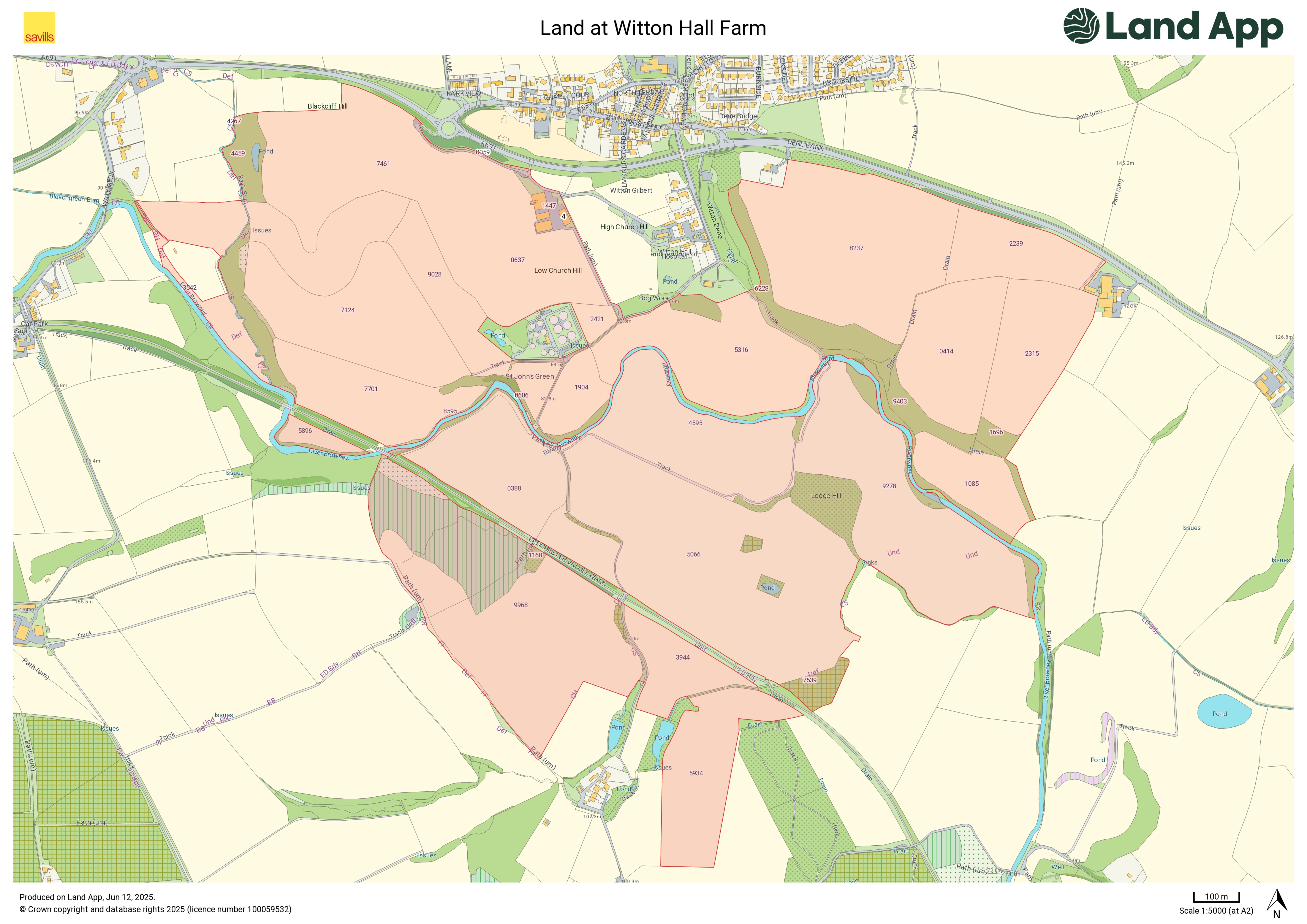 Beautifully situated commercial arable farm with excellent range of modern farm buildings.DescriptionSituationWitton Hall Farm lies to the south of the A691 Durham to Consett road, only 4 miles north-west of the city of Durham, and 7 miles south of Chester-Le-Street. The A1 lies 6.5 miles to the east and the main east coast rail line can be joined in Durham. The farm is well situated to gain access to the facilities, schools and leisure opportunities in the historic city of Durham, as well as to Weardale and the North Pennines.IntroductionThe sale offers a rare opportunity to acquire a large commercial farming opportunity lying within a ring-fence within very attractive natural countryside, yet only 4 miles from the city of Durham. There is good access directly from the roundabout on the A691.The land which is predominantly under arable production is supported by an excellent and extensive range of modern farm buildings designed to support a larger farming enterprise including approximately 6,000 tonnes of grain storage, but suitable for a variety of storage purposes.The River Browney which meanders through the farm, provides a beautiful, natural setting for the farm which is enhanced by the well-established woodlands and shelterbelts which enhance the conservation, amenity and sporting value of the farm. Whilst the arable land is mainly in good-sized fields, the farm naturally lends itself to inclusion within environmental stewardship schemes, and includes a site with potential for bng.Farms of this scale and diversity, together with a first class range of buildings are extremely rare in such a private and accessible location. Additional land may be available to rent by negotiation.Farm BuildingsFollowing the re-location of the farm steading out of the village, a new set of buildings were constructed offering over 2,500 m sq of first class mainly general purpose clear span storage buildings including approximately 6,000 tonnes of grain storage. A 22 tonne per hour Alvan Blanch grain dryer was installed in 2017 together with associated conveyors and reception intake pit.LandThe land which extends to approximately 454 acres lies largely within a ring-fence, divided only by the River Browney which forms an attractive natural feature through the farm. The 381 acres of arable land is mainly level or gently sloping with the farm lying largely between 80 and 100 metres above sea level. The soils are classified as grade 3 including a mixture of brick field 3 and alun soil types which consist of predominately loamy and clay surface water soils and coarse loamy alluvial soils. The arable rotation is based on wheat, spring barley and oats, although the farm is currently entered into an sfi scheme as well as a mid-tier stewardship scheme due to expire this year. As a result the current cropping includes approximately 150 acres of legume fallow which is due to come out this autumn, but which will have given the soils a valuable break crop.The 39 acres of grassland mainly comprises a single valley and adjoining fields towards the western end of the farm which is grazed by cattle. On the western edge of the farm there is a former compound site of 2.7 acres owned by Northumbrian Water which the vendors rent on an annual basis, and which may be available to the purchaser.Woodland & ConservationA particular feature of the farm is the high natural landscape value as a result of the natural contour, the woodlands, shelterbelts, and double bank fishing on the River Browney which meanders through the centre of the farm. The woodland not only enhances the landscape, but adds to the sense of privacy and acts as a wildlife corridor. Whilst currently farmed commercially, the farm does lend itself to continued inclusion in stewardship and other environmental land management schemes as they become available.A survey identified potential for up to 70 bng units on the farm, and this is something which could be followed up by the purchaser.Acreage:454.21 AcresAdditional InfoNearest Postcode - DH7 6SUDirections - The farm should be approached by the A691. There is a roundabout at the western end of Witton Gilbert and the private farm track leads directly off the roundabout onto the farm and to the buildings.Rights of Way, Easements and Wayleaves - The property is sold subject to and with the benefit of all wayleaves, easements and rights of way whether public or private whether mentioned or not. There is a public footpath running north to south through the farm, mainly following the existing track, but splitting into 2 towards the southern boundary. A bridleway follows part of the southern boundary of the farm and can be seen on the County Durham Definitive Rights of Way map.There is a right of way over the farm track in so far as it leads to the sewage works. There is secondary access onto the farm from the west boundary off Wallnook Lane.The vendors will reserve a personal right to use the track leading to the A691 roundabout from their homesteading and the track east of 0S 2421 to access retained land.Services - Mains electricity (single phase). Mains metred water supply.Separate meters will need to be installed for both. There is a small septic tank servicing the WC at the buildings. The 2 liquid fertiliser tanks are not owned.Local Authority - Durham County CouncilSubsidies and Grants - The land is registered on the Rural Land Registry, the seller will claim and retain any remaining de-linked payments.The purchaser will indemnify the vendor against any noncompliance from the date of completion.Environmental Stewardship - The land is entered into a Sustainable Farming Incentive (sfi) agreements which will be terminated upon completion of the sale. The mid-term stewardship agreement also terminates this year.Mines and Mineral Rights - The mines and minerals rights are reserved to a third party subject to compensation in the event of damage caused.Sporting Rights - The sporting and fishing rights are included in the