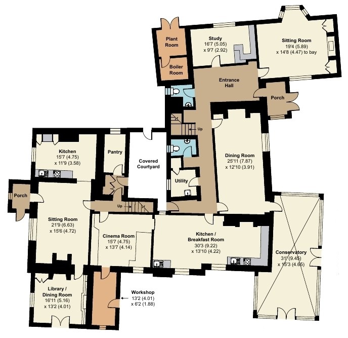 With a rich history, this enchanting Grade II Listed manor is peacefully situated, offering splendid south facing views over the rolling Devon hills. The main house features six bedrooms, including three generously sized suites, along with an additional substantial four bedroom detached barn conversion. Set within three acres of parkland, the property exudes grandeur and presents a wealth of versatile living and income opportunities.Blagdon Manor is a Grade II Listed home dating back to the Tudor period, with significant later additions from the Georgian era. Featured in the Domesday Book, it stands as one of the most important residences in the historic West Devon parish of Ashwater.Today, this property would suit those seeking a luxurious lifestyle, with the added benefit of approximately three acres of delightful parkland gardens surrounding the home, from which fine views towards Ashwater can be enjoyed.The residence exudes elegance, architectural flair, and charm, and offers a wealth of character alongside many modern comforts, including outstanding bespoke oak cabinetry.A large four bedroom detached barn, located across the courtyard, also boasts considerable character. It has previously been used as holiday accommodation, generating valuable income, and enjoys its own level and enclosed garden space.Our clients have lived at Blagdon for around eight years, during which time they have carefully and meticulously transformed it from a boutique hotel and restaurant retreat into a superb private residence. This transformation is now virtually complete, allowing incoming purchasers the opportunity to add their own final touches.Regardless, the quality of this property should not be underestimated. It is being sold ready for immediate occupation, with no onward chain.The property is accessed at several points around its perimeter. The formal entrance on the eastern side leads into an inviting hallway, featuring an impressive original slate floor that immediately sets a refined tone.The main sitting room is both bright and welcoming, with dual aspect windows, including a bay and a large sash window, offering lovely views over the grounds. A striking polished marble fireplace with an inset wood burning stove creates a beautiful focal point. Built-in cupboards provide additional storage.Adjacent to this room is a large home office. It features an extensive array of built-in cabinetry, with shelving, storage and a desk, along with the original functioning safe. This room is ideal for remote working and has space for more desks or workstations if needed.The formal dining room adds further charm, with wooden flooring, a dado rail and a feature fireplace that includes a substantial wooden lintel and a carved stone dated 1683. Planning consent is already in place to reconfigure this room into a new kitchen, which would transform it into a light and spacious central hub.The conservatory wraps around the east and south elevations of the house and is currently used as a gym and sitting room. As a conservatory has been here for many years, it is highly likely the local authority would support an application for a replacement structure as it doesn’t form part of the listing.The existing kitchen is fitted with stainless steel units, an electric oven, dishwasher, induction hob, two sinks and a powerful extractor hood. This space has potential to be converted into a gym, studio or leisure area if the kitchen is relocated.In the historic west wing of the house, two further reception rooms provide both atmosphere and character. The sitting room features a superb slate floor, an inglenook stone fireplace with an inset wood burning stove, a window seat, huge original hand crafted beams and an historic slate scald creamery. Bespoke oak carpentry includes built-in shelving, cupboards and radiator covers.The sitting room flows into the dual aspect library, which houses two large bookcases, fitted cupboards, and a traditional stone fireplace with a clome oven. French doors open directly to the garden, bringing in natural light and providing easy access to the outdoors.This wing also benefits from its own entrance with porch and a newly fitted kitchen with integrated appliances including an electric oven, induction hob, microwave and dishwasher. Stylish display cabinets and a quality work surface complete the space. As this part of the house is self-contained yet connected, it is ideal for extended family, holiday letting, guests or those looking for independent living within a larger home.The property also includes a dedicated cinema room with tiered seating, sound conditioning, lighting design, 4k projection and 7.1 surround sound provided by a very high spec active/passive behind the screen speaker system. AV equipment and seating to be included at the guide price. Completing the ground floor are a walk in pantry with cooling system, a utility room, two separate WC’s a workshop and a lobby with extensive storage.Two staircases lead to the first floor. The principal staircase is of generous proportions with two halflandings, an elegant feature that leads to an extensive landing and six en-suite bedrooms.The first three bedrooms are particularly spacious. Each is beautifully presented with super king sizebeds and enjoys wonderful views over the gardens and surrounding grounds.The impressive master suite has a combined floorspace of over 580 sqft comprising a lobby, dressing room, bathroom, walk-in shoe store, and very generous main bedroom which is dual aspect with far reaching views over the Devon countryside. A bold use of colour, beautiful built in wardrobes and WiFi controlled lighting design combined with its location in the eastern wing of the house create a uniquely private and luxurious retreat for the owners of the manor.Each bedroom is individually styled, tastefully decorated and full of charm. Many of the high quality beds, mattresses and furnishings are recent purchases and may potentially be a