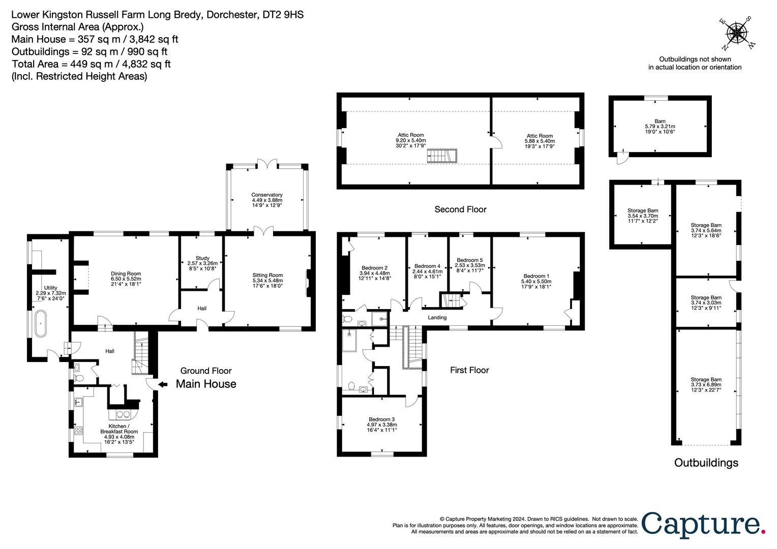 A versatile livestock and dairy holding set in the beautiful West Dorset countryside, including farmhouse and pair of cottages, extensive range of agricultural buildings with well equipped dairy, totalling 406.12 acres.IntroductionCommercial, livestock and dairy farms of this size and nature rarely come to the market in Dorset. Lower Kingston Russell Farm is a ring-fenced holding with flexible residential accommodation and a good range of adaptable farm buildings. The farm is fantastically located and provides an opportunity to operate a significant farming enterprise.The current owners purchased the farm in 1998 and have since run the holding as a dairy farm, currently milking a herd of 400 cows. The residential properties within Lot 1 include a well-proportioned farmhouse and a pair of Grade II listed cottages.The farmyard is at the heart of the holding and consists of a range of modern farm buildings and a parlour, surrounded by a total of approximately 362.07 acres of productive pasture land and approximately 26.31 acres of woodland.SituationTucked away in the unspoilt Bride Valley, Lower Kingston Russell Farm enjoys an outstanding rural position in the heart of West Dorset’s rolling countryside, just outside the village of Long Bredy. The farm is set amidst gently undulating pasture land with far-reaching views across its own farmland and along the Jurassic coastline.Although in a tranquil and secluded setting, the farm is well-connected, lying just South of the A35. The County town of Dorchester is approximately 8 miles east, offering a wide range of amenities and direct rail links to London Waterloo. Further amenities are available at the popular market town of Bridport 7 miles to the west. The area is well served by independent and state schools including the Sherborne Schools, Leweston, Milton Abbey, Bryanston and Sunninghill Prep School.Lot 1 - Lower Kingston Russell FarmThe FarmhouseThe five bedroom farmhouse provides spacious accommodation over three floors, boasting beautiful gardens that overlook the farmland and surrounding valley.The ground floor provides a useful living area, with a generously sized sitting room, dining room, study and conservatory, attractive spaces for family living and entertaining. The kitchen is equipped with a large ‘aga’ range cooker and space for everyday dining.The first floor has 5 bedrooms, a family bathroom and an ensuite. The second floor provides two further attic rooms.Front and rear gardens are good sized and well kept. A conservatory overlooks the farmland to the south, providing glorious views over the rolling countryside.A stone barn in the confines of the front garden provides useful storage.1 & 2 Lower Kingston Russell CottagesA pair of attractive semi-detached Grade II listed cottages of brick, stone and slate construction with block and rendered extensions to the rear, private gardens and ample parking.Both cottages have generous sized living accommodation and 3 bedrooms. The cottages offer further accommodation for staff, extended family or holiday lets, subject to the necessary consents.Farm BuildingsA functional and adaptable range of predominantly modern farm buildings, with some traditional, extending to approximately 3,883 sq. M. In total.The farm buildings are predominantly of steel portal frame and concrete block construction under fibre cement/ asbestos roofs.Please see the particulars for further details.LandThe land is in a ring-fenced block and totals 406.12 acres (164.35 hectares) with the farm buildings and farmhouse set centrally.The holding is well served by a network of internal trackways, all constructed of stone quarried from the farm. The land is conveniently subdivided into good sized fields which are stock-fenced and served with water.The land is classified as Grade 3 and comprises part fine loam over clay and part fine silt over clay soil. Some parts have been in arable rotation and capable of growing crops, but the land is currently all permanent or temporary grassland. It benefits from a lake and some dispersed areas of woodland.Tenure And PossessionAll freehold with vacant possession upon completion.The vendors reserve the right to hold a dispersal sale of machinery prior to completion.Early entry will be permitted (if appropriate) for the purchaser at their own risk and cost.ServicesMains electricity is connected to Lot 1. Water is a private supply rising on Lot 1 from springs to storage tanks that supply the property. This supplies the farmhouse, cottages farm buildings and Red Brick Barn. This is licensed with a limit of 23,725 cube per annum.Mains water is not connected, but rights to connect are available, and infrastructure (to Lot 1) is in place should a buyer wish to connect this in the future. It should be noted that electricity and water to Red Brick Barn is currently supplied via the main farm (Lot 1). Should this lot be sold separately, then rights to connect to any mains services will be granted, plus any temporary rights required.No services are connected to Lot 3.Rights, Easements And BoundariesLower Kingston Russell Farm is sold subject to and with the benefit of all rights including rights of way whether public or private, light, support, drainage, water and electricity supplies and other rights and obligations, easements and quasi-easements and restrictive covenants and all existing and proposed wayleaves or masts, pylons, stays, cables, drains and water, gas or other pipes whether referred to in the General Remarks and Stipulations or particulars of sale or not. The purchaser shall be deemed to have full knowledge of the boundaries of the ownership thereof.The main farm access driveway is shared with the neighbouring property. The buyers of Lot 1 will be responsible for part of the repair and upkeep warranty. There are footpaths and bridleways crossing the property. Part of Lot 1 is Open Access Land, as defined by the Countryside Rights of Way Act 2000.Basic Payment SchemeThere are