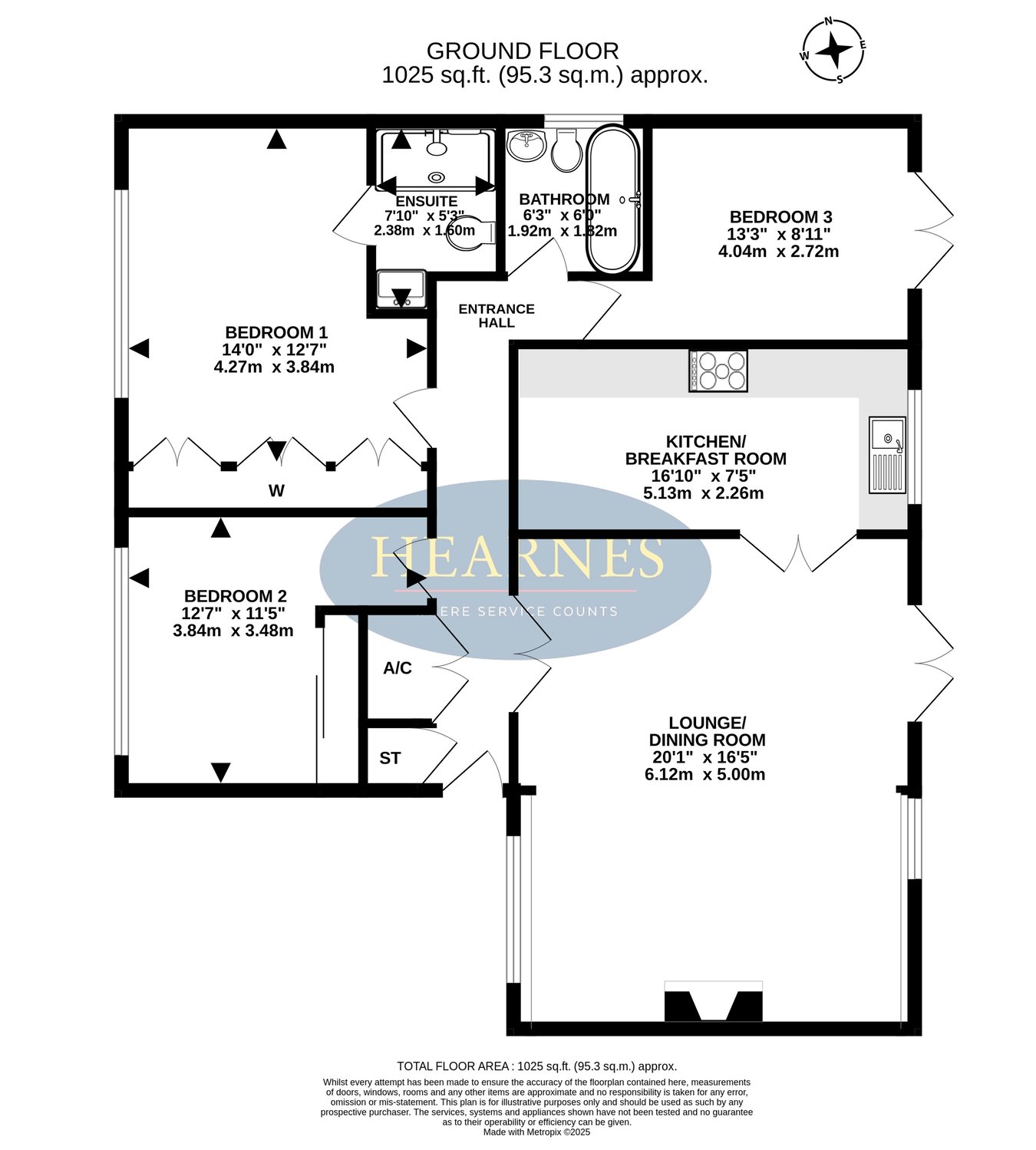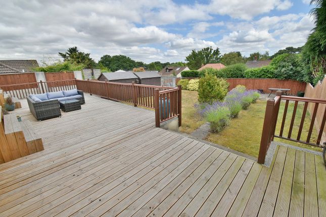 This immaculately presented, extended and modernised three double bedroom, one bathroom, one shower room detached bungalow has a 55ft secluded rear garden and driveway providing generous off road parking.This light and spacious bungalow has undergone a number of improvements and has well planned accommodation which overlooks a generous sized and fully enclosed rear garden. An added benefit is that the property now comes to the market offered with no onward chain.• A three double bedroom extended and detached bungalow with a 55ft secluded garden and no chain• 21ft Spacious entrance hall with double doors leading through into the lounge/dining room and a cupboard housing a wall mounted gas fired boiler• 21ft Impressive and dual aspect lounge/dining room• Lounge area enjoys views of the front and rear garden and has a feature fireplace• The dining area has double doors leading through into the hallway, double doors leading through into the kitchen, double glazed French doors leading out into the garden• 16ft Modern kitchen/breakfast room beautifully finished with extensive granite worktops with matching upstands with inset sink and an excellent range of integrated appliances to include Bosch five ring gas hob with extractor canopy above and double oven below, integrated dishwasher, washing machine and fridge/freezer along with a granite breakfast bar, tiled floor and double glazed window overlooking the rear garden• Bedroom one is a generous size double bedroom benefitting from three fitted double wardrobes• En-suite shower room finished in a stylish white suite incorporating a good size walk-in shower area, contemporary wash hand basin with vanity storage beneath, WC, fully tiled walls and flooring• Bedroom two is also a generous size double bedroom benefitting from fitted wardrobes• Bedroom three is also a double bedroom currently used as an office with double glazed French doors leading out into the rear garden• Family bathroom finished in a stylish white suite incorporating a shower/bath with shower over, WC with concealed cistern, wall mounted wash hand basin, fully tiled walls and flooringcouncil tax band: D EPC rating: DOutside• The rear garden is a superb feature of the property as it offers an excellent degree of seclusion, is fully enclosed and measures approximately 55ft x 40ft• Adjoining the rear of the property there is a large timber decked seating area with a side path leading up to a side gate, steps lead down to a good size area of lawn where there are two useful timber storage sheds. At the far end of the garden there is a paved patio• A front block paved driveway provides generous off road parking• The front garden has been landscaped for ease of maintenance• Further benefits include double glazing, UPVC fascias & soffits, a gas fired heating system and the property now comes to the market offered with no onward chainFerndown offers an excellent range of shopping, leisure and recreational facilities. Ferndown’s town centre is located approximately 1.5 miles away.Agents notes: The heating system, mains and appliances have not been tested by Hearnes Estate Agents. Any areas, measurements or distances are approximate. The text, photographs and plans are for guidance only and are not necessarily comprehensive. Whilst reasonable endeavours have been made to ensure that the information in our sales particulars are as accurate as possible, this information has been provided for us by the seller and is not guaranteed. Any intending buyer should not rely on the information we have supplied and should satisfy themselves by inspection, searches, enquiries and survey as to the correctness of each statement before making a financial or legal commitment. We have not checked the legal documentation to verify the legal status, including the leased term and ground rent and escalation of ground rent of the property (where applicable). A buyer must not rely upon the information provided until it has been verified by their own solicitors.