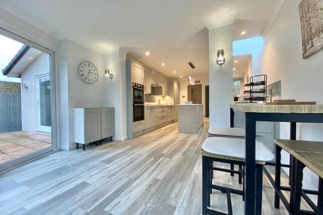 As soon as you enter this stunning home you become immediately aware of the exacting level of finish and quality of workmanship. The hallway affords independent access to all of the rooms and the layout of the hall allows for the bedrooms accommodation to be positioned separately from the living accommodation. The main reception room is a tremendous size, and this allows for both a separate living and dining area and the room is flooded with light from large doors that open to the rear garden.The kitchen is simply stunning and has been fitted with a comprehensive range of units and quality integrated appliances to include a double oven, induction hob and dishwasher. A central island unit is an excellent space for in kitchen entertaining and the open plan aspect of this room leads to a secondary reception area which is perfect for casual dining and lounging. This area has full windows and a door that opens to the rear garden.There are two double bedrooms, both of which have plentiful space for a full bank of wardrobes and the third bedroom has been enlarged to create more space for use as a bedroom or potentially a perfect home office. The bedrooms are serviced by a beautiful, spacious bathroom which has a double shower and a full width vanity unit that provides plentiful storage and incorporates a modern sink unit and concealed w/c.Outside the property has a large block-paved driveway with a turning area that provides plentiful off-street parking. The driveway leads to the garage which also has a pedestrian door to the front to allow for easy access. To the rear, there is an entertaining patio that runs the full width of the property and leads to the main garden that is laid to lawn. The garden is surrounded by mature planting and enclosed with timber fencing.No stone has been left unturned with the renovations of the property – from new kitchens and bathrooms, internal alterations, new doors, flooring and a host of other improvements the property is presented in absolutely first-class order.Tenure: FreeholdCouncil Tax Band: E (bcp Council)Lower Parkstone is one of Poole’s most sought after locations, situated between Poole and Bournemouth and is a short distance from Ashley Cross, Lilliput and Canford Cliffs village. Close by amenities include schools, doctors’ surgeries, restaurants, bars and Parkstone train station, giving mainline access to London Waterloo. The beaches of Sandbanks and Canford Cliffs are a short distance away.