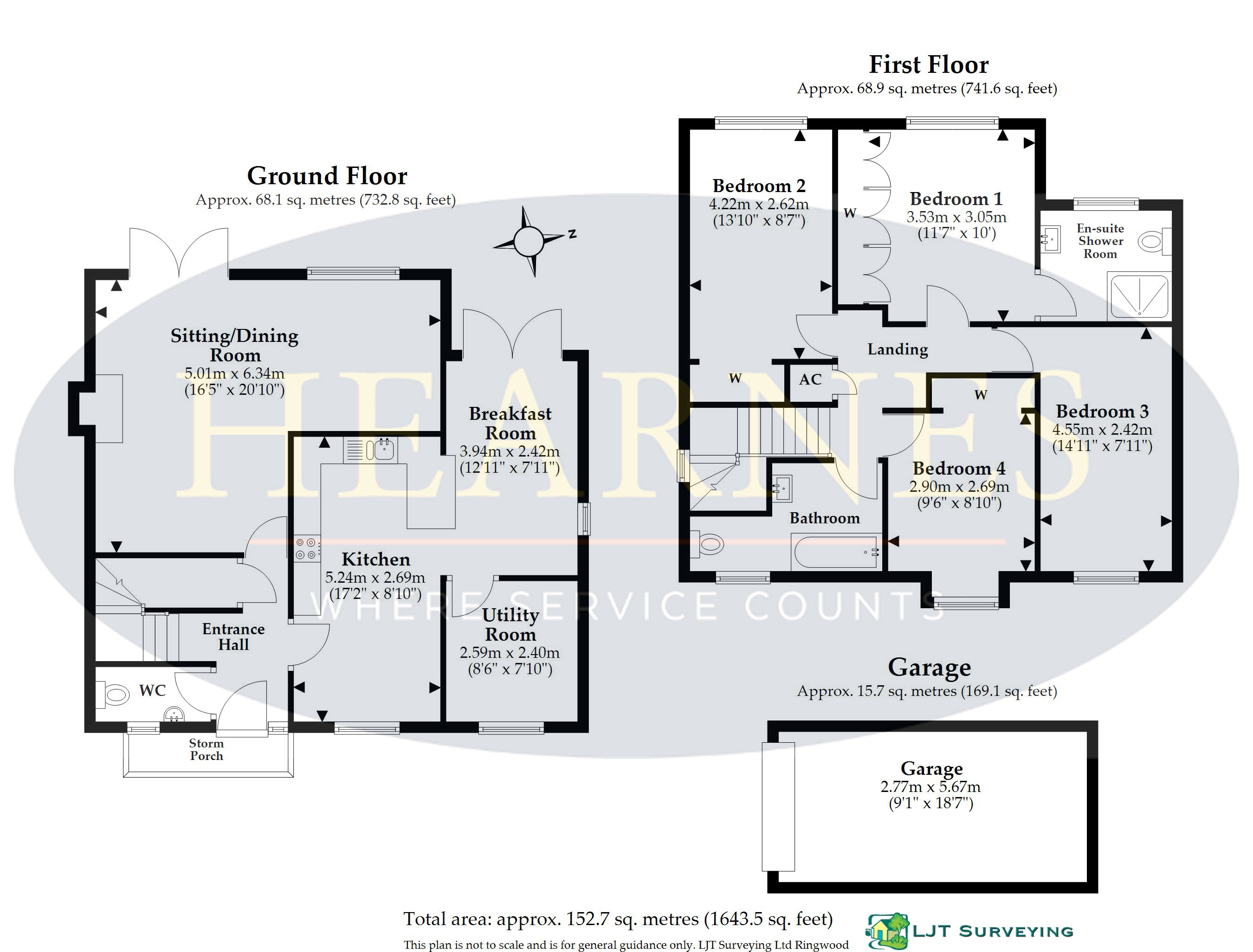 An extended, private, well-proportioned and immaculately presented four double bedroom, two reception room and two bathroom detached family home set on a generous size elevated plot with a garage and off-road parking, with private access to Cannon Hill plantation.- Entrance hall with high quality laminate flooring with solid wooden doors and understairs storage- Spacious open plan kitchen/living/dining room including a separate utility room/study with double glazed French doors opening onto the garden. The kitchen has a breakfast bar and is finished in a range of high gloss white units with a complementary wooden worktop with oven and combination microwave, four ring gas hob and hood and integrated dishwasher and fridge freezer- Separate utility room/study with front aspect window overlooking the front garden with plumbing for washing machine and tumble dryer- Good sizeLShaped twin aspect lounge/diner with double glazed French doors opening onto the patio and an open fire- Separate cloakroom with wall mounted wash hand basin and WC- Four double bedrooms: Two with garden views and three with built-in wardrobes- Recently refurbished generous size ensuite shower with Bluetooth back lit mirror, walk-in shower, WC and large wall mounted wash hand basin set in a vanity unit- Recently refurbished family bathroom with double ended bath and shower over, WC, Bluetooth back lit mirror, heated towel rail and a wash hand basin set in a vanity unit- Outside: The property is set back from the road in a private cul-de-sac location, shared by two other homes, offering a very private feel. The well-proportioned, south-west facing garden offers a patio area and decked area ideal for alfresco dining and direct access to Cannon Hill plantation. The front garden is currently used to grow vegetable and fruit. There is also a garage with up and over door.This sought after area of Colehill offers excellent schooling and local shops, parish church, library and hairdresser. The thriving town of Wimborne is approximately 2.5 miles away offering more extensive shopping and leisure facilities as well as numerous restaurants and public houses.Council tax band: E EPC rating: Tbcagents notes: The heating system, mains and appliances have not been tested by Hearnes Estate Agents. Any areas, measurements or distances are approximate. The text, photographs and plans are for guidance only and are not necessarily comprehensive. Whilst reasonable endeavours have been made to ensure that the information in our sales particulars are as accurate as possible, this information has been provided for us by the seller and is not guaranteed. Any intending buyer should not rely on the information we have supplied and should satisfy themselves by inspection, searches, enquiries and survey as to the correctness of each statement before making a financial or legal commitment. We have not checked the legal documentation to verify the legal status, including the leased term and ground rent and escalation of ground rent of the property (where applicable). A buyer must not rely upon the information provided until it has been verified by their own solicitors.EPC rating: C.