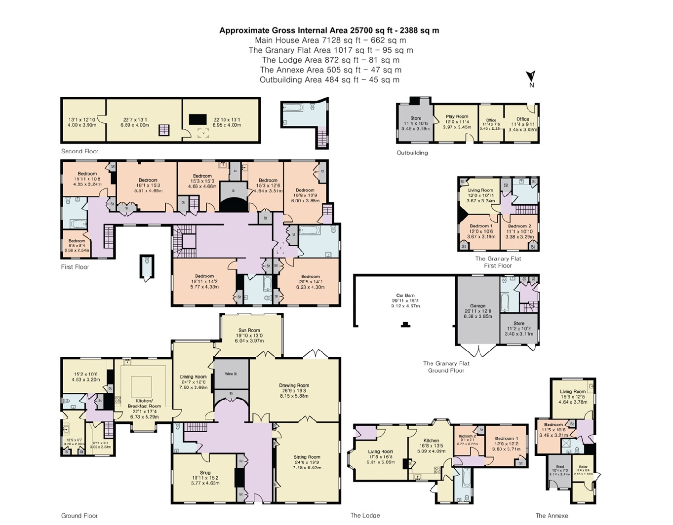 A beautiful 100 acre Estate in a wonderful elevated setting with views, cottages and significant equestrian facilities.DescriptionThis wonderful Country Estate is offered to the market for the first time in approximately 35 years.A beautiful Estate in a wonderful elevated setting with views over the Ashdown Forest with its Winnie the Pooh Bridge and tea rooms nearby, 104 acres, cottage, annexe, granary flat, separate office/playroom, significant equestrian facilities including stabling, barns and an indoor arena.Top Hill Farm is a delight. The main house is generously proportioned, and being un-Listed can be adapted to suit the buyer’s needs (subject to the usual consents).The property sits up a long private driveway in an excellent slightly elevated position with lovely views to the rear. The house and facilities sit well within the whole, away from neighbours. The accommodation takes advantage of beautiful views to the rear and offers well-proportioned accommodation ideal for family living. The ground floor accommodation radiates from a central entrance hallway and includes a sitting room, drawing room, snug, formal dining room, kitchen breakfast room and a study - all dual aspect rooms. The first floor offers eight bedrooms and three bathrooms, with a fourth en suite bathroom on the second floor.Outside is the office/playroom. An ideal space to keep work separate from home.For those with an equine interest, there are excellent facilities including significant stabling, 3,866sqft barn and a recently rebuilt indoor riding arena.In total the land amounts to about 104 acres, predominantly of fenced paddocks, but with beautiful mature gardens which surround the main house, including a partially walled water garden and a yew-hedge enclosed and private pool area. In the spring the woodlands become home to a sea of bluebells.The property also provides three further dwellings/accommodations including a two bedroom detached lodge cottage, a granary flat above the garaging and a separate one bedroom annexe.Garaging for 6 cars.LocationTop Hill Farm is located in an Area of Outstanding Natural Beauty about 2.2 miles via a small country lane from the charming village of Withyham which has a well-regarded primary school, church, village hall and cricket club.Ashurst mainline railway station is just 2.5 miles away, with direct services to London Bridge, whilst Tunbridge Wells (7.7 miles) has services to London Bridge, Waterloo East, Charing Cross and Cannon Street.Groombridge (4.6 miles) and Hartfield (3.4 miles) both offer a good choice of local amenities including village schools. Tunbridge Wells with its excellent cultural, leisure and shopping opportunities is about eight miles to the north. The historic Ashdown Forest is about 7 miles. The area is superb for walking and cycling, with access to the High Weald Landscape Trail nearby.More comprehensive amenities are available in Crowborough (about 6 miles) and East Grinstead (about 8.9 miles).Private and state schools: St Michael’s Primary School in Withyham, preparatory schools include Holmewood House (Langton Green), Rose Hill (Tunbridge Wells), Brambletye and Michael Hall Steiner Waldorf (Forest Row). Independent senior schools in Tunbridge Wells, Sevenoaks, Mayfield and Eastbourne.Communications: The A22 provides access to the M25, London and the suburbs, the south coast, Gatwick and Heathrow airports and the Channel Tunnel Terminus.Square Footage: 9,181 sq ftAcreage:104.45 AcresDirectionsAdditional InfoWealden District Council - Council Tax BandsTop Hill Farm = HThe Lodge = DThe Bungalow = DEnergy Performance Certificates:Top Hill Farm - EThe Lodge - E