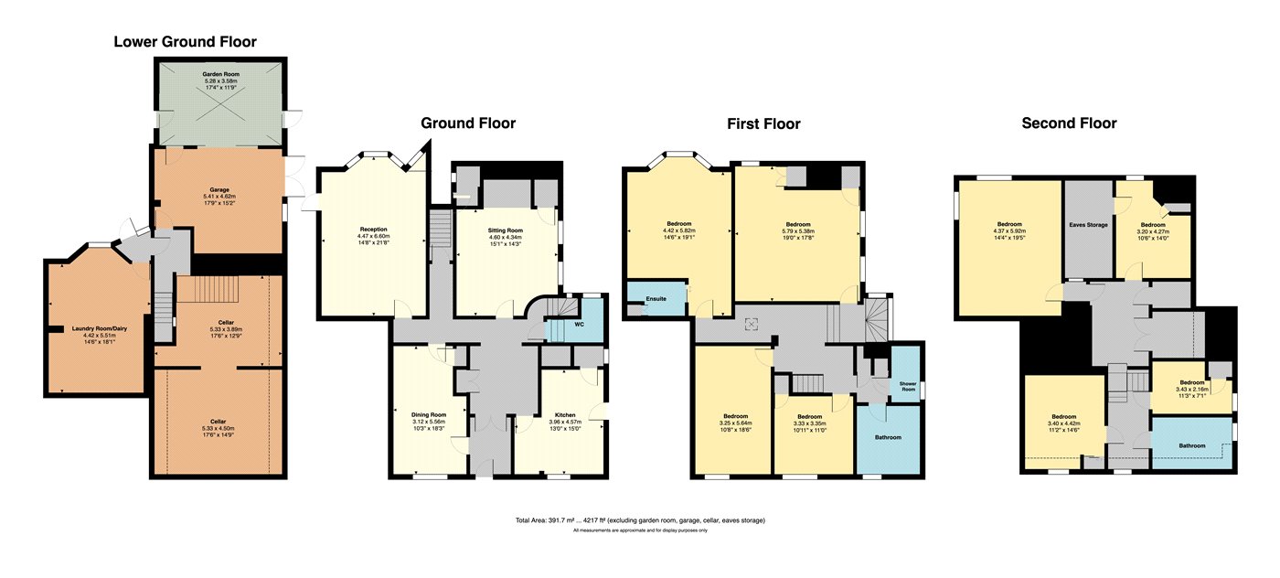 A real gem of a property, this distinctive grade II listed property is in a prime central position in the quaint town of Rye. Situated in a Conservation area that is renowned for its fine period architecture and medieval history.With over 4,000 square feet, of accommodation situated over three floors, there are plenty of historical references and original character throughout this eight bedroom property as well as plenty of space and flexibility for any family.The property has considerable architectural merit comprising the major portion of an early sixteenth century building with a Georgian façade, an unusual gabled rear elevation and a large vaulted medieval cellar.The structure is timber framed with a fine mathematical-tile front elevation under a peg tile roof. The property, has generous ceiling heights in all the principal rooms, and a wealth of fine period features including Elizabethan and Georgian panelling and enjoys the benefit of a large secluded garden, charming views and a private drive leading to a substantial garage.Admire the Georgian frontage with its attractive and symmetrical sash windows and enter through the part glazed front door which opens into a panelled reception hall divided by glazed doors with exposed timber framing, a Georgian curved display cupboard with scalloped shelves and oak floorboards. From the hallway enter the well-proportioned panelled drawing room which has a wide bay window overlooking the rear garden, an Adam style fireplace, fine oak floorboards and a part glazed door with an external wrought iron staircase leading down to a sheltered terrace.The sitting room has exposed oak beams, an inglenook fireplace with a wood burner and fitted cupboards to either side. The dining room, which overlooks the High Street, has original window shutters and a moulded ceiling beam. The kitchen has double aspect windows and a door for a side entrance. This kitchen/breakfast room has a fitted range of worktops, cupboards and shelves, a stainless-steel double drainer sink unit, electric cooker point, quarry tiled floor and pantry. There is a downstairs cloakroom with a quarry tiled floor.At the rear of the hallway is the panelled staircase to the upper floors as well as stone steps leading down to a lower hall with a flagstone floor and doors which lead through to the garden, garage and former laundry room which has a window to the rear and an old brick floor. There is a lower hall which has brick steps leading to a barrel-vaulted medieval cellar with slate wine racks.On the first floor the main bedroom has a panelled bay window overlooking the garden and with delightful views over the surrounding countryside, there is a fine Georgian fireplace and an en suite shower room. The second bedroom is a double aspect room with lovely views overlooking the rear garden, with exposed studwork, wide oak floorboards and an open brick fireplace. On this floor there are two further double bedrooms a family bathroom and a shower room.Stairs lead to the second floor where there are a further four attic bedrooms, two have rear garden views, and another bathroom.Outside, to the right of the property there is a gated private drive which leads to the parking area and substantial garage with timber double doors, a vaulted ceiling with exposed timber framing and a wide opening to an integral garden room/studio with a glazed roof, old brick floor and doors to the driveway and main garden.Immediately to the rear of the house is a delightful stone paved terrace with mature climbing plants and an arch door leads to a brick garden store.The terrace steps lead onto a pleasant and sheltered part walled formal garden which has many fine and established specimen trees including acers, bay and magnolia. There are plenty of well stocked borders with a large collection of matures plants and shrubs. The garden is approximately just under a third of an acre and recently hosted a family wedding, so plenty of well-kept lawn space to enjoy too.Services Mains electricity, water, gas and drainage. Council Tax Band GThe property is in the High Street of Rye with its beautifully preserved town centre, renowned for its cobbled streets, medieval buildings, and unique charm. There is much to enjoy in Rye, enjoy a coffee or lunch in one of the town’s many independent cafés, or have dinner in one of the variety of restaurants, or enjoy an evening at the cinema in the charming Kino cinema or visit the popular Jazz club. There are local galleries, antique shops and boutiques, local supermarkets, a post office, and pharmacies.Families benefit from close proximity to Rye Community Primary School and Rye College, both of which are within walking distance.Train connections are excellent, there are local train services, in one direction to Eastbourne and in the other to Ashford International, and from there the high speed train to London St Pancras takes just 39 minutes.Sporting facilities in the area include golf at Rye and Lydd, sailing on the south coast and nearby are plenty of coastal or countryside walks, Rye nature reserve is a great circular walk with plenty to see.