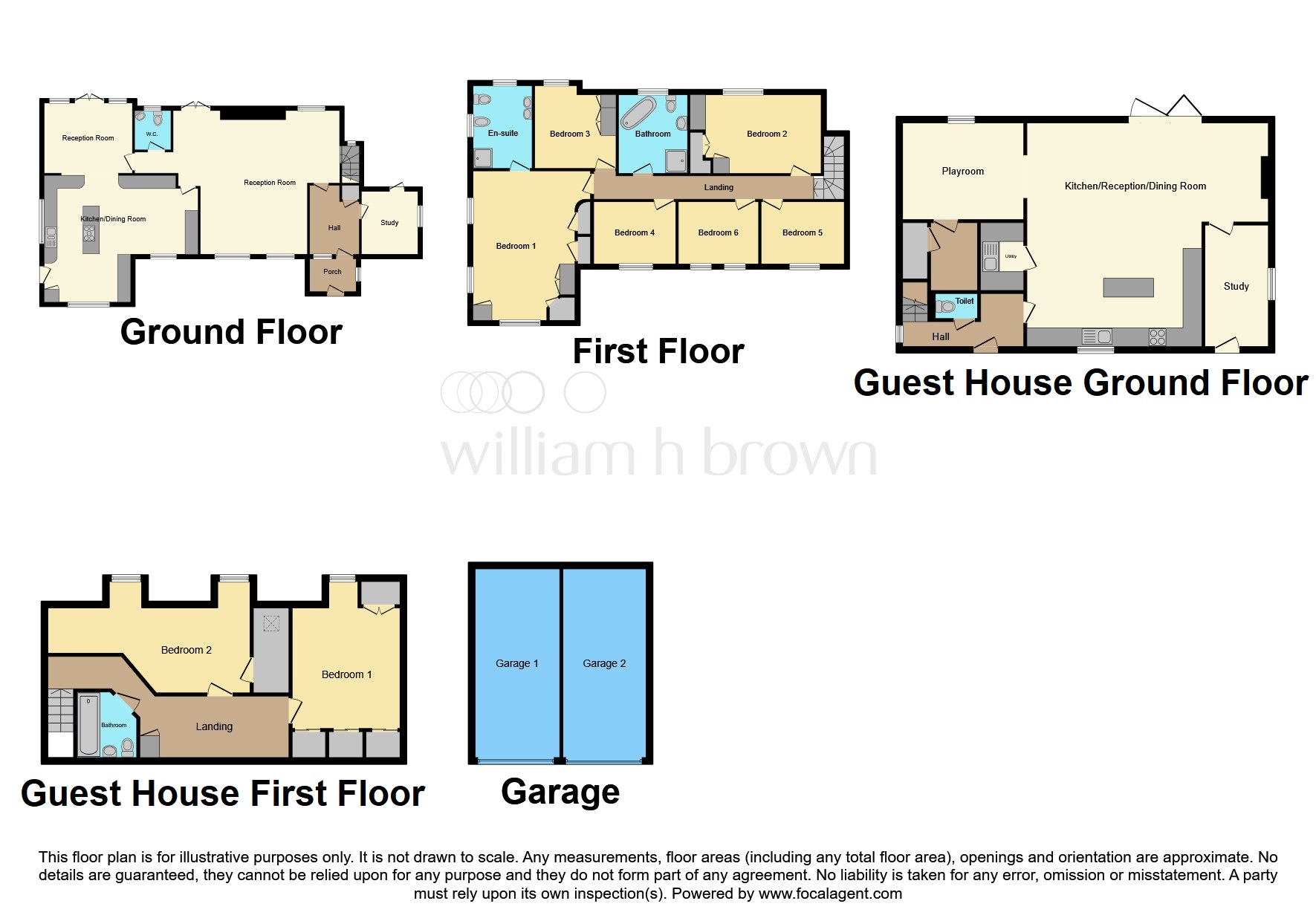 SummaryA substantial six bedroom home with a separate detached two bedroom guest house, set within ground of circa 1.5 acres of well presented garden within a secluded position in The Marshes, East of Southminster.DescriptionMain HouseEntrancePart glazed door to :-Entrance PorchDouble glazed UPVC window to side, double doors to :-Entrance HallUnder stairs storage cupboard, radiator, doors to :-Study 9' 4" x 8' 5" ( 2.84m x 2.57m )Double glazed UPVC window to side, wall mounted combi boiler.Lounge 24' 5" x 21' 5" max ( 7.44m x 6.53m max )Double glazed UPVC windows to front and rear plus French doors opening to the garden, centrepiece inglenook brick fireplace housing wood burner, stairs rising to first floor, radiators, doors to :-CloakroomDouble glazed UPVC window to rear, white suite comprising low level WC and corner basin, fully tiled walls.Garden Room 13' 2" x 10' 9" ( 4.01m x 3.28m )Double glazed UPVC window to side and rear plus French doors opening to the garden, radiator, open to :-Kitchen Diner 22' 10" x 18' 8" max ( 6.96m x 5.69m max )Double glazed UPVC window to front and side plus stable style door to side accessing the garden, fitted kitchen comprising enamelled double sink set in granite work surfaces with tiled splashbacks and range of eye and base level units, central granite topped island with space for range style cooker, space for American style fridge freezer, radiators, door returning to lounge.First FloorLandingDoors to :Bedroom One 18' 8" max x 12' 10" plus recess ( 5.69m max x 3.91m plus recess )Double glazed UPVC window to front and side, range of fitted cupboards and dressing table, radiator, door to :-En Suite 10' 9" x 7' 4" ( 3.28m x 2.24m )Double glazed UPVC windows to side and rear overlooking the garden, white suite comprising double shower, bidet, low level WC, twin vanity basins, fully tiled walls, chrome heated towel rail.Bedroom Two 14' 2" x 10' ( 4.32m x 3.05m )Double glazed UPVC window to rear overlooking the garden, range of fitted cupboards, radiator.Bedroom Three 10' 9" x 10' 5" max ( 3.28m x 3.17m max )Double glazed UPVC window to rear, fitted wardrobes, radiator.Bedroom Four 10' 4" x 7' 10" ( 3.15m x 2.39m )Double glazed UPVC window to front, radiator.Bedroom Five 10' 4" x 7' 10" ( 3.15m x 2.39m )Double glazed UPVC window to front, radiator.Bedroom Six 10' 1" x 7' 9" ( 3.07m x 2.36m )Double glazed UPVC window to front, radiator.Bathroom 9' 11" x 7' 10" ( 3.02m x 2.39m )Double glazed UPVC window to rear, white suite comprising freestanding bath, separate shower, low level WC and vanity basin, fully tiled walls, chrome heated towel rail.Second HouseEntrancePart glazed door to :-Entrance HallStairs rising to first floor, doors to :-Lounge / Kitchen / Dining Room 22' 6" x 22' max ( 6.86m x 6.71m max )Double glazed UPVC window to front and bi-fold doors to rear opening onto the garden, centrepiece fireplace, modern fitted kitchen comprising sink set in roll top surfaces with range of eye and base level units, range of built in appliances, space for American style fridge freezer, central roll top island breakfast bar, open to playroom, doors to :-Study 12' 2" x 6' 2" ( 3.71m x 1.88m )Double glazed UPVC window to side and door to front accessing the driveway.Utility RoomSink set in work surfaces with tiled splashbacks and range of eye and base level units, space for appliances.Playroom 12' 7" x 10' 2" ( 3.84m x 3.10m )Double glazed UPVC window to rear, large built in storage cupboard which could be converted to an en suite in order to use this room as a bedroom.CloakroomWhite suite comprising low level WC and hand basin.First FloorLandingBuilt in storage cupboard, doors to :-Bedroom One 11' 11" plus recess x 10' 11" ( 3.63m plus recess x 3.33m )Double glazed UPVC window to rear, fitted wardrobes with sliding mirrored doors, radiator.Bedroom Two 20' 6" x 8' 1" max ( 6.25m x 2.46m max )Double glazed UPVC windows to rear, large built in cupboard which could be converted to an en suite, radiator.BathroomModern white suite comprising panel bath with shower over, low level WC and vanity basin, fully tiled walls.OutsideFrontThe property is approached via a long driveway with gated entrance leading to a large forecourt driveway with ample parking for both properties leading to the detached double garage, open to :-GardensWrap around gardens comprising main lawn bordered by tall trees, with raised terrace patio seating area abutting the property and a range of mature shrubs.GarageDetached double garage with two up and over doors.1. Money laundering regulations: Intending purchasers will be asked to produce identification documentation at a later stage and we would ask for your co-operation in order that there will be no delay in agreeing the sale.