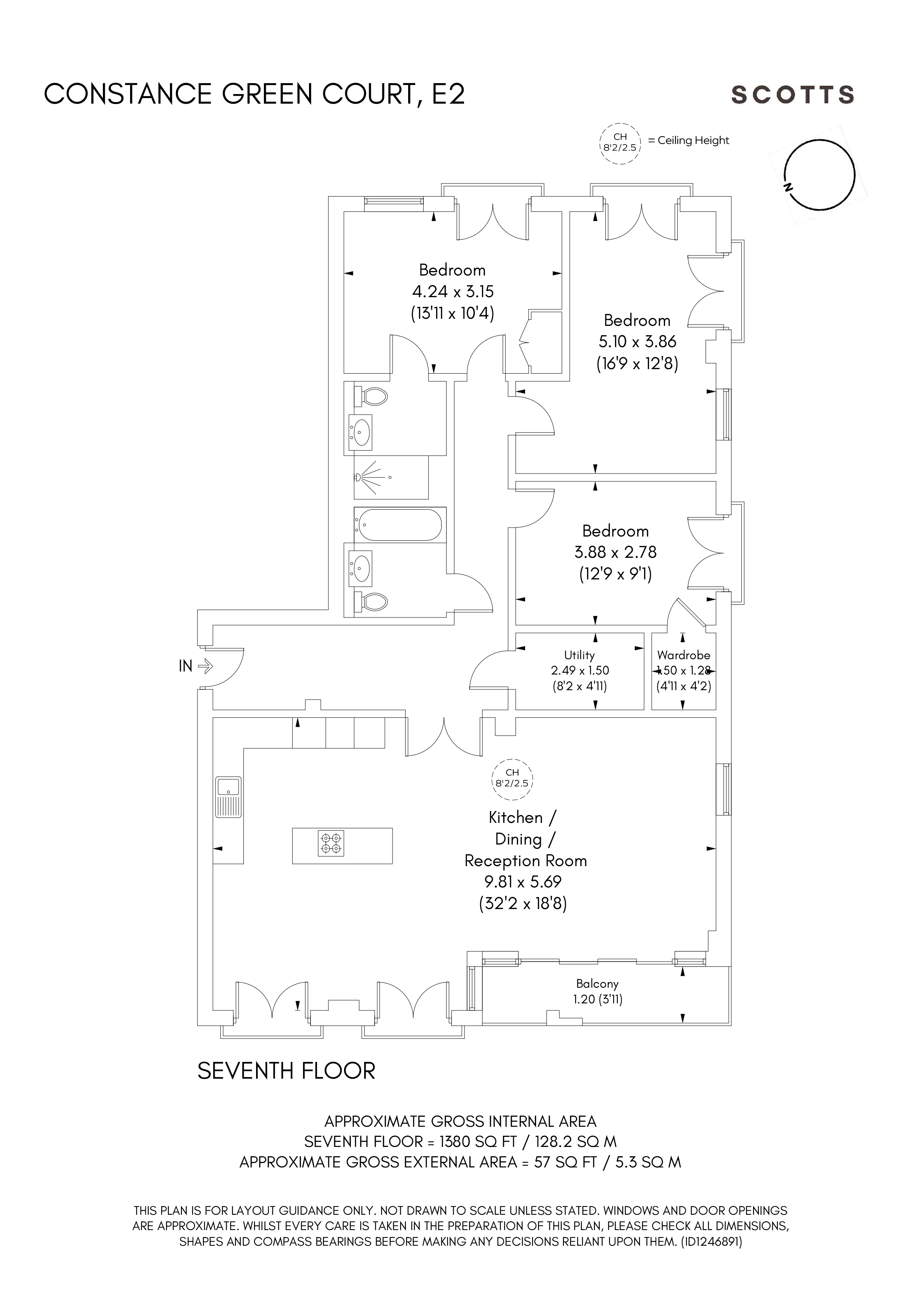 A beautifully composed three-bedroom apartment with panoramic views over Hackney City Farm and the London skyline, set on the seventh floor of this modern architectural development on Goldsmiths Row, with underground parking.InsideSpanning approximately 1,380 sq ft, this expansive apartment has been designed with a strong sense of light, proportion, and material quality throughout. The heart of the home is a generous open-plan kitchen, dining and reception space, framed by floor-to-ceiling glazing and full-width sliding doors that open onto a private balcony overlooking the treetops of Hackney City Farm & Haggerston Park.The bespoke kitchen features sleek gloss cabinetry, Siemens appliances, an induction hob, and integrated wine fridge, finished with white composite worktops and oak herringbone flooring. The adjoining living area is a study in contemporary comfort — perfectly zoned for dining, lounging, and entertaining, with natural light flooding the space from multiple aspects.Three well-proportioned bedrooms are arranged quietly away from the main living area, each benefitting from generous glazing and excellent natural light.The principal bedroom enjoys dual aspect walls of windows framing far-reaching city and Canary Wharf views one way and across to Stratford and the iconic ArcelorMittal Orbit on the other side. The second and third bedrooms are equally bright and versatile — ideal for use as guest rooms, a home office, or studio.Two bathrooms are finished in calming grey tones with large-format porcelain tiling, illuminated mirrors, and sleek modern fittings. A separate utility room provides additional storage and laundry space.Neighborhood & connectionsConstance Green Court sits in an enviable position on Goldsmiths Row, directly overlooking Hackney City Farm and just moments from the open green expanse of Haggerston Park and Columbia Road Flower Market.The independent cafés, restaurants, and creative studios of Broadway Market, Shoreditch, and London Fields are all within easy reach, offering one of East London’s most vibrant local lifestyles.Drinking and dining options are abundant with one of our favourite roasts in London on your doorstep at the Marksman. Head over the road for killer cocktails at Equal Parts or find trusted local favourites such as Campania and Morito just a short walk away.Transport connections are excellent: Hoxton Overground Station is a short walk away, providing direct links to Shoreditch High Street, Highbury & Islington, and Stratford, while frequent buses along Hackney Road and Kingsland Road connect swiftly to the City and West End.
