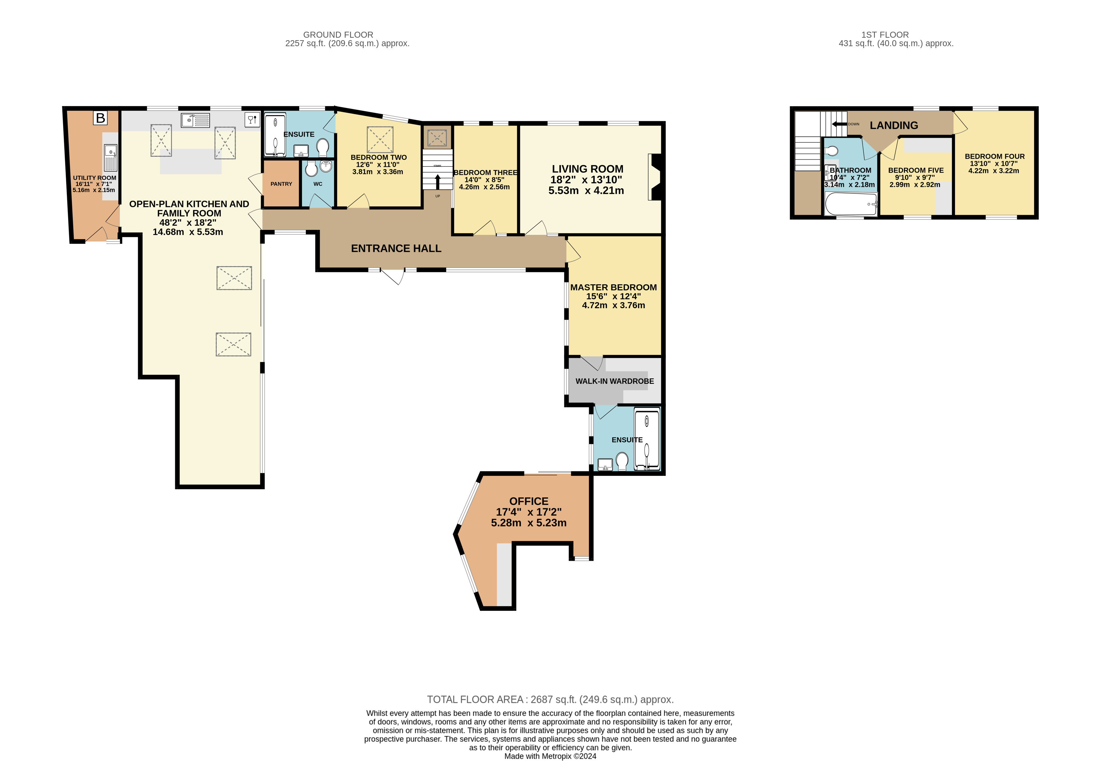 A unique five bedroom detached house, in a secluded spot in Altrincham town centre. This property offers off-road parking for up to five vehicles, with a car port behind electric gates, an enclosed low-maintenance garden; a home office in the grounds, a separate utility room and three bathrooms.Summary description This stunning, detached five-bedroom property is truly one of a kind, situated on a large, secluded plot just a short walk from Altrincham town centre. It perfectly blends spacious living, privacy, and style, making it ideal for families and those who love to entertain.The centerpiece of the home is the expansive open-plan kitchen and family room, which creates a warm and inviting space for gatherings and daily living. Adjacent to this area is a generous living room, perfect for relaxing or hosting guests.The property features a luxurious master suite that includes a walk-in wardrobe and an en-suite bathroom, offering a private and serene retreat. Bedroom two also has its own en-suite, while the remaining three bedrooms are generously sized and share access to a well-appointed family bathroom.Surrounded by mature landscaping, this property enjoys a high level of privacy and a peaceful ambiance, with lush surroundings enhancing its secluded charm. With an ideal location close to Altrincham's amenities and transport links, this home offers a rare combination of convenience, space, and tranquility.Family room 48' 1" x 18' 1" (14.68m x 5.53m) The centrepiece of this remarkable home is the stunning open-plan kitchen and family room. A vast, beautifully designed space that seamlessly blends style and functionality. The room is filled with natural light from a large, wood-framed double-glazed window on the side, two rear-facing uPVC double-glazed windows, and oversized sliding doors that open directly onto the patio. Four Velux skylights add additional brightness from above, creating a warm, inviting atmosphere throughout the day.Architectural features such as vaulted ceilings with exposed beams add a touch of rustic charm, while recessed spotlights provide soft, ambient lighting for the evenings. Luxury wood-effect tiled flooring combines the look of natural wood with durability and easy maintenance, giving the room a sophisticated yet practical foundation.The kitchen itself, positioned at the rear of the space, is both elegant and highly functional. It boasts a range of base and eye-level storage units, topped with marble work surfaces for a touch of luxury. A central island adds ample workspace and seating, making it ideal for family meals or casual gatherings. The kitchen is complete with an integrated dishwasher, space for a large fridge-freezer, and a dedicated area for a range-style oven, catering to all culinary needs.This open-plan kitchen and family room truly serves as the heart of the home, offering a versatile and stylish setting for cooking, dining, and entertaining alike.Accessed from the kitchen one will find a utility room, with space and plumbing for a washer and dryer, the combi boiler and ample storage space with an array of wall mounted shelving, from this room a door leads to the side exterior, where one can access two discreet and practical external storage sheds. Also accessed from the kitchen area is a larder, the larder allows for ample food storage space with wall mounted shelving on three walls.Living room 18' 1" x 13' 9" (5.53m x 4.21m) The cozy living room, accessed directly from the entrance hall, is a charming retreat with a warm and inviting atmosphere. A striking exposed brick feature wall serves as the room's focal point, housing a built-in multifuel stove set on a stone hearth, perfect for creating a welcoming ambiance. Flanking the stove, custom-built bookcases offer both character and practical storage, adding to the room's intimate feel.Natural light pours in through two rear-facing uPVC double-glazed windows, highlighting the soft carpeted flooring and the rustic charm of the exposed ceiling beams. The room is equipped with two pendant light fittings, a double-panel radiator for added warmth, and convenient television points, making it an ideal space for relaxing with family or unwinding after a long day.Downstairs WC 3' 8" x 5' 7" (1.12m x 1.72m) A convenient downstairs WC located off the entrance hall. This room offers wood effect tiled flooring; part tiled walls; recessed spotlighting; a double panel radiator; a low-level WC; and a wall mounted hand wash basin.Master bedroom 15' 5" x 12' 4" (4.72m x 3.76m) The master bedroom is accessed at the far end of the entrance hall at the opposite end of the house to the family room. This is a generous bedroom which allows access to a walk-in wardrobe and en suite shower room beyond. This bedroom is fitted with carpeted flooring; a pendant light fitting; a television point; two timber framed double glazed windows to side aspect with fitted horizontal blinds; and two double panel radiators.The dressing room which is accessed from the master bedroom is also fitted with carpeted flooring; a pendant light fitting; a timber framed double glazed window with fitted horizontal blinds to the side aspect; a double panel radiator and a range of fitted wardrobes on three walls.En suite shower room 9' 2" x 7' 6" (2.80m x 2.30m) The en suite shower room offers a large walk-in shower with chrome thermostatic shower system over; a low-level WC; a wall mounted hand wash basin; two double glazed timber framed windows with horizontal blinds to the side aspect; a chrome wall mounted heated towel rail; recessed spot lighting; wood effect tiled flooring; an extractor fan and part tiled walls.Bedroom two 12' 5" x 11' 0" (3.81m x 3.36m) The second double bedroom is also located off the entrance hall, with a double glazed window with fitted roman blind to the rear aspect, in addition to a large Velux skylight. This room offers carpeted flooring; a pendant light fitting; a double panel radiator; and a door leading to the en sui