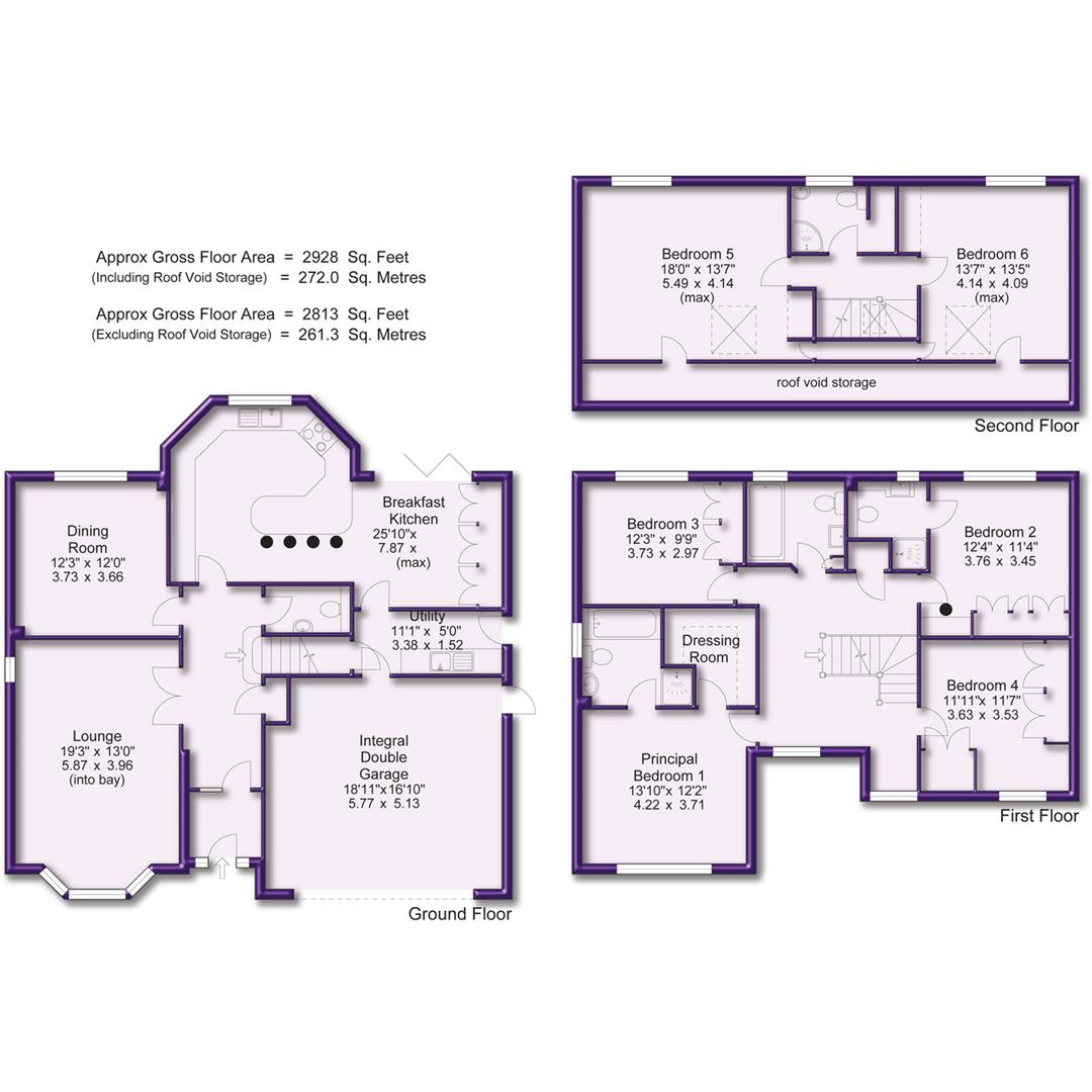 A superbly proportioned, updated and remodelled detached family home position on A desirable cul-de-sac, with excellent schools and bollin walks on the doorstep. 2928SQFTPorch. Hall. WC. Lounge. Dining Room. Breakfast Kitchen. Utility Room. Six Bedrooms. Four Bath/Shower Rooms. Driveway. Double Garage. Sunny Garden. No Chain!A superbly proportioned, updated and remodelled modern Detached family home positioned on this most popular small development just off Grange Road in Bowdon with Bowdon Church School literally on the doorstep and with the Bollin School being within short walking distance. In addition, there are Bollin Valley walks nearby and close to both Hale Village and Altrincham Town Centre, its facilities, the Metrolink and popular Market Quarter.The well presented property is arranged over Three Floors extending to some 2928 square feet providing an Entrance Hall, WC, Lounge, Dining Room, Open Plan Breakfast Kitchen and Utility Room to the Ground Floor and there are Six Double Bedrooms served by Four Bath/Shower Rooms to the Two Upper Floors.Externally, there is a paved Driveway providing ample off road parking, with EV charging point, returning in front of the Integral Double Garage and to the rear the Gardens are South West facing with lawned and patio areas.This property is offered for sale with no chain and could be moved into with a minimum of fuss.Comprising:Enclosed Porch with tiled floor. Entrance Hall with spindle balustrade staircase rising to the First Floor Landing. Doors provide access to the Ground Floor Living Accommodation. Coved ceiling.Ground Floor WC fitted with a contemporary white suite and chrome fittings, providing a wash hand basin and WC. Tiling to the walls. Extractor fan.Double doors open to a superbly proportioned Lounge with angled bay to the front elevation. Additional window to the side elevation. Cast iron, multi fuel burning stove with tiled hearth. Solid wood flooring. Coved ceiling.Dining Room with windows enjoying views over the gardens to the rear. Solid wood flooring. Coved ceiling.Open Plan Breakfast Kitchen with clearly defined areas with bi-fold doors overlooking and providing access to the patio area and gardens beyond. The Kitchen Area is fitted with an extensive range of base and eye level units with worktops over, with integral sink and drainer with mixer tap over. Integrated appliances include a double oven, combination microwave oven, induction hob with extractor fan over, two dishwashers and space for an American style fridge freezer. The units incorporate a peninsular unit with space for a breakfast bar stools. Window to the rear elevation providing views over the Gardens.Utility Room fitted with a range of base and eye level units with worktops over, inset into which is a stainless steel sink and drainer unit with mixer tap over and tiled splashback. Space and plumbing suitable for a washing machine. Wall mounted gas central heating boiler housed within the units. Door to the side elevation. Access to useful understairs storage with built in shelving. Tiled floor. Courtesy door to the Integral Double Garage.First Floor Galleried Landing with access to Four Double Bedrooms served by Three Bath/Shower Rooms. Two windows to the front elevation. A staircase rises to the Second Floor Landing. Built in cupboard housing the hot water tank.Principal Bedroom One with window to the front elevation. Walk in wardrobe with built in hanging rails and shelving.This room enjoys an En Suite Bathroom fitted with a white suite and chrome fittings providing a double ended bath with shower attachment over, enclosed shower cubicle with thermostatic shower and glazed sliding doors, wash hand basin with storage below and WC. Extensive tiling to the walls and floor. Opaque window to the side elevation. Extractor fan.Bedroom Two with window to the rear elevation enjoying views over the gardens to the rear. Built in wardrobes and dressing table provide excellent hanging and storage space.This room enjoys an En Suite Shower Room fitted with a contemporary white suite and chrome fittings providing an enclosed shower cubicle with thermostatic shower and dual attachments, wash hand basin with built in storage and WC. Tiled walls. Opaque window to the rear elevation. Extractor fan.Bedroom Three with window to the rear elevation enjoying views over the gardens. Built in wardrobes provide excellent hanging and storage space.Bedroom Four with window to the front elevation. Built in and fitted wardrobes provide excellent storage.The Bedrooms are served by a Family Bathroom fitted with a contemporary white suite and chrome fittings, providing a Jacuzzi style double ended bath with shower attachment over, wash hand basin with built in storage below, wall mounted toiletry cabinet and WC. Extensive tiling to the walls and floors. Opaque window to the rear elevation. Underfloor heating.To the Second Floor Landing there is access to Two Double Bedrooms served by a Shower Room. Velux window to the front elevation.Bedroom Five with Velux window to the front elevation and an additional window to the rear enjoying views over the gardens. Built in shelving. Access to useful roof void storage.Bedroom Six with Velux window to the front elevation and an additional window to the rear enjoying views over the Gardens. Built in shelving. Access to useful roof void storage.The Bedrooms are served by a Shower Room fitted with a white suite and chrome fittings, providing an enclosed shower cubicle with thermostatic shower and glazed sliding doors, wash hand basin and WC. Extensive tiling to the walls and floors. Window to the rear enjoying views over the gardens.Externally, there is a paved Driveway providing ample off road parking and returning in front of an Integral Double Garage with electric door and lawned Garden frontage with hedging. Electric vehicle charging point.To the rear, there is a paved patio area adjacent to the back of the house accessed via doors from the Dining Roo