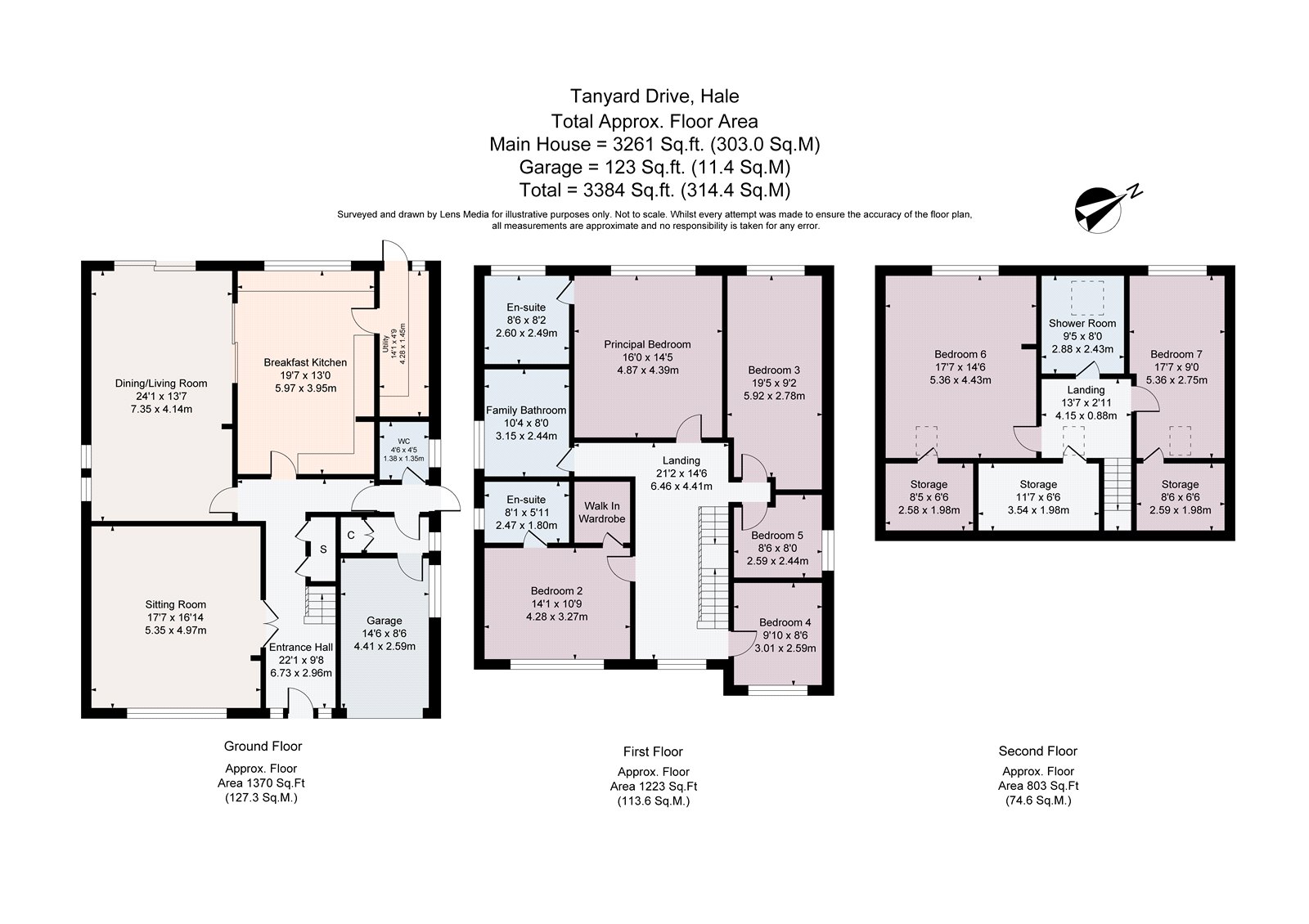 Spacious, versatile seven-bedroom detached home with beautiful private garden in prime Hale Barns locationDescriptionAn impressive and versatile 6/7-bedroom detached residence in a prime Hale Barns location, offering generous living space, a high-quality finish throughout, and a large private garden – ideal for modern family living.Situated on the sought-after Tanyard Drive, this substantial family home is deceptively spacious, offering over 3,250 sq ft of flexible accommodation across three floors, combining thoughtful design, high-specification finishes, and a peaceful, secluded 0.15 acre plot in the heart of Hale Barns. The property was fully renovated in 2011 - including rewiring, replumbing, and the addition of hard-wired Ethernet - and offers a blend of formal and open-plan living.The ground floor features a welcoming entrance hall, a stylish front-facing lounge with feature Dru gas fire, and a spacious rear family room with dining area and gas fire, with the living space flowing via two sets of triple bi-fold doors into the kitchen and out onto the garden. The well-appointed kitchen features high-end appliances (Franke, Neff, AEG), double oven and quartz work surfaces, plus scope to remove a stud wall for those wishing to create a fully open-plan layout - ideal for larger families or entertaining.Practicality is a key strength, with a generous utility room offering garden access, a side hallway with WC and boiler room, and internal access to the integral 3⁄4-size garage - perfect for storage, hobbies, or conversion potential. This layout also offers multiple points of entry, well-suited to busy family life or for those with pets. Off-road parking for two vehicles is provided, with ample free street parking available for guests.The first floor offers five versatile bedrooms, including the principal suite with fitted wardrobes, garden views and en suite shower room with twin vanity. Bedroom two has a walk-in wardrobe and en suite bathroom, while the four-piece family bathroom serves the remaining bedrooms on this floor. The second floor provides two further spacious double bedrooms with eaves storage and an additional shower room - perfect for teenagers, guests, or multi-generational living. With seven rooms in total, the accommodation lends itself easily to alternative uses such as a study, games room, prayer room, or additional reception spaces depending on requirements.The rear garden is a standout feature: Large, private and secluded, with a west-facing Indian sandstone patio that enjoys excellent evening sun - ideal for al fresco dining or family gatherings. A raised decked area at the rear, two storage sheds, vegetable beds, and a generous lawn provide plenty of space for relaxation, play, and outdoor entertaining. The garden can be accessed from the family room and utility, making it a seamless extension of the home.Additional features include underfloor heating in the bathrooms, a full alarm system, video doorbell, CCTV, Vailant boiler with pressurised hot water system, and hardwired connectivity throughout - offering comfort, security, and modern convenience.LocationSituated in the heart of Hale Barns, Tanyard Drive enjoys a quiet, leafy setting on one of the area’s most desirable residential roads. This prestigious location is perfect for families and professionals seeking excellent local amenities, outstanding schools, and easy access to key transport links - all within a tranquil and secure neighbourhood.The property is ideally positioned just 0.4 miles from Hale Barns Square, which offers a range of everyday conveniences including Costa Coffee, a post office, pharmacy, and independent retailers. The nearby towns of Hale (1.5 miles) and Altrincham (2.2 miles) provide further options for boutique shopping, dining, and leisure, including the popular Altrincham Market and a thriving café culture.Families are well served by top-performing schools in the area. St Ambrose College is just 0.8 miles away, while Altrincham Grammar Schools for Boys and Girls are both within 2.5 miles. A range of local primaries and private schools, including The Ryleys and Loreto Grammar, are also within easy reach.For commuters, the location is superb. Manchester Airport is just 3.5 miles away, ideal for both domestic and international travel. Altrincham Interchange provides regular Metrolink and rail services into Manchester city centre (approx. 25 minutes), while the M56 and M60 motorways are both easily accessible for links across the North West and beyond.Square Footage: 3,261 sq ftAdditional InfoCouncil Tax Band G