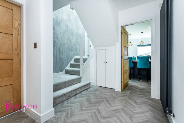** must see property ** Tucked away down a long country lane leading to a private road, this exceptional extended detached family home occupies an enviable position within the picturesque village of Ainsworth. Set within its own charming hamlet of neighbouring homes, all currently undergoing high-quality renovations. This property is surrounded by rolling farmland and open countryside, offering the perfect blend of peaceful rural living and contemporary family luxury. Welcome to Knowsley View. This outstanding residence has been completely transformed, now standing as a striking example of modern architecture, premium finishes, and thoughtfully curated design. Virtually unrecognisable from its original form, the property has been meticulously renovated to the very highest standard, creating beautifully proportioned, light-filled spaces where contemporary style meets timeless comfort. The home’s spacious layout has been carefully considered to support both family life and entertaining, with every detail reflecting superior craftsmanship and elegant design. From the breathtaking rural views to the tranquil surroundings, this is a true sanctuary for those seeking a harmonious lifestyle close to nature, yet with every modern convenience. The accommodation briefly comprises: An entrance porch leading into a generous, bright hallway, guest WC, a spacious lounge with feature dual-aspect log-burning fireplace, and an open-plan dining room with picture windows and patio sliding doors, and additional reception room. The contemporary fitted kitchen comes complete with integrated appliances and a separate utility room. To the first floor, a central landing with a striking ceiling feature provides access to four large bedrooms, two of which benefit from walk-in dressing rooms and three boasting bespoke en-suite shower rooms. A stunning, high-specification family bathroom completes the upper level. Externally, a spacious block-paved driveway to the front offers ample off-road parking for multiple vehicles. The property also enjoys extensive wrap-around gardens, featuring a beautifully laid Indian stone patio that seamlessly connects to the vast sliding doors of the kitchen-living-diner, the perfect setting for family gatherings, barbecues, and relaxing evenings, all framed by uninterrupted views across open farmland. Viewing is highly recommended and strictly by appointment only via our Ramsbottom office.Tenure: FreeholdLocal Authority/Council TaxBury Council: C Annual Amount:£2146.28 Approx.Flood Risk: Very LowBroadband availabilitySuperfast: Download: 54Mbps Upload: 10MbpsMobile CoverageEE - Limited, Vodafone - Likely, Three - Limited, O2 - LikelyFront PorchDouble anthracite composite double glazed front doors.Entrance HallwayCeiling spotlights that illuminate the space and herringbone-washed oak vinyl flooring that adds a touch of warmth. Quality oak four-panel doors line the interior, adorned with striking black ironmongery, while a stylish black wall-mounted column radiators add both function and flair.Guest WCStylish guest WC that beautifully marries practicality with design. Adorned with striking 'Forbidden Fruit' wallpaper in rich sage green and gold, this space exudes elegance. The sleek white gloss vanity unit and WC stand out against the dramatic black walls, while the flooring continues from the hallway, ensuring a cohesive look throughout.Open Plan LoungeThis contemporary open-plan space features a generous L-shaped layout, showcasing modern design elements through expansive floor-to-ceiling sliding doors that grace three elevations. These doors effortlessly connect the interior to the rear garden, blurring the lines between indoor and outdoor living and enhancing the stunning countryside views.This versatile area serves beautifully as both a sitting room and a dining space.As you transition into the living room, a change in flooring to plush carpet marks the arrival into this cosy retreat. Here, a dual-aspect log-burning fireplace, elegantly set within a tiled backdrop, serves as a striking centrepiece, radiating warmth and charm to both the family room and adjacent lounge.Office / Sitting RoomJust steps away, an additional reception room is thoughtfully designed as a sophisticated home office, providing a tranquil and private space for work or study. A striking black feature wall complements the overall aesthetic of the home, creating a seamless flow of style.Open Plan Dining KitchenA stunning embodiment of contemporary sophistication, complete with breath-taking countryside views.The kitchen cabinetry, elegantly arranged in a linear fashion along one side, boasts floor-to-ceiling grey matte units that exude modern charm. An inset fitted glass mirror splashback amplifies the sense of space, while high-end appliances, including a fully integrated fridge, freezer, dishwasher, two ovens, and a five-ring induction hob with a concealed extractor, cater to your culinary needs.At the heart of this culinary haven lies a show-stopping island unit, perfect for entertaining. This centrepiece comfortably seats six and is topped with a striking ‘Dekton-Laurent’ stone waterfall worktop in dark grey and copper tones, beautifully accentuated by a trio of pendant lights. The island extends to create a multifunctional space for culinary creations and casual meals alike.One end of the island features an inset stainless steel sink, crafting a sleek and cohesive w...Utility RoomWith matching contemporary units and plumbed for both washing machine and tumble dryer. With access to the side of the property.LandingBespoke glass balustrade staircase to the first floor, a large sky lantern above the stairwell enhances the sense of space, flooding the area with natural light.Bedroom OneThree Velux windows at the rear and two side windows, framing lush countryside views and creating an airy ambiance, all under a stunning vaulted ceiling.Dressing RoomThe fitted wardrobes in the dressing area, finished in slee