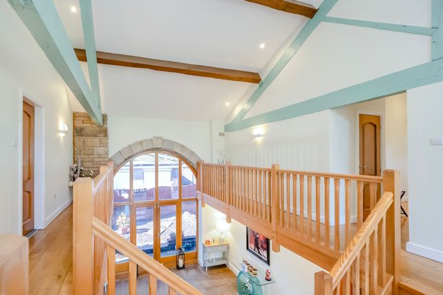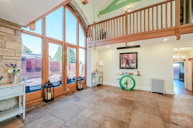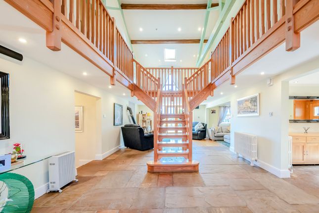 Welcome to ‘The Barn’, a beautiful conversion that has been masterfully crafted to the highest specifications, showcasing an abundance of original features that enhance its unique character. Inside, you will discover slate floors, exposed stone walls, and striking beams that add warmth and charm, all complemented by vaulted ceilings that create an airy atmosphere. This delightful fusion of spaciousness, privacy, and contemporary elegance is set against a backdrop of open fields, embodying the essence of rural charm. With effortless access to major transport links and a wealth of local amenities, this exceptional property is the perfect retreat for those seeking a character home with land, without compromising on convenience. The Barn invites you to experience a lifestyle of comfort in a truly remarkable family home.As you enter, you are greeted by a stunning 32-foot reception hall that sets the tone for the rest of the home. The galleried landing above adds an elegant touch, creating a sense of openness and light. This fabulous room is open to the main lounge area and is complete with a cosy wood-burning stove, a huge barn window and French doors that open out into the rear gardens. The room has also adapted by our clients to open through into a sitting area creating a wonderful open plan living space. The separate formal dining room provides an exquisite setting for family get togethers and a further lounge again with French doors to the gardens makes for great TV or children’s room.The contemporary kitchen is both functional and stylish, with an array of hi-gloss wall and base units with ample works space, a breakfast bar and quality integrated appliances. Complemented by a spacious utility room for added convenience. The ground floor is rounded off with two separate cloakroom/wc’s.On the first floor there are five generously proportioned double bedrooms, each exuding character and charm. Three of these exquisite rooms are enhanced by stylish en-suite facilities (one Jack & Jill), providing a private sanctuary for relaxation. The highlight is undoubtedly the grand gallery landing that overlooks the stunning interior, complemented by soaring vaulted ceilings and original beams that add a touch of historic elegance. The fabulous main bathroom is a true retreat, designed with pristine spa-style finishes that evoke a sense of luxury and ensure a rejuvenating experience. Bedroom two is particularly noteworthy, featuring bespoke range of quality fitted bedroom furniture that maximises storage space.Stepping outside, the grounds offer extensive gated parking, providing ample space for vehicles and room for horse boxes. The well-kept rear gardens provide great space for outdoor entertaining with a delightful decked area ideal for dining alfresco. A detached brick-built building adds further appeal, featuring a gym and the potential to serve as a separate dwelling for co-dependents, complete with a WC and utility, with a playroom and potential for a home office. There is also a separate attached double garage with power and lighting. The walled garden to the front includes a paved and gravelled area and is also very private. From the rear garden, you will find access to a half an acre paddock, fully enclosed and ideal for a pony, offering open views over the surrounding greenbelt farmland.The property rests in an extremely convenient location with excellent transport links. Blackrod is well-connected by road and rail, making it an ideal location for commuters looking to access nearby towns & cities, including Manchester, Bolton, Preston and Wigan. The local train station provides direct services, allowing for a seamless daily commute. Families are drawn to the area for the excellent educational options, with a range of schools catering to various age groups.Tenure: We are advised by our client that the property is FreeholdCouncil Tax Band: GEvery care has been taken with the preparation of these property details but they are for general guidance only and complete accuracy cannot be guaranteed. If there is any point, which is of particular importance professional verification should be sought. These property details do not constitute a contract or part of a contract. We are not qualified to verify tenure of property. Prospective purchasers should seek clarification from their solicitor or verify the tenure of this property for themselves by visiting . The mention of any appliances, fixtures or fittings does not imply they are in working order. Photographs are reproduced for general information and it cannot be inferred that any item shown is included in the sale. All dimensions are approximate.