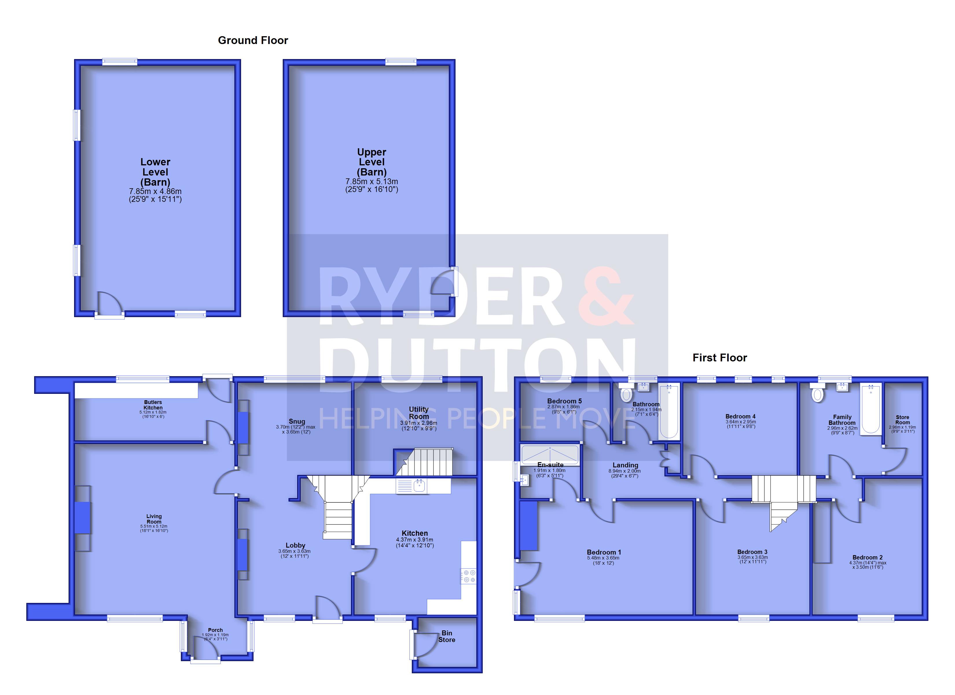Hey Meadow Farmhouse, is a characterful five-bedroom, three-bathroom period home set in a Castilian position above Edenfield, commanding sweeping panoramic views across the surrounding countryside. Standing within around one acre, the property includes three reception rooms and a traditional 844 square foot stone barn that presents an exciting opportunity for conversion, subject to planning consent.Hey Meadow Farmhouse and its adjoining barn enjoy a Castilian position above Edenfield, offering panoramic open views across the valley towards Peel Tower and beyond. Nestled within the shelter of the hillside, this is an exceedingly rare opportunity to acquire a truly unique property with Grade II Listed status (Entry Number: 1072821). Believed to date back to the late 1700s, the farmhouse has been sympathetically extended over the years to create the impressive residence it is today.Set in approximately one acre of land, the property features mature gardens, a private driveway, a seating terrace and an ornamental pond. Its rural setting provides a peaceful and picturesque backdrop-an ideal spot to relax and entertain with family and friends.The main house benefits from two separate entrances. The first, via an entrance porch, leads directly into the main living room. The second opens into an impressive entrance hallway, complete with a vintage cast-iron wood-burning stove, beamed ceiling, stone-flagged floor and old stone trough sink. An open staircase rises to the first floor.To the right, the generous kitchen/diner offers a range of wall and base units alongside a period cast-iron range cooker, with a utility room beyond. The hallway also gives access to a cosy snug featuring another vintage cast-iron wood-burning stove and a picture window framing open field views. From here, the main living room extends to an impressive 303 square feet-perfect for family gatherings and entertaining-with the added convenience of a butler’s kitchen adjoining.Upstairs, there are five well-proportioned bedrooms, all enjoying stunning valley views. The master bedroom is a particular highlight, featuring a modern en suite shower room with large, glazed shower enclosure and vanity wash basin. The remaining bedrooms are well served by two additional bathrooms, each fitted with a panelled bath, wash basin and WC-ideal for busy family life.Throughout the property, period features remain beautifully preserved, including mullioned windows, beamed ceilings, vintage cast-iron stoves, the range cooker, and the charming stone trough sink-each contributing to the home’s timeless character.The Barn Situated approximately 10 metres east of Hey Meadows Farmhouse, the two-storey barn extends to around 844 square feet. The structure is stepped in design, with first-floor access from the east and a ground-floor entrance to the former shippon on the south side. Its main axis runs north–south, with open volumes on both levels. Historically, the barn was connected to the farmhouse, as shown on the 1913 Ordnance Survey map, though the linking section was likely demolished post–World War I, leaving the barn detached.The current owners have explored the possibility of converting the barn into a separate dwelling, with indicative plans available within the property listing photographs. The councils pre application response was very positive and encouraged the project.Water & Drainage. Private water supply and Septic Tank, meaning no water rates.Directions The property is situated to the northeast of Edenfield town centre and immediately east of Edenfield Parish Church. Accessed via a long lane from Market Street, near Edenfield Primary School and the church junction. What3Words: Café.mild.spare