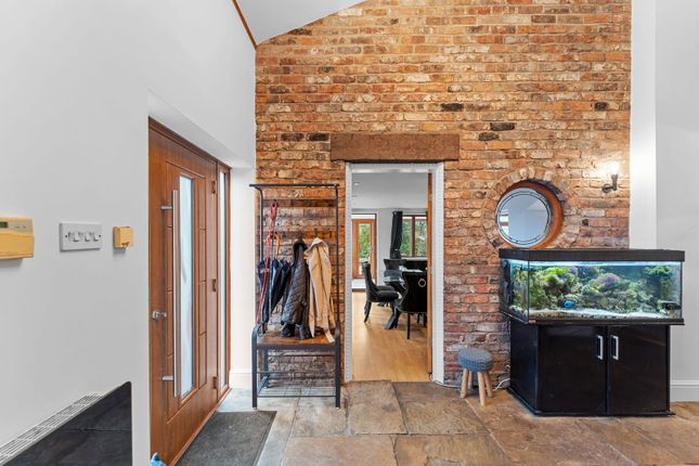 Tucked away off a private road in a beautiful and peaceful spot, this stunning five bedroom converted barn blends rustic charm with modern family living. Full of character and space, it’s a home that instantly feels special the kind you can imagine making memories in for years to come.Inside, you’re welcomed by a spacious layout that flows effortlessly from room to room. The main lounge leads up to a formal dining area and a bright garden room, creating a lovely open feel and the perfect place to relax or entertain. There’s also a second large living room, ideal as a family snug or games room, which opens directly into the impressive pool room. With a large Swimspa/pool and bi-fold doors leading out to a stylish, private garden framed by glass balustrades, perfect for entertaining all year round.The bright, modern kitchen is beautifully designed with sleek cream gloss units, a gas hob, double oven, wine cooler, and Quooker hot water tap. The breakfast bar overlooks the garden, while the separate utility room adds convenience and extra storage. A guest WC and a home office complete the ground floor, offering everything a busy family could need.Upstairs, there are five bedrooms, two generous doubles, two smaller rooms, one currently being used as a dressing room, and an impressive master suite with vaulted ceilings, exposed beams, a private rooftop terrace, and a luxurious en-suite with walk-in shower and ‘his & hers’ sinks. The family bathroom feels like your own spa retreat, with a jet bath, separate shower, and stylish finishes.Outside, the property continues to impress. A large lawned garden with mature hedges provides a peaceful and private space for children to play, while the gravel driveway offers ample parking. Around the side, a gated patio area wraps around the home with raised planters, a storage shed, and two inviting seating areas one from the pool room and another decked BBQ area accessed from the kitchen, perfect for summer evenings.Set in a tranquil location yet close to Pennington Hall Park, local amenities and excellent transport links, this is a truly special family home that offers the best of both worlds, space, style, and serenity. Its just ready and waiting for the next family to make it their own.Viewing is highly recommended.