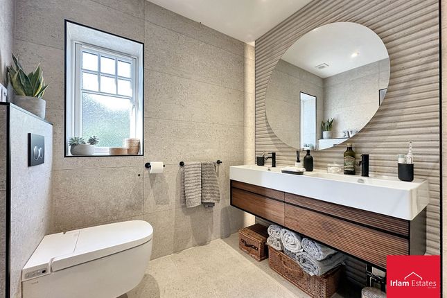 Nestled in a prime location within the revered catchment area of Broadoak Primary School, this exquisite detached home embodies sophistication and elegance. With a convenient proximity to the vibrant Worsley and Monton Village, this property offers the perfect blend of tranquillity and accessibility for discerning buyers.From the moment you step into the grand entrance hall adorned with bespoke Crittall doors, it is evident that this residence is designed to impress. Leading off the hall the inviting lounge features a cosy log burner and French doors that offer a seamless flow to the garden area, creating a harmonious indoor-outdoor living experience.The focal point of this home is the spectacular kitchen/reception/dining area, where luxury meets functionality. The kitchen boasts top-of-the-line integrated appliances including an oven, induction hob, fridge, freezer, dishwasher, and a Quooker tap, all complemented by elegant Quartz worktops. Natural light floods the space through a roof lantern and large patio doors, creating a bright and airy ambience that is perfect for entertaining. The dining room effortlessly loop back to the entrance hall through Crittall doors, enhancing the sense of fluidity and style throughout the home.Ascending to the first floor the primary suite features an ensuite bathroom and a spacious walk-in dressing room that could easily be repurposed as a fourth bedroom, catering to the evolving needs of the homeowners. The second bedroom boasts an ensuite bathroom, fitted robes, and a Juliet balcony overlooking the expansive garden, providing a serene retreat. The third double bedroom is also a great size with bay window. Completing this floor is the modern bathroom featuring contemporary fixtures and a separate shower cubicle, offering a perfect haven for relaxation and rejuvenation.Outside, the property boasts off-road parking for up to 3-4 cars, enclosed gated courtyards allowing for more secure parking, Annex building incorporating a single garage, living area upstairs with w.c/shower and potential gym downstairs.In conclusion, this meticulously designed home exudes sophistication and offers a luxurious lifestyle for those seeking an exceptional residence in an enviable location. Don't miss the opportunity to make this exquisite property your own..EPC Rating: CEntrance Hall (4.90m x 3.43m)Lounge (9.39m x 5.08m)Kitchen (5.03m x 4.18m)Reception Room (7.68m x 4.14m)Dining Room (3.38m x 3.37m)Utility Room (2.51m x 2.22m)W.c. (1.76m x 1.72m)Bedroom 1 (4.01m x 3.76m)Dressing Room/Potential 4th Room (3.61m x 3.58m)Ensuite (2.62m x 2.21m)Bedroom 2 (4.78m x 4.78m)Ensuite (2.60m x 1.58m)Bedroom 3 (4.05m x 3.89m)Bathroom (2.61m x 2.13m)Garage Room (5.40m x 2.62m)Garage Loft Room (6.45m x 4.04m)Ensuite W.c (3.44m x 1.90m)