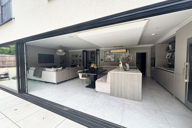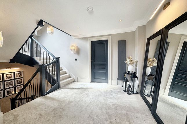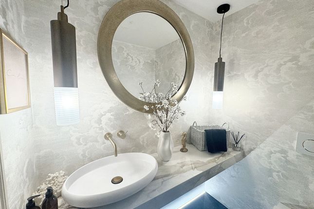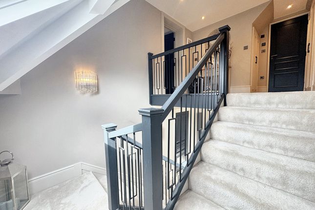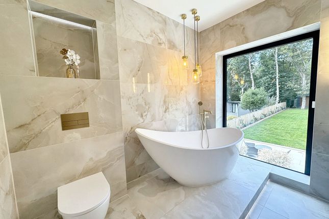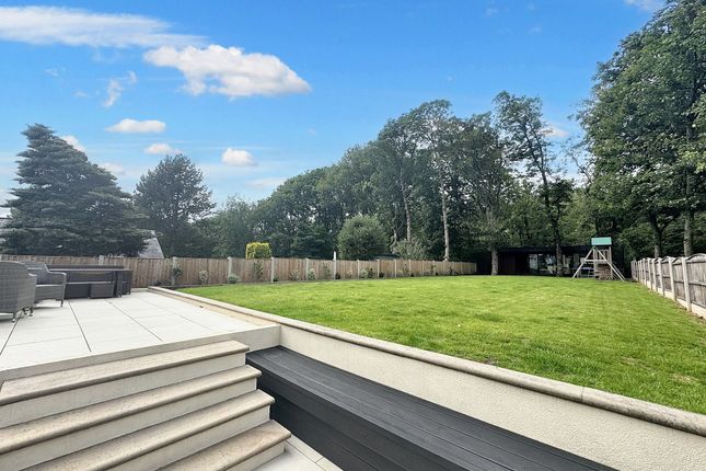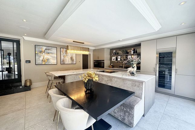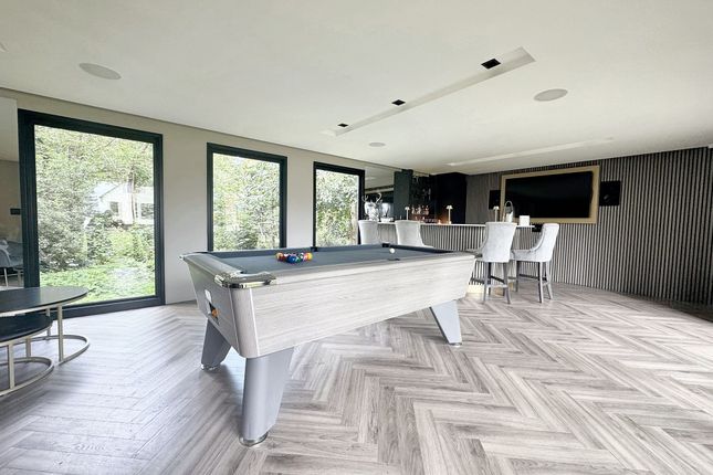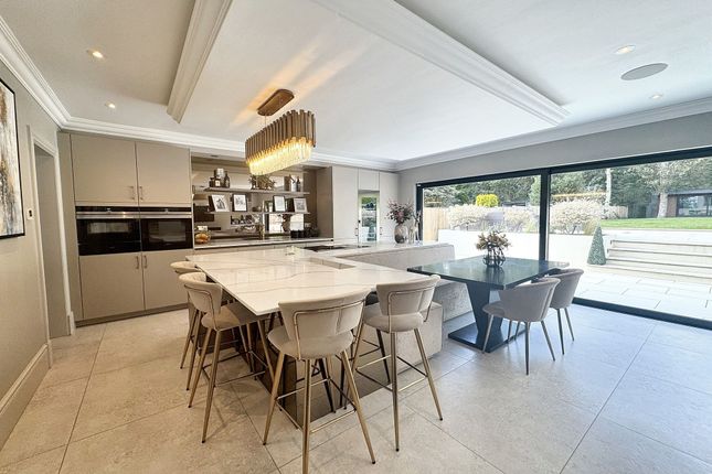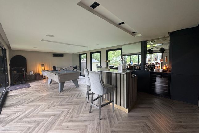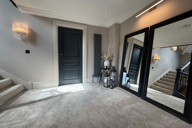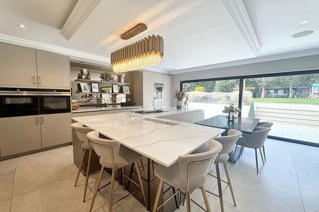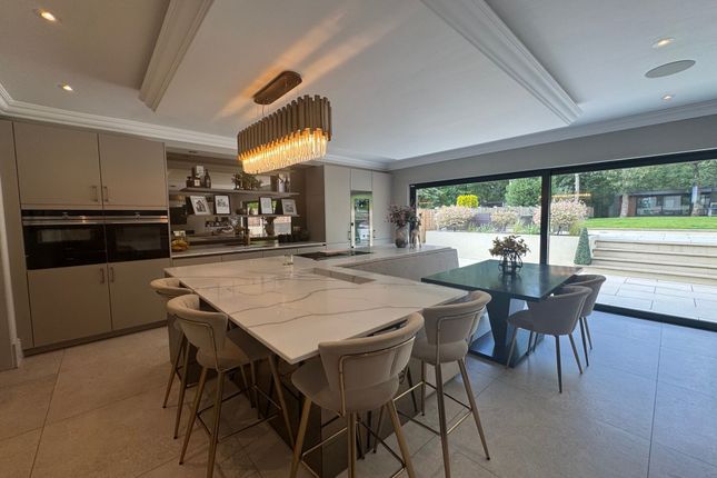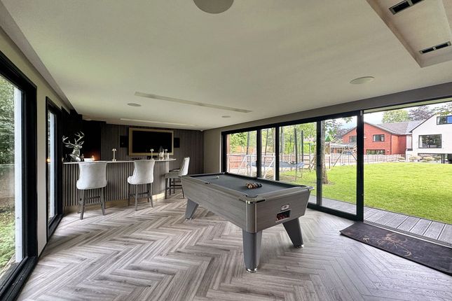 Tenure: LeaseholdBriscombe are delighted to bring to the market this luxurious four-bedroom family home designed and competed to a very high standard. The open plan kitchen/dining/family area is perfect for entertaining family and guests, while the property stretches over three floors, offering contemporary and modern living spaces throughout.Step outside to find a large private rear garden which has been thoughtfully landscaped, featuring a meticulously maintained lawn, a paved patio with a custom-built firepit, offering the perfect spot for alfresco dining and outdoor relaxation. A separate modern garden room at the rear of the deceptive space, currently used as a bar and pool room, adding a touch of luxury to the outdoor space, making it an ideal setting for hosting gatherings.The property also boasts a Control 4 system encompassing smart lighting, surround sound, and home automation throughout. A secure gated driveway greets you upon arrival, providing ample parking for multiple vehicles.Situated in a highly desirable location with views over the rhs Gardens, this home is also conveniently located near various excellent local schools and major transport links, making it an enticing proposition for families and commuters alike.EPC Rating: GLocationSituated in a much sought after location, just a 5 minute walk away from the newly opened rhs Gardens. Other local amenities include: Shops, restaurants, cafes and a variety of good local schools. The regions local motorway links are close by, offering easy access to Manchester City Centre, The Trafford Centre, Manchester Airport and surrounding areas.Entrance Hallway (6.3m x 5.4m)Grand entrance hallway with stairs leading to the first floor living accommodation.Kitchen/Living Room/ Dining Room (9.5m x 5.6m)Siematic designer kitchen with Siemens studio line appliances and Caple wine cooler. Floor to ceiling 9m, 3 panel sliding doors for glorious uninterrupted views of the beautifully landscaped terrace, fire pit and lawns. The kitchen is fitted with a range of modern, matching wall and base units with a hot tap and integrated appliances including: Oven, microwave, warming tray, wine cooler, hob, extractor and fridge freezer. A spacious island/dining area sits in the middle of the room with a bespoke seating area. The living area offers a modern design with wall mounted TV and contemporary fireplace.Study (5.8m x 4.8m)A spacious study with bay window to the front elevation.Snug Lounge (4.3m x 3.1m)Utilised as a second sitting room or could be used as a play room. Window to the front elevation.Utility Room (3.3m x 1.9m)A utility room with storage cupboards, second fridge and Belfast sink. An external door leading to the side elevation.WCA downstairs WC with low level WC and hand wash basinFirst Floor LandingFirst floor landing with doors leading into the bedrooms and bathroomBedroom One (6.4m x 5.6m)Master bedroom with window to the rear elevation.Dressing Room (3.05m x 2.70m)Custom built dressing room with illuminated presentation shelving.En-SuiteLuxurious floor to ceiling tiled bathroom suite comprising of walk in shower, low level W.C, wash basin and freestanding bath tub with private views of the rear garden.Bedroom Two (5.6m x 4.7m)Double bedroom with window to the rear elevation.Bedroom Three (4.7m x 3.6m)Third bedroom with bay window to the front elevationFamily BathroomModern family bathroom, fitted with an oval, free standing bath, low level WC, separate shower and vanity unit hand wash basin. Window to the side elevation.Second Floor LandingSecond floor landing with ample storage and doors lead to the second bedroom and a second bathroom.Bedroom Four (4.4m x 3.1m)Fourth bedroom with window to the rear elevation.Shower RoomSecond floor shower room with marble tiles, fitted with a walk in shower, low level WC and vanity unit hand wash basin. Velux window.Garden RoomPool room & bar with 7.2 Dolby Atmos surround sound, air conditioning and built in juice bar.GardenA beautifully landscaped garden sits to the rear of the property, complete with a well maintained lawn, custom built firepit and paved patio covered by a pergola, ideal for alfresco dining and outdoor entertaining.Parking - Secure GatedA larger than average driveway sits behind a secure electric gate, offering plenty of off road parking for multiple vehicles